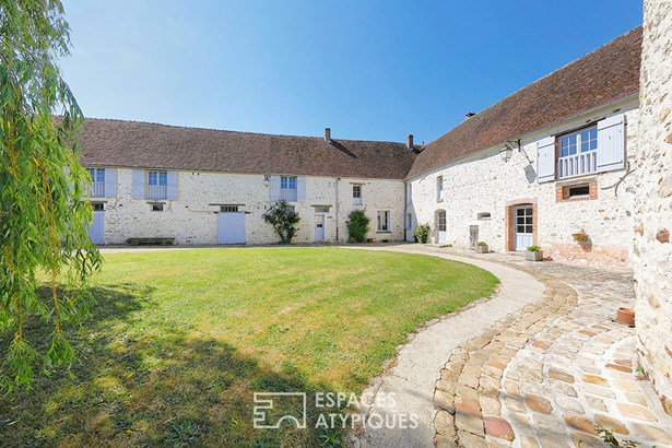 EXCLUSIVE About an hour from Paris and 20 minutes from Provins, nestled in a preserved environment, within a superb landscaped park of more than 9000m2, this character building bears witness to a prestigious past. Having belonged to a castle which no longer exists, it retains many original features: stones dating from 1614 and 1739, dovecote, vaulted cellars, bread ovens, etc. The complex consists of several buildings for a total of 1084m2 of usable space, including a main house of 421m2 of living space, a dovecote, a barn, an old stable, a summer kitchen and other outbuildings. The main house offers generous volumes on two levels. On the ground floor, several warm living spaces are arranged around the very large old-fashioned kitchen, equipped with bread oven niches, an authentic fitted stove, a stone sink and a wood-burning stove and dressed in terracotta tiles, and the fully equipped pantry. A large living room of over 90m2, a small lounge-library, a bedroom and its shower room, a jam room, a games room that can be converted into a bedroom, an office with a raised bedroom, and a summer bedroom on the ground floor of the dovecote complete this level. Upstairs, terracotta tiles, half-timbering and exposed beams set the tone. A corridor leads to three bedrooms, including a suite with bathroom and dressing room, a spa bathroom and two large convertible attics of 92 and 68m2. A cinema area with 17 armchairs and a large screen adds a touch of originality to this interior with its strong charm. A barn of approximately 100m2 houses a workshop, a kitchen, and storage spaces. A former stable of 140m2 now serves as a garage and reception room. A second independent garage of 43m2, old sties, a working bread oven and a semi-inground wooden swimming pool with its pool house complete this rare property with great potential. The upper floor of the dovecote has retained some vestiges of its bowling alleys and its original rotating wooden ladder. Outside, the landscaped park shelters a pond and its paved terrace overlooking it, an old well and a remarkable diversity of plants: poplars, beeches, linden, maples, mulberry trees, weeping willow, and numerous fruit trees (apple, pear, fig, apricot, plum, nectarine, cherry, walnut) and berry bushes (raspberries, redcurrants). It is built around the farm and around an old 12th century chapel which gives the place an atmosphere full of poetry and serenity. Local shops, amenities, schools and train stations are a few kilometers away (7 minutes by car), facilitating daily life while preserving calm and privacy. School transport 100m from the property and gathering of local producers in the commune. A property full of charm, both unique, full of history, and open to multiple life projects. ENERGY CLASS: C / CLIMATE CLASS: B Amount of annual energy expenditure for standard use established from energy prices indexed on January 1, 2021 (subscription included) between EUR4,430 and EUR6,030 per year. Contact: Elvire de la MARTINIERE - 06 03 05 05 96 RSAC: 800 930 232 MEAUX