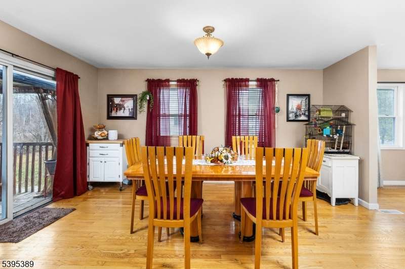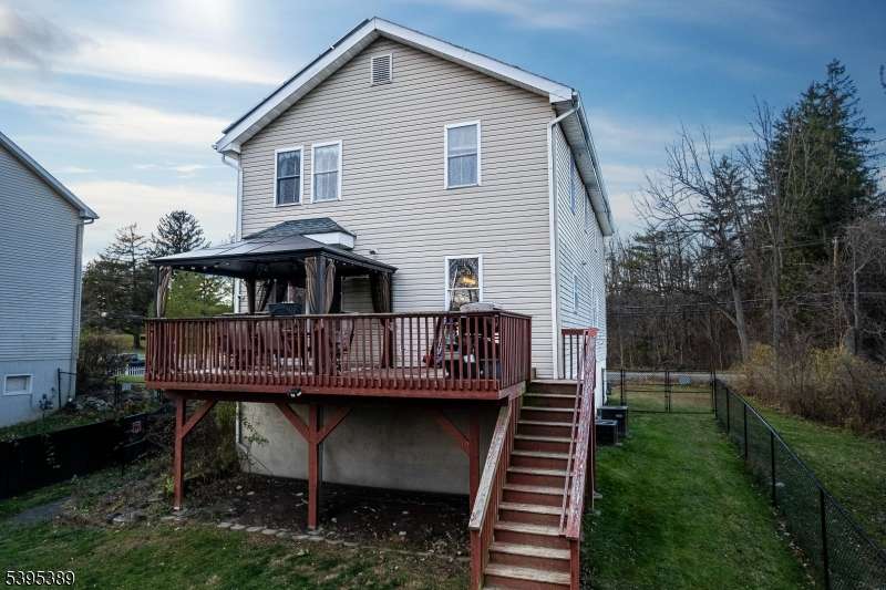 Welcome to this beautifully crafted 4-bedroom, 3-bath custom home offering nearly 2,800 sq. ft. of comfortable living space. From the moment you enter the impressive two-story foyer, you'll appreciate the open layout, tall ceilings, and elegant hardwood floors throughout the home.The spacious living room features a warm wood-burning fireplace (Custom built-in BIS Panorama fireplace designed to warm up to approx. 2,500 sq ft with a tall panoramic cast-iron door for sweeping views of the fire), creating the perfect spot to relax or entertain. The designer kitchen will impress any cook with its sleek quartz countertops, center island, 5-burner gas stove, stainless steel appliances, and separate dining area overlooking the backyard.Upstairs, the primary suite offers a walk-in closet with two additional double closets and a spa-like bath complete with a jetted soaking tub and modern finishes. Three additional generous bedrooms and full baths complete the second level.Enjoy central air, public water and sewer, natural gas heating, and a convenient one-car attached garage.Step outside to your private oasis with a large, flat, fenced-in backyard designed for year-round enjoyment. The expansive entertainment deck is the highlight of the property, featuring a tent-style cabana, fire pit, and space for outdoor dining and lounging under the stars.Live where comfort meets scenery as this property is surrounded by rolling mountain views for year-round beauty