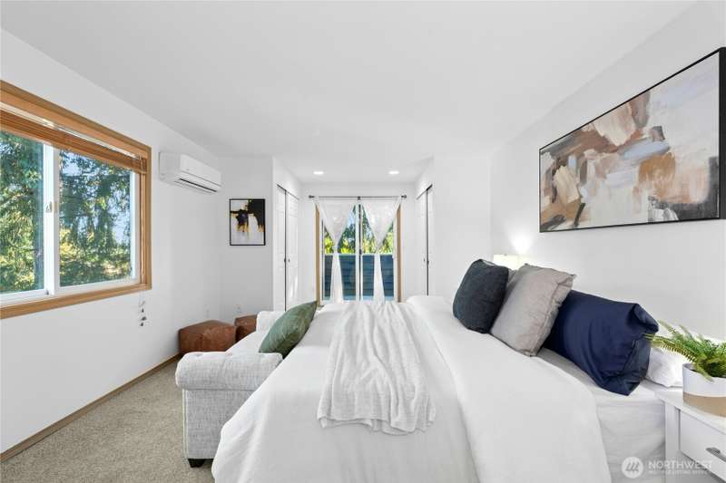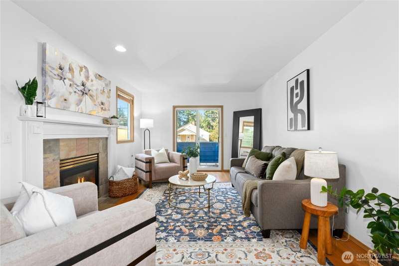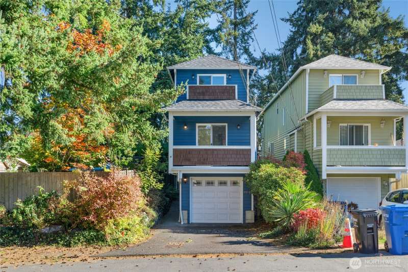Stylish & Updated Haller Lake home tucked in a quiet setting near shopping & freeways. Light-filled kitchen w/ Quartzite counters, tile backsplash & gas range opens to a sunny living room with gas fireplace & deck. Separate media room overlooking the private yard + dining area and half bath. Upstairs features a spacious primary suite with view deck and second bedroom. Lower level includes full bath, garage, and two flex rooms—ideal for guests, office, gym or nice rental potential. Over $50K in quality improvements including fresh interior/exterior paint, new carpet, Newer mini splits installed, new piping throughout home, newer Refrigerator & Stove & so much more, making this home move-in ready! EXCELLENT LOCATION & Proximity to Light Rail!