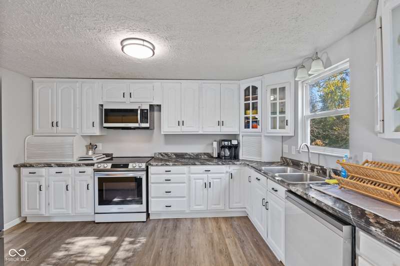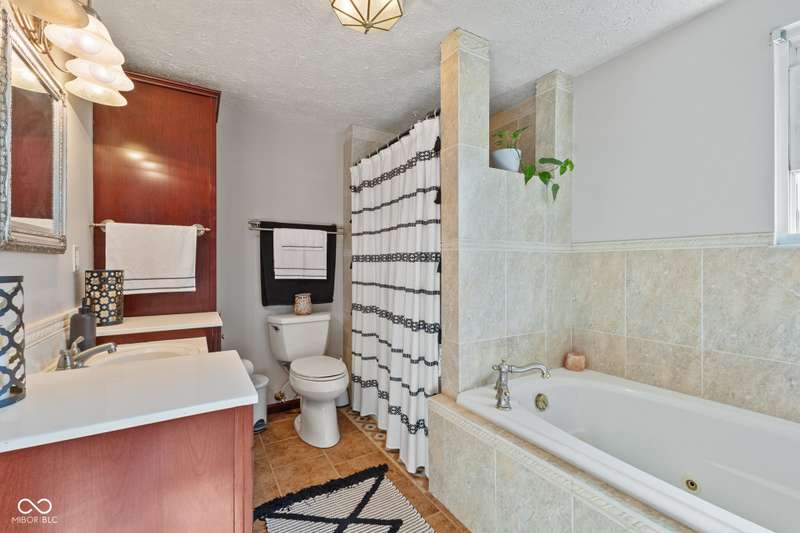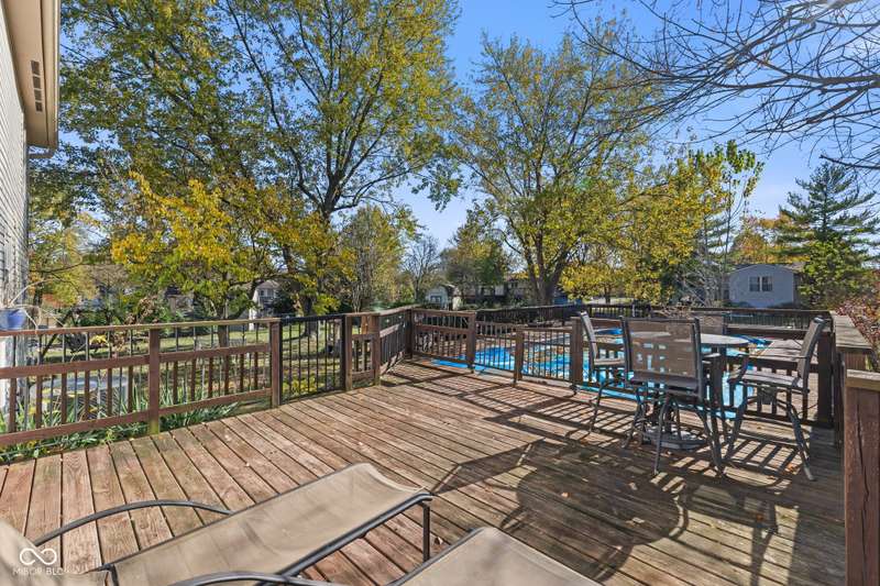 Welcome to your dream home inside the charming neighborhood of Shady Creek located in Center Grove! This beautifully updated home boasts a newly installed roof, fresh paint, updated bathrooms, and new carpet just to name a few. The modern kitchen with brand new smart appliances has been elegantly renovated and is perfect for that family chef. The family room features a cozy gas log fireplace, creating the perfect ambiance for chilly evenings. Retreat to the primary bedroom, a true haven, with a walk-in closet and an en-suite that includes a luxurious jetted tub, ideal for unwinding after a long day. The updated, finished basement provides additional living space for entertaining or relaxing, and is plumbed to add an additional bath. Step outside to your own private oasis - a heated above ground pool with a newer heater and pump, and deck wrapping around it making it perfect for soaking up the sun or hosting summer parties. The fenced-in yard is surrounded by mature trees and fresh landscaping, offering both privacy and serenity. Located within a stone's throw of Northwest Park and with easy access to nearby schools, shopping at Greenwood Park Mall, and essentials like Kroger, everything you need is just around the corner. Embrace a lifestyle that combines peaceful residential living with the perks of city conveniences in this charming Greenwood home. A home warranty is included just to give you that extra peace of mind. Don't miss out on this one-of-a-kind property - schedule your showing today and make this house your forever home!