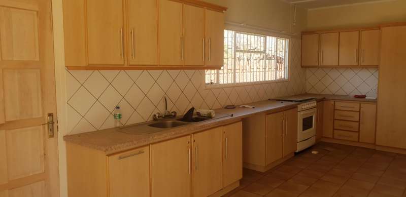 A lovely 3 bedroom asbestos house with a beautiful spacious kitchen, The living area has a fireplace for the cold kalahari winter nights. This house is cozy and well kept on 1200 square meters. Outside is a garage and laundry room. Situated in a good part of the town near the shops.