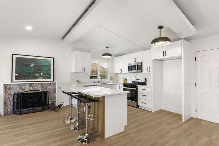 A beautiful home boasting lovely curbside appeal, this well-appointed 3- bedroom, 2 bath fully remodeled gem is a stand-out! Quality materials used throughout. Structural bonuses include a scalloped wall offering front yard privacy, tray ceilings and a Spanish tile fireplace. The all-new kitchen features custom quartz countertops, soft-close cabinetry, top-rated appliances, and quality hardware. All new laminate flooring, new HVAC system, gorgeous contemporary fixtures and recessed lighting throughout. Brand new bathrooms boast floor-to-ceiling tile walls and flooring. The spacious backyard includes a new studio, perfect as an office space or playroom. The two-car garage is completely renovated. Prairie Elementary, Samuel Jackman Middle School and Valley High School all within walking distance. Delta Shores Outdoor Mall close by! This superior renovation is a must see.