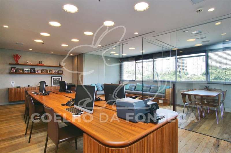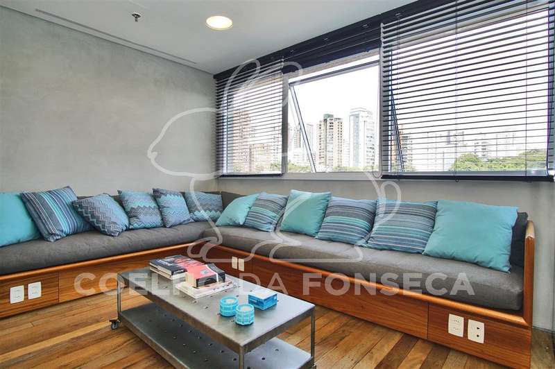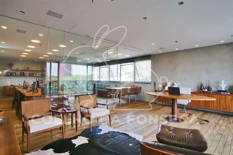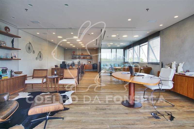 Conjunto comercial reformado por arquiteta com acabamentos de alto padrão e de muito bom gosto! Originalmente com 4 salas, hoje está com 3 - duas formam uma sala maior com terraço. Banheiro. 2 vagas. Mobiliado. Não perca esta oportunidade!