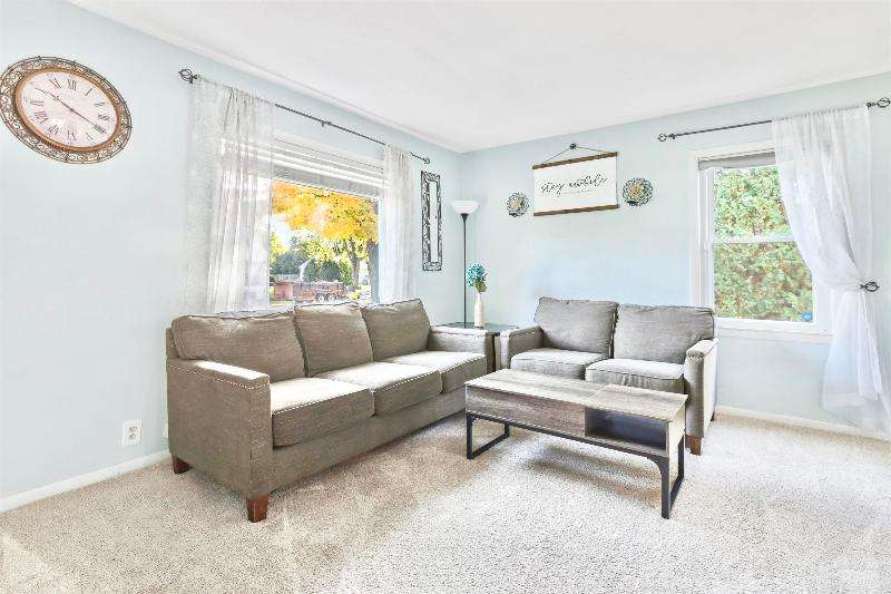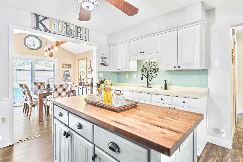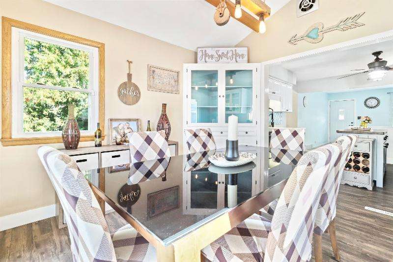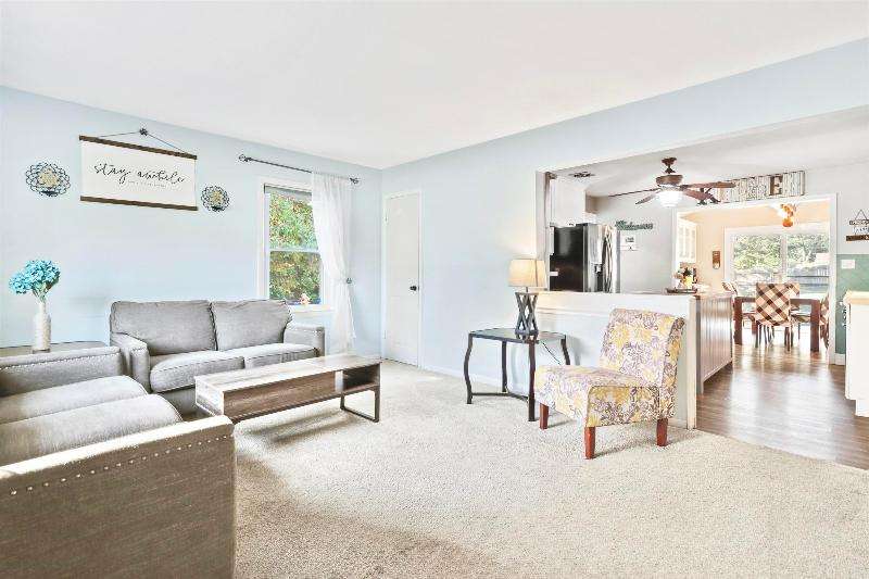 Nestled on a quiet street in New Berlin's sizzling real estate scene, this charming 3 bed, 2 bath ranch home pulses with modern allure. Vibrant, light-soaked floor plan boasts modern farmhouse-inspired kitchen, high end appliances and butcher-block island. Wood beamed cathedral ceilings crown the dining room; sliding doors unveil a sprawling backyard brimming with potential. The expansive lower-level rec room, anchored by a chic white brick fireplace, beckons for gatherings. Detached garage adds function, while the home's clean lines and high-energy vibe captivate. This home radiates warmth and possibility--an irresistible canvas for your dreams in a market that's red-hot and ready. Modestly priced for expeditious sale.