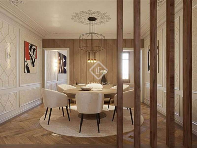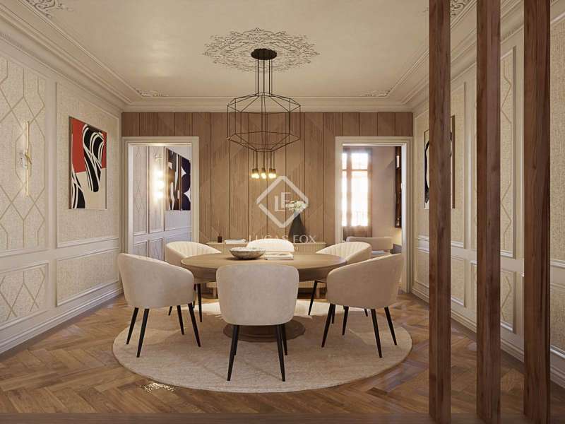 Located on the prestigious Enric Granados, one of Eixample Left’s most desirable pedestrian streets, this exceptional apartment is set within a 1910 period building that retains its original Modernist architectural features, a rare gem for lovers of historic charm. Positioned on a high floor, the property benefits from abundant natural light and an exceptionally bright interior throughout the day, thanks to its large windows and optimal orientation. Spanning a total built surface of 137.20 m², the apartment offers a generous and functional layout. Highlights include a bright, open-concept kitchen and dining area (32.53 m²) that flows effortlessly into an elegant living room (28.14 m²), opening onto a charming private balcony (2.60 m²). The kitchen will be fully equipped and designed with an island-style layout, perfect for both daily living and entertaining. The home comprises three large double bedrooms, each offering ample space for wardrobes, desks, or seating areas. The main suite (12.30 m²) features direct access to a spacious en-suite bathroom (6.08 m²), while the other two bedrooms (11.88 m² and 8.88 m²) are complemented by a second full bathroom (4.76 m²) and additional closet/storage space (4.57 m²). Throughout the apartment, we find exquisite finishes and period details, including high-end parquet flooring and stunning Catalan vaulted ceilings, preserving the elegance and soul of the early 20th-century Modernist era. A standout feature is the 8 m² private terrace, ideal for outdoor dining or quiet relaxation in the heart of the city. This property is offered with a full renovation project, allowing the buyer to complete the home to their personal taste and high specifications. Please note that the cost of renovation is not included in the sale price. Please contact us for further information.