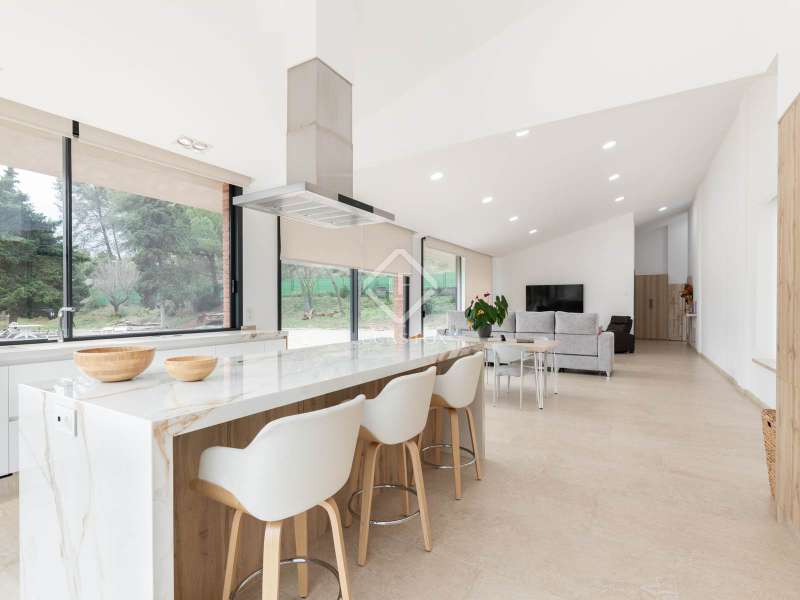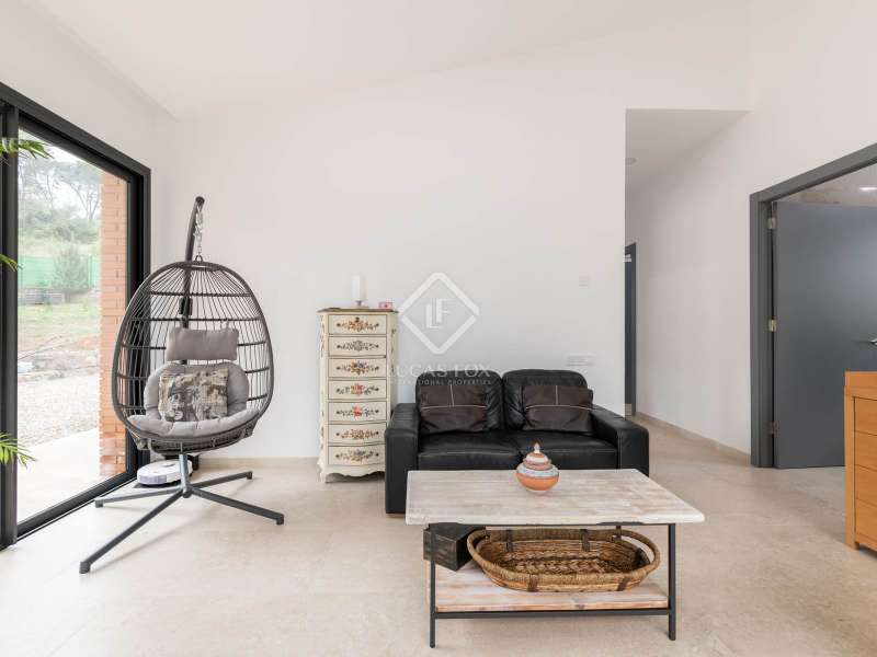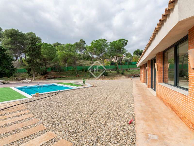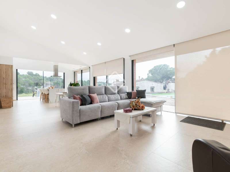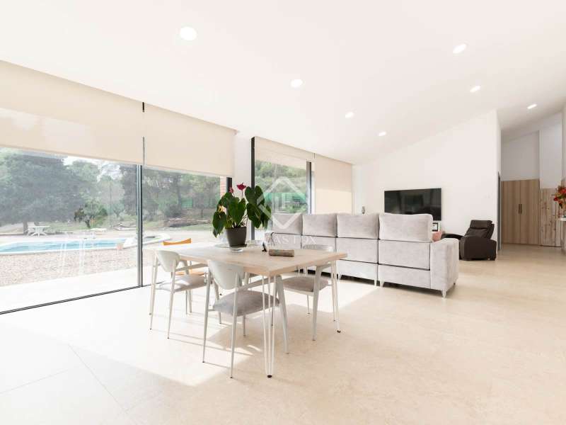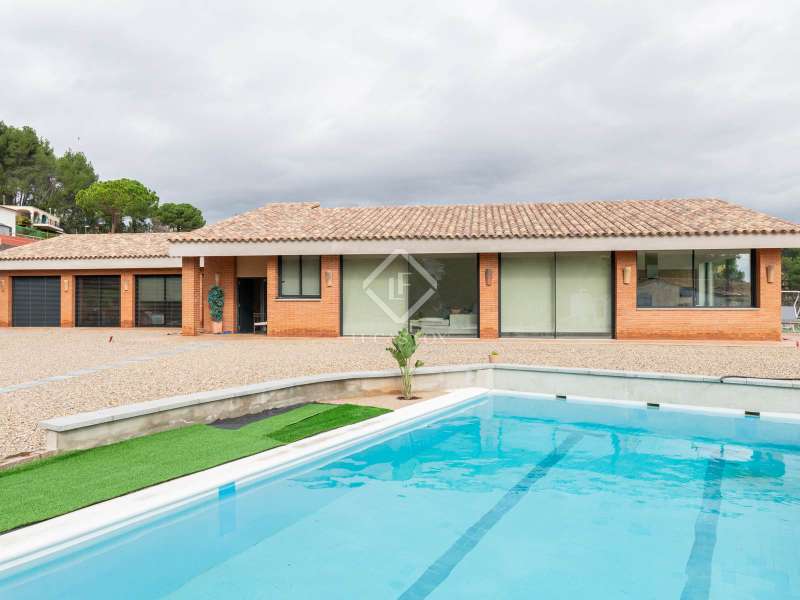 Lucas Fox presents this impressive house in Sant Muç, Rubí, in a natural setting, but close to urban amenities . It has a surface area of 390 m² built on a single floor on a plot of 6,400 m² and offers large indoor and outdoor spaces. This beautiful house consists of a day area, which has a large living-dining room with large windows with wonderful views to the exterior and a fully equipped, open-plan designer kitchen that integrates with the living-dining room. A perfect space for everyday life and for entertaining. All these rooms have access to the exterior. It is completed with a full bathroom . In the night area, we have four double bedrooms and the large main bedroom with a large dressing room and a full bathroom , ideal for a family that needs additional rooms for guests or a private workspace. In addition to its layout and privileged surroundings, this house stands out for its state-of-the-art equipment with great thoughtful amenities. The property has a home automation system that allows you to control various aspects of the home automatically, such as lighting, blinds, security and air conditioning. The aerothermics system optimizes energy efficiency, providing sustainable heating and cooling. Exterior, the property has two swimming pools and a chill-out area. The large plot also includes a parking space and a large additional space that offers the possibility of building a tennis or paddle tennis court. Furthermore, Sant Muç is a quiet area in direct contact with nature, surrounded by green areas, but at the same time it has easy access to public transport, such as bus stops and the Rubí Generalitat Railway Station (FGC), which allows a quick connection with Barcelona and other metropolitan areas. Don't hesitate to visit it.
