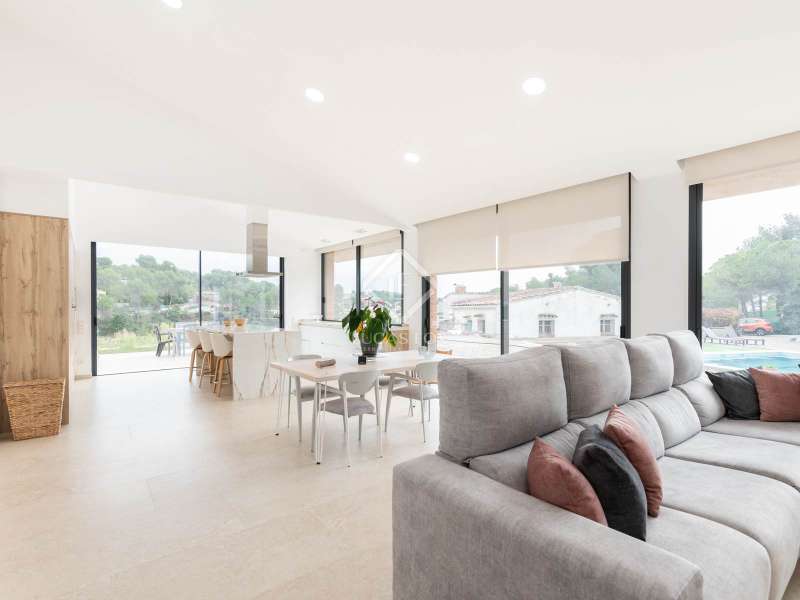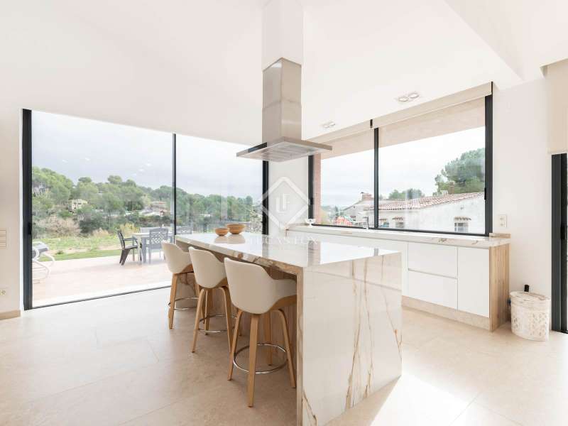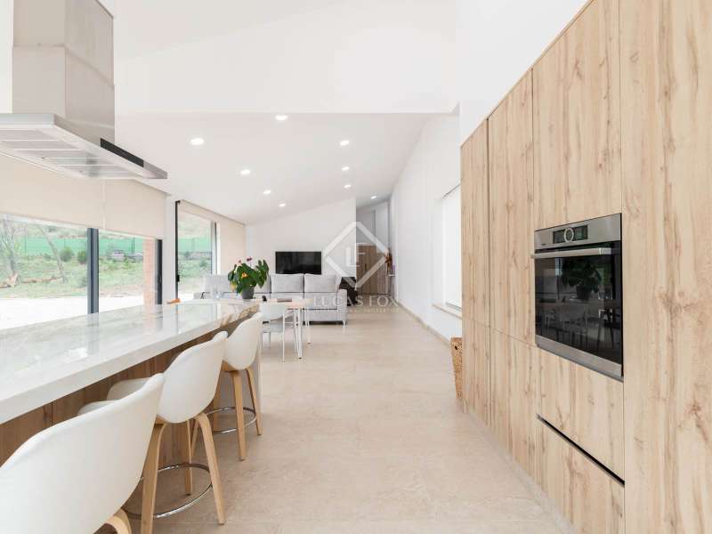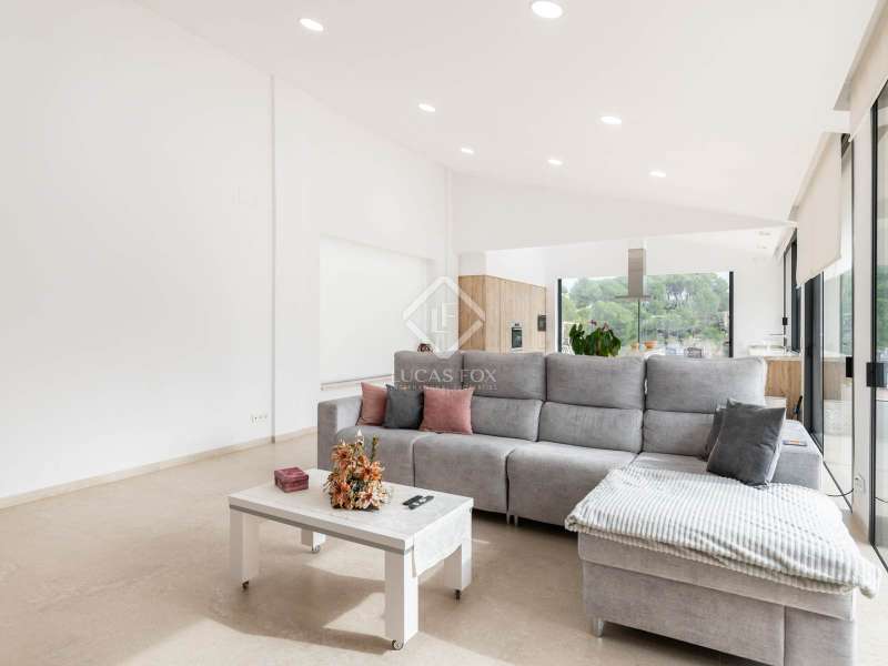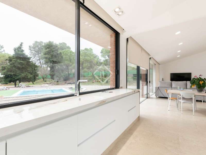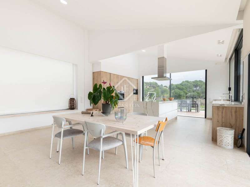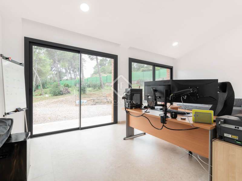 Lucas Fox presents this impressive house in Sant Muç, Rubí, in a natural setting, but close to urban amenities . It has a surface area of 390 m² built on a single floor on a plot of 6,400 m² and offers large indoor and outdoor spaces. This beautiful house consists of a day area, which has a large living-dining room with large windows with wonderful views to the exterior and a fully equipped, open-plan designer kitchen that integrates with the living-dining room. A perfect space for everyday life and for entertaining. All these rooms have access to the exterior. It is completed with a full bathroom . In the night area, we have four double bedrooms and the large main bedroom with a large dressing room and a full bathroom , ideal for a family that needs additional rooms for guests or a private workspace. In addition to its layout and privileged surroundings, this house stands out for its state-of-the-art equipment with great thoughtful amenities. The property has a home automation system that allows you to control various aspects of the home automatically, such as lighting, blinds, security and air conditioning. The aerothermics system optimizes energy efficiency, providing sustainable heating and cooling. Exterior, the property has two swimming pools and a chill-out area. The large plot also includes a parking space and a large additional space that offers the possibility of building a tennis or paddle tennis court. Furthermore, Sant Muç is a quiet area in direct contact with nature, surrounded by green areas, but at the same time it has easy access to public transport, such as bus stops and the Rubí Generalitat Railway Station (FGC), which allows a quick connection with Barcelona and other metropolitan areas. Don't hesitate to visit it.