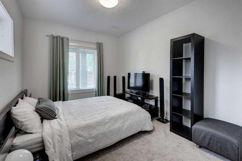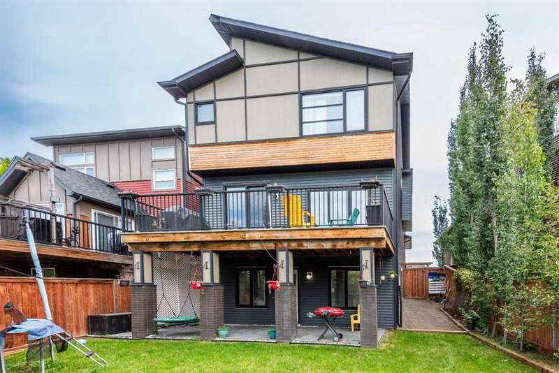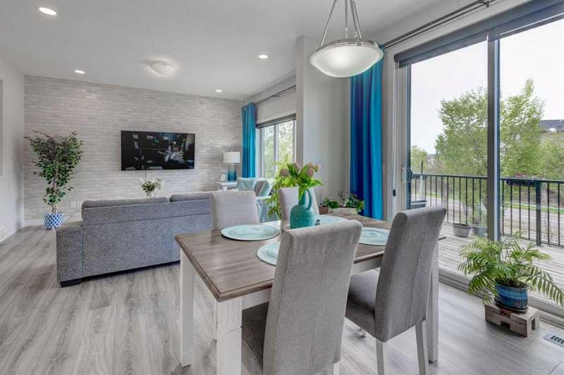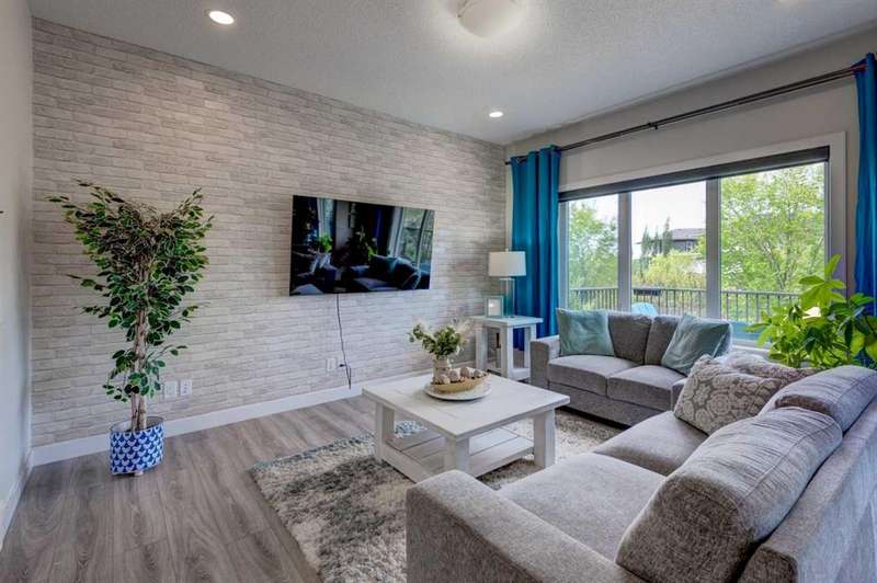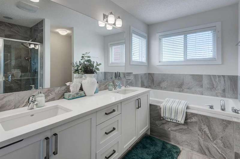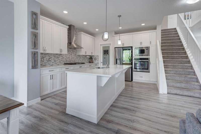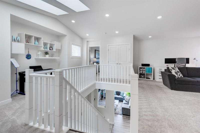 Welcome to this stunning home, nestled on a quiet street in the highly sought-after community of Walden. Beautifully maintained and impeccably kept, it offers almost 2,200 square feet of above-grade living space, complemented by an additional 821 square feet in the fully developed walkout basement. Your introduction to this residence begins with an expansive tiled front foyer that sets the tone for the thoughtful design throughout. Natural light floods every corner thanks to an abundance of large windows, creating a bright and airy atmosphere. The dream kitchen is a true showpiece, featuring crisp white cabinetry with crown moldings, quartz countertops, a large island, upgraded stainless steel appliances including a built-in oven and microwave, gas range and Insta-view Craft fridge. A walk-through pantry and mudroom add convenience, while the family-sized dining nook with patio doors opens to a full-width deck, perfect for entertaining. The main floor family room boasts a full wall of windows that enhance the open-concept design, making this home ideal for gatherings. Upstairs, the appeal continues with a massive central bonus room featuring vaulted ceilings, pot lighting, a built-in study nook, and two skylights that keep the space bright. The primary suite easily accommodates a king-sized bedroom set and offers a spa-inspired ensuite with quartz countertops, dual sinks, and a double-wide tile-skirted soaker tub. The walk-in closet includes built-ins for effortless organization. Bedrooms 2 and 3 are both oversized and feature walk-in closets, while the laundry room with tile floors and storage completes the upper level. The fully developed walkout basement adds even more space with 9’ ceilings, luxury vinyl plank flooring, a large recreation room, a spacious fourth bedroom, and a full bathroom. Outside, enjoy the west-facing backyard with a full-width covered patio, the perfect spot for relaxation and outdoor living. This turnkey property offers elegance, function, and comfort in one of Calgary’s most desirable communities—a true must-see!