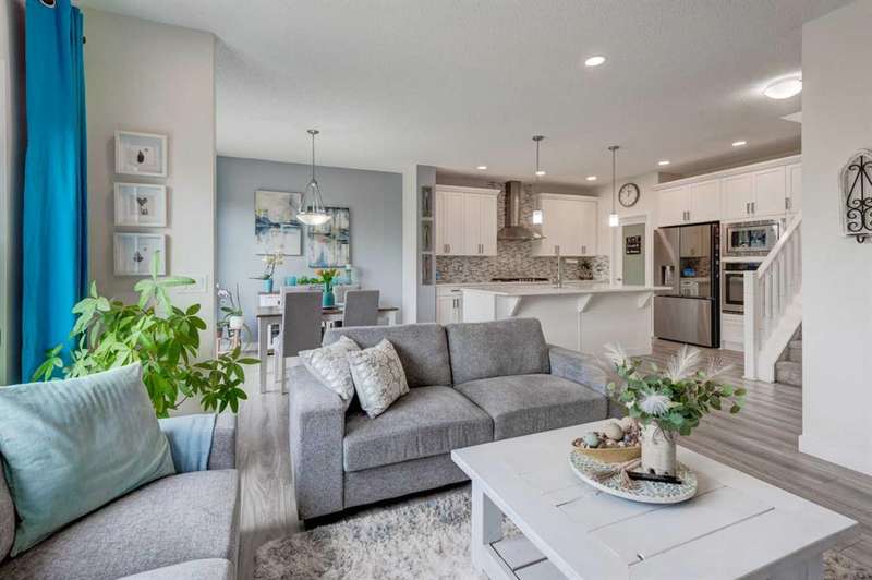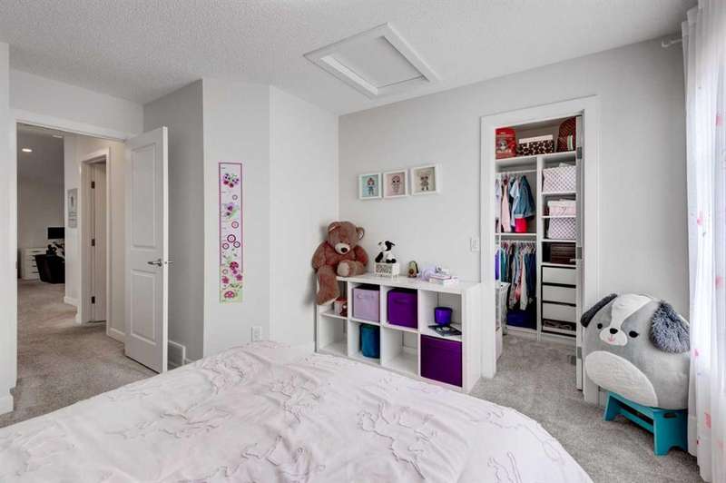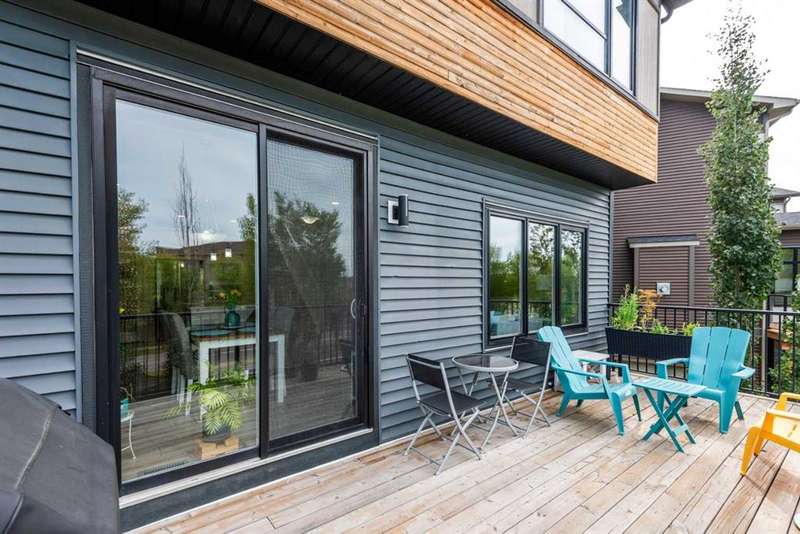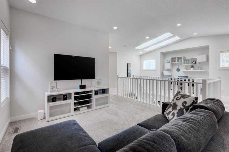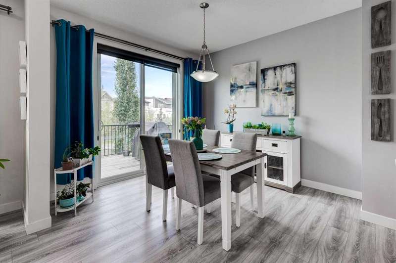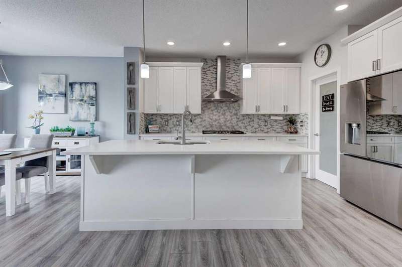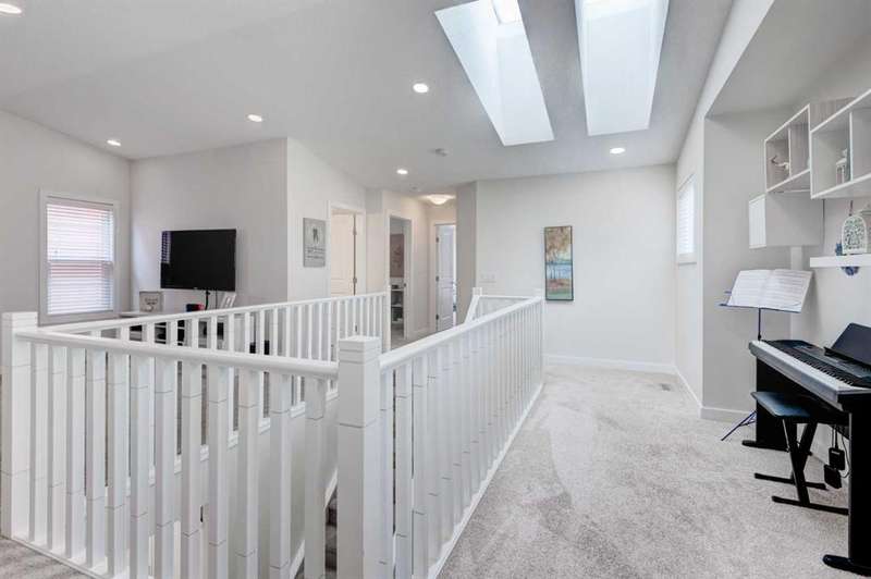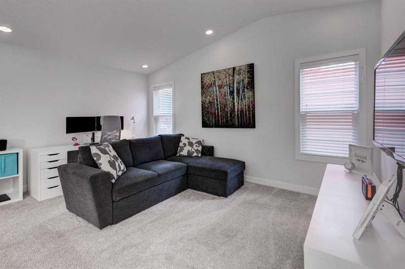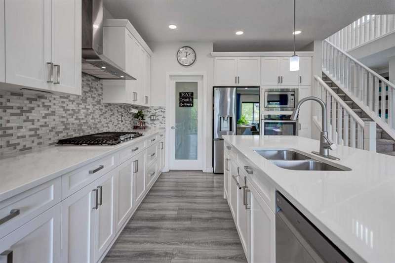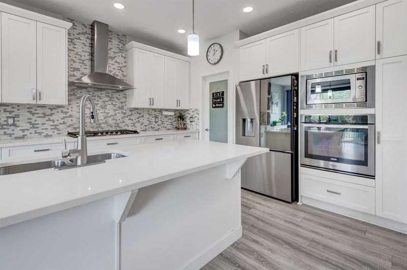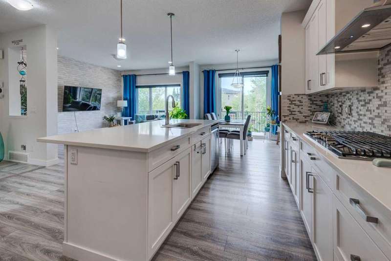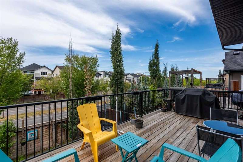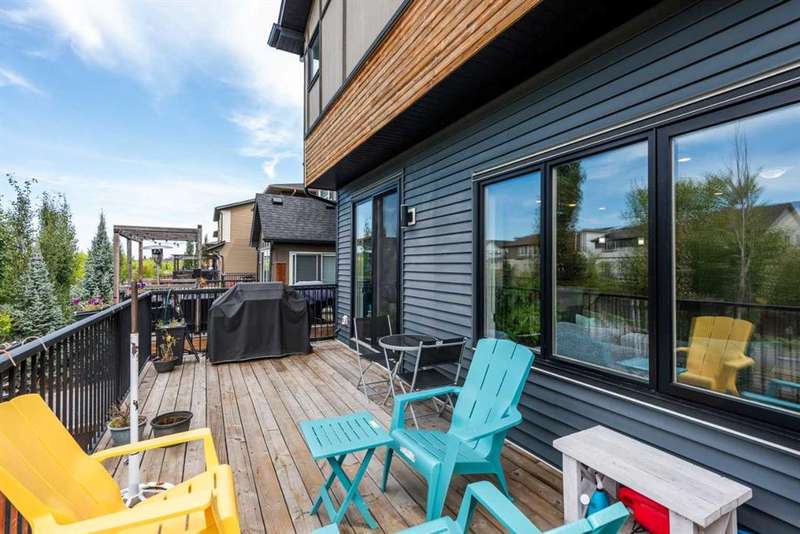 Welcome to this stunning home, nestled on a quiet street in the highly sought-after community of Walden. Beautifully maintained and impeccably kept, it offers almost 2,200 square feet of above-grade living space, complemented by an additional 821 square feet in the fully developed walkout basement. Your introduction to this residence begins with an expansive tiled front foyer that sets the tone for the thoughtful design throughout. Natural light floods every corner thanks to an abundance of large windows, creating a bright and airy atmosphere. The dream kitchen is a true showpiece, featuring crisp white cabinetry with crown moldings, quartz countertops, a large island, upgraded stainless steel appliances including a built-in oven and microwave, gas range and Insta-view Craft fridge. A walk-through pantry and mudroom add convenience, while the family-sized dining nook with patio doors opens to a full-width deck, perfect for entertaining. The main floor family room boasts a full wall of windows that enhance the open-concept design, making this home ideal for gatherings. Upstairs, the appeal continues with a massive central bonus room featuring vaulted ceilings, pot lighting, a built-in study nook, and two skylights that keep the space bright. The primary suite easily accommodates a king-sized bedroom set and offers a spa-inspired ensuite with quartz countertops, dual sinks, and a double-wide tile-skirted soaker tub. The walk-in closet includes built-ins for effortless organization. Bedrooms 2 and 3 are both oversized and feature walk-in closets, while the laundry room with tile floors and storage completes the upper level. The fully developed walkout basement adds even more space with 9’ ceilings, luxury vinyl plank flooring, a large recreation room, a spacious fourth bedroom, and a full bathroom. Outside, enjoy the west-facing backyard with a full-width covered patio, the perfect spot for relaxation and outdoor living. This turnkey property offers elegance, function, and comfort in one of Calgary’s most desirable communities—a true must-see!