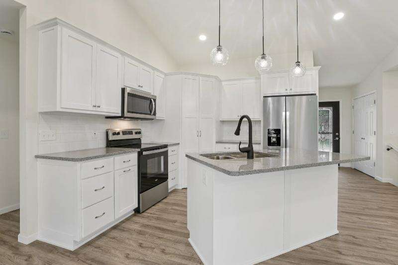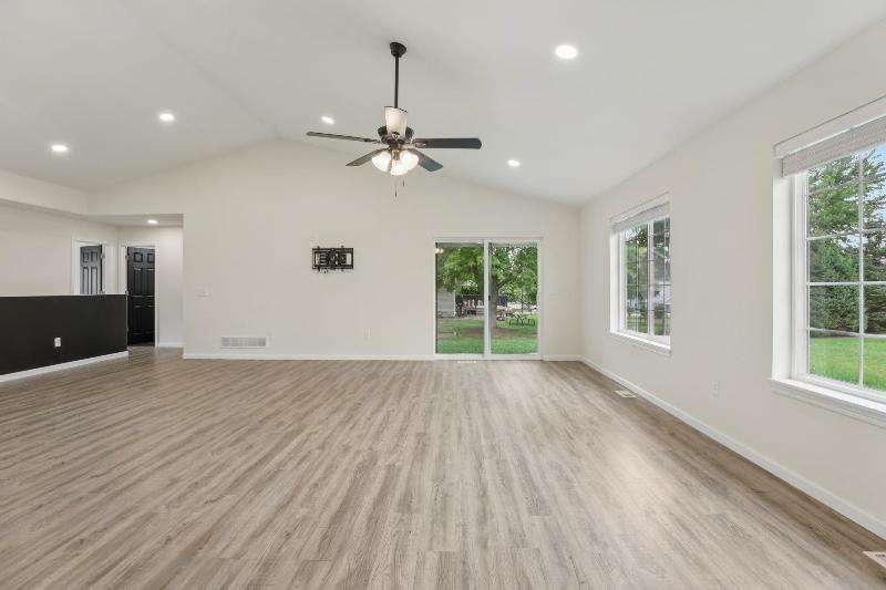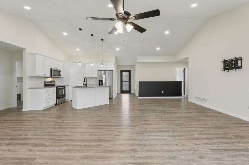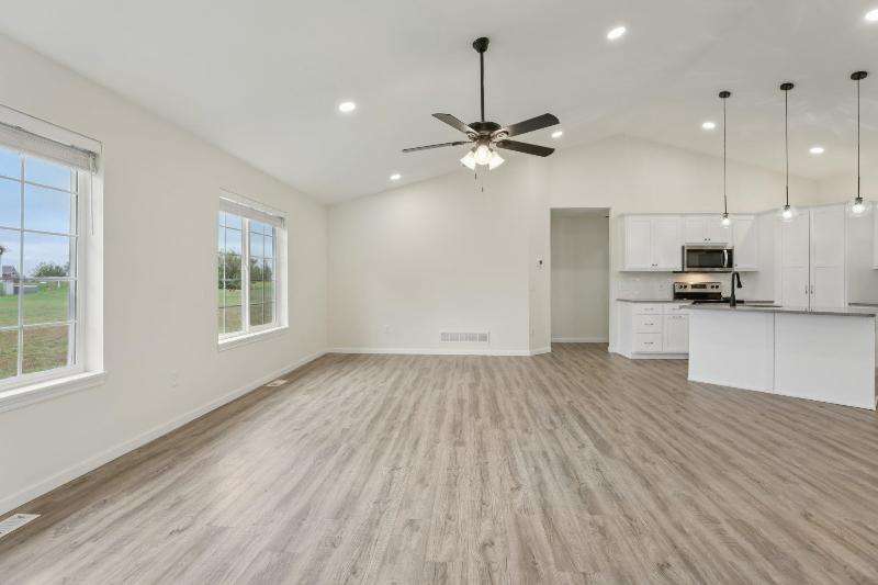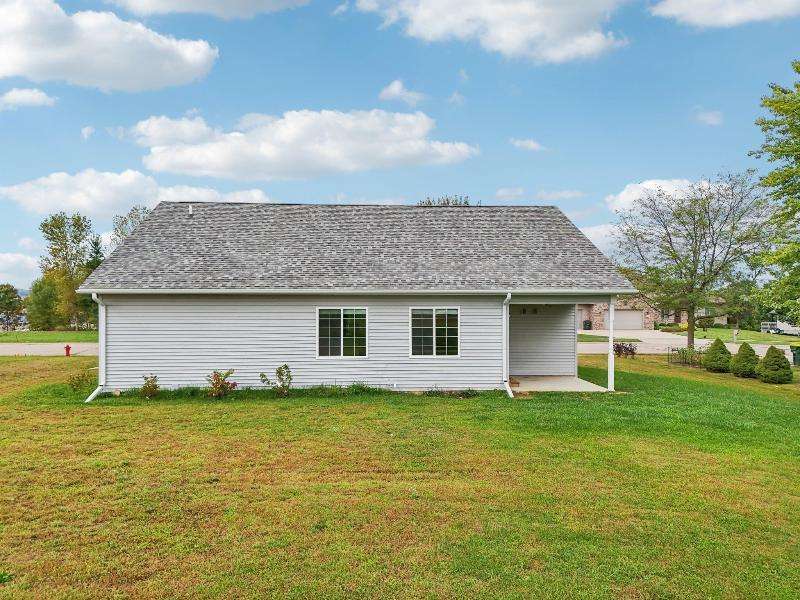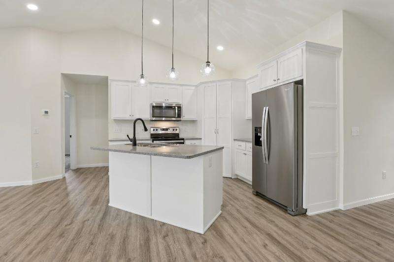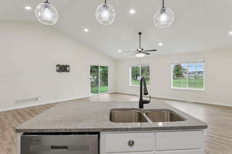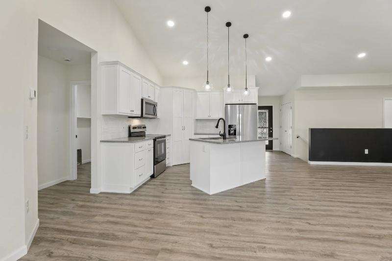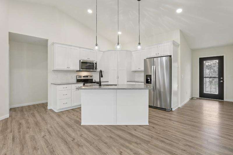 Step into this 2024 build that blends modern style with everyday functionality. This 3 BR, 2 BA home is move-in ready and designed to impress. Features vaulted ceilings that create an airy, spacious feel, while solid-surface countertops and quality finishes add a touch of sophistication. The stone facade enhances curb appeal, while the peaceful backyard is the perfect retreat - complete with a covered patio. The lower level provides plenty of room for future expansion, giving you space to grow. Located in a fantastic neighborhood close to parks, schools, and grocery stores, you'll enjoy both convenience and comfort here. Sellers are relocating for work, giving you a rare opportunity to own a nearly brand-new home without the wait of new construction.