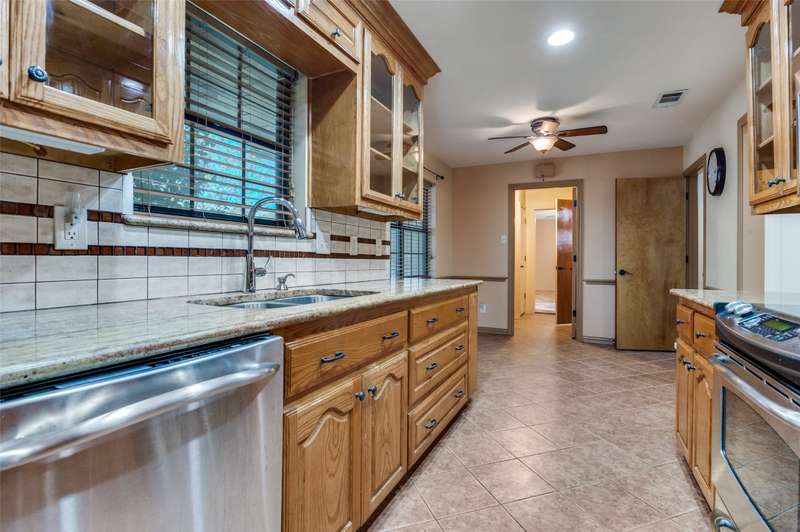 What a great location! Walk to Costco, Pappas Steakhouse or Popeyes Chicken in minutes from this home. A generous foyer greets you as you enter this 4 bedroom, 2.5 bath home. The formal dining room is located on the front corner of the house and connects to the kitchen for easy access. The kitchen features custom built kitchen cabinets, granite countertops, custom backsplash, recessed lighting, Stainless steel appliances and a refrigerator. The spacious primary bedroom has engineered hardwood floors, a ceiling fan and an ensuite bathroom complete with a walk in closet. Two other bedrooms share a large remodeled bathroom that is equipped with a shower stall that has handicap grab bars and a seat inside the shower. A fourth bedroom or study is located towards the back of the home by the garage conversion. The backyard is an oasis featuring a covered back patio, custom pergola, a gazebo and a large diving pool for those hot Texas days. A storage shed is also located on the back corner of the yard. Dont miss your opportunity to visit this beautiful home today!!!