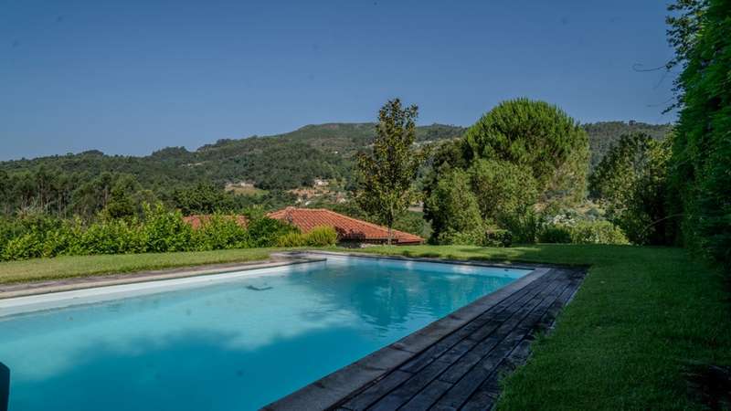 Charming rehabilitated country house with 5 bedrooms, swimming pool and large garden, for sale in Arcos de Valdevez. Harmoniously set in tranquil, bucolic surroundings, the main house of this beautiful property has a large garden area and a yard with fruit trees. Inside, there are two living rooms, one with a fireplace, a fully equipped kitchen and a dining room. In the private area of the house there are four spacious and bright bedrooms, three of which are en-suite. The secondary house, great for guests and with full privacy, consists of a living room with an open-plan kitchen, as well as a suite. This quinta also has a pool house and a large games room. This property is located 15 minutes from the center of Arcos de Valdevez and 10 minutes from the freeway. 50 minutes from Porto and Francisco Sá Carneiro Airport. CHARACTERISTICS: Plot Area: 5 339 m2 | 57 469 sq ft Deployment Area: 180 m2 | 1 938 sq ft Building Area: 408 m2 | 4 392 sq ft Bedrooms: 5 Bathrooms: 6 Garage: 2 Energy efficiency: C