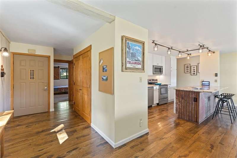 Walk into your fully remodeled 2-bedroom, 2-bath condo via the private entrance. This ground floor, end unit with walk out patio is ideal for soaking up the expansive views of Lake Dillon, entertaining guests and perfect for your pets. Updates include white oak flooring, kitchen with granite counters and stainless steel appliances. Add to that triple pane Pella sliding doors, travertine tile in bathrooms with radiant in-floor heat and a remote set gas fireplace. Close to all the Summit ski resorts including Keystone and Arapahoe Basin. An in-unit washer and dryer plus a 1-car detached garage with a locked storage space are included. After a day of fun on the slopes or trails enjoy the amenities of the Corinthian Hill clubhouse with an outdoor heated pool and hot tub. A short walk to the Summit Stage bus stop. Access to National Forest trails is a short distance away. Partake in all the wonderful events and amenities in Dillon with the Amphitheater, Farmers Market, Tiki Bar and Marina. Short term rentals allowed.
