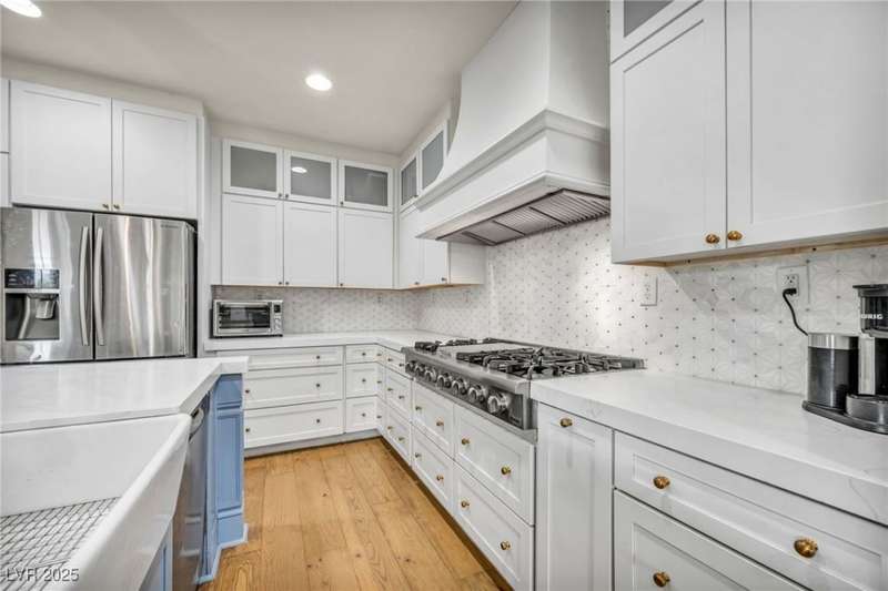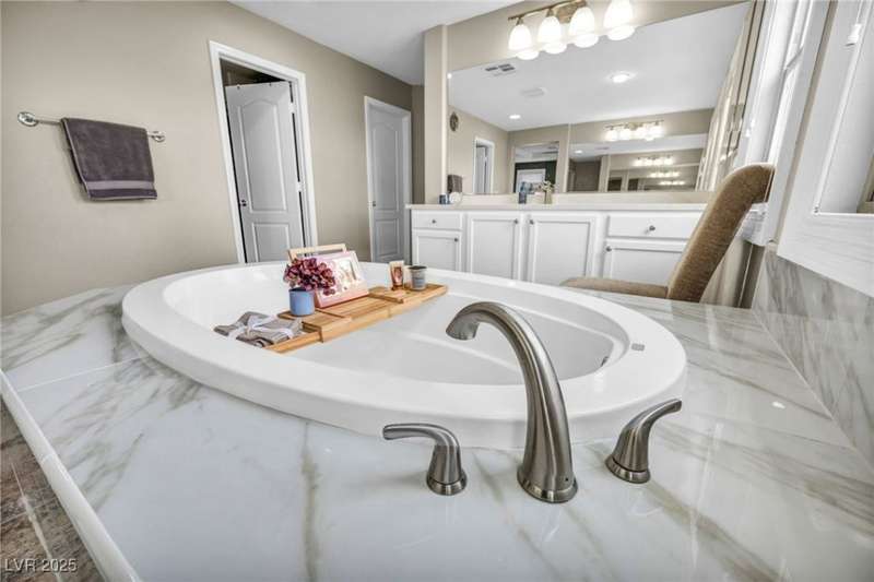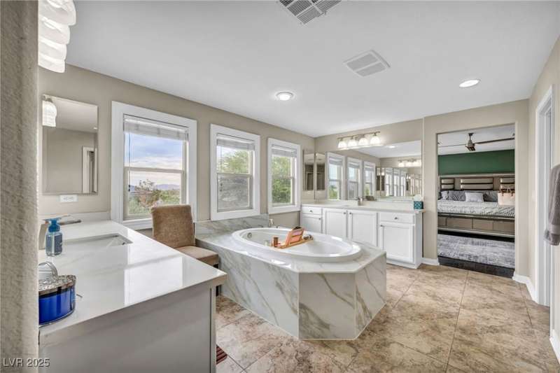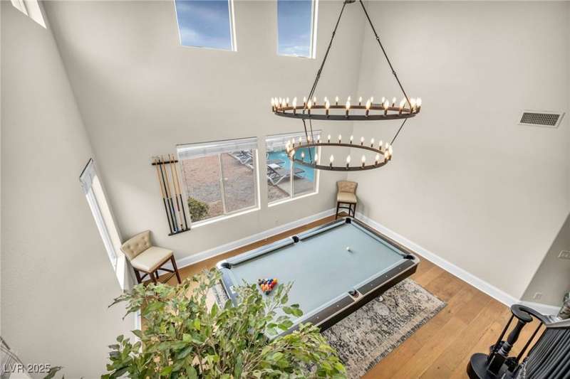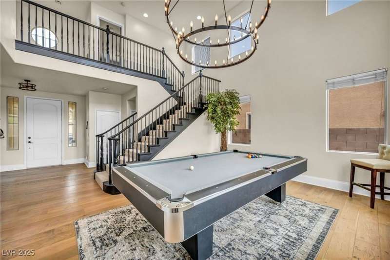Welcome to comfort and convenience in this 5-bedroom, 4-bath home offering nearly 3,400 square feet of smartly designed living space. Located in a gated community in the highly desired Aliante community, this spacious two-story residence features a well-appointed custom kitchen, ample storage, oversized pool, and a thoughtful layout perfect for entertaining or simply enjoying a quiet evening. The primary bedroom includes an en-suite bath, providing a private retreat after long days. Enjoy energy savings with PAID-OFF TESLA SOLAR PANEL AND POWERWALL BATTERY SYSTEM, helping power your day while being kind to the planet. Step outside and explore nearby attractions like the scenic Aliante Nature Discovery Park, the fairways of Aliante Golf Club, or grab a bite at one of the local popular restaurants. Everyday shopping is convenient with Smith's and Natural Grocers less than a mile away. Close to schools and parks, this home blends functionality with neighborhood charm for the perfect fit.