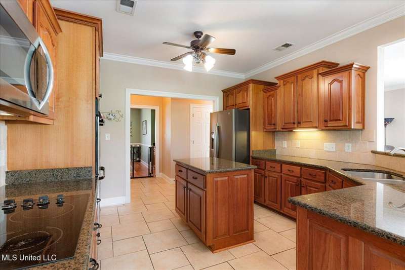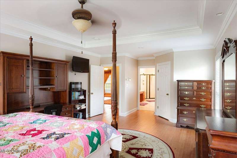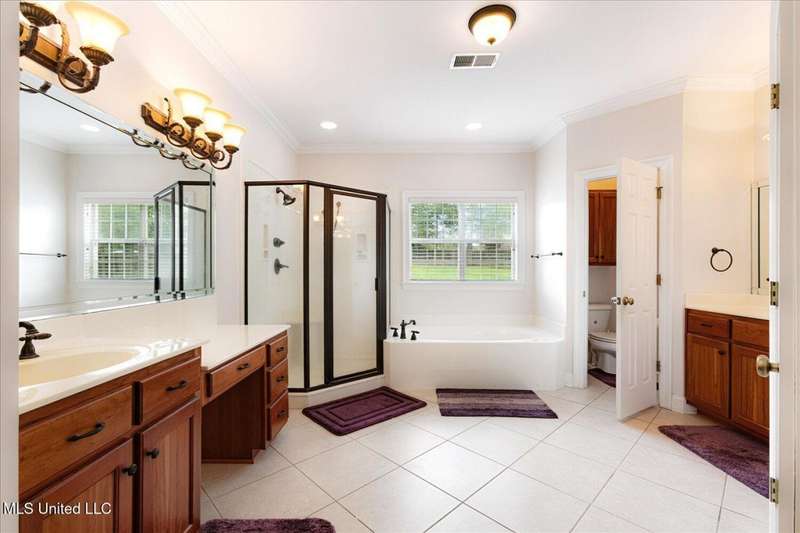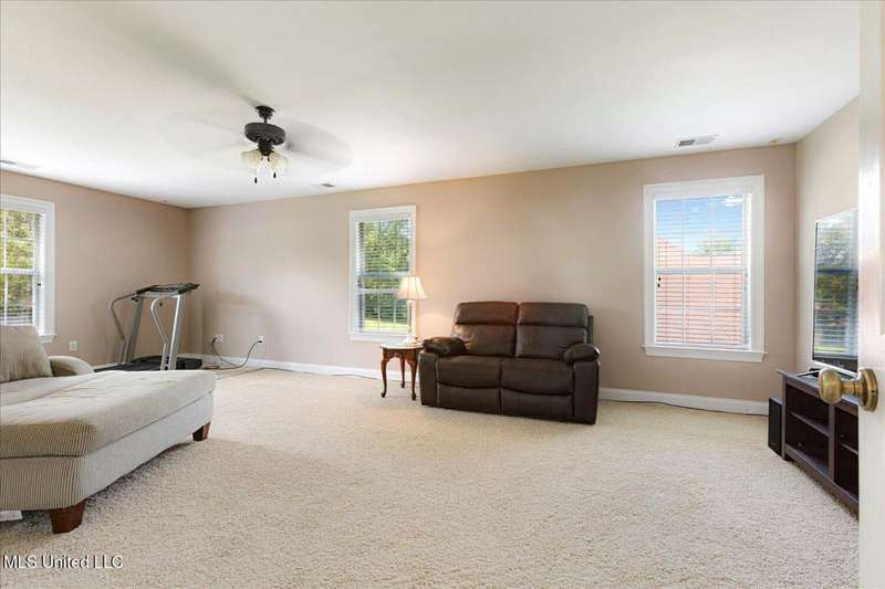 Located in the highly sought-after Dickens Place subdivision, this spacious home offers 6 bedrooms and 4-1/2 baths. The gourmet kitchen is a chef's dream, featuring abundant cabinetry, granite countertops, smooth cooktop, double ovens, microwave vent hood, tiled floor and backsplash, huge walk-in pantry, large snack bar, and center island--plus a sunny breakfast area that opens seamlessly to the 21.7x16.4 family room with a cozy gas-log fireplace. The 21.7x13.10 great room also includes gas-log fireplace and, along with the formal dining room, showcases hardwood flooring. The expansive 20x14 primary bedroom is located on the main level and boasts trayed ceiling, walk-in closet, and luxurious salon bath complete with dual vanities (one with knee space), jetted tub, walk-in shower, and an additional walk-in closet. Upstairs, you'll find five more bedrooms, versatile bonus room, and four full baths--including a convenient jack-and-jill bath, a private en-suite, and centrally located hall bath. Additional features include two hot water heaters, three HVAC systems, generous walk-in and linen closets, refrigerator and washer/dryer to remain, laundry room with cabinetry, smooth ceilings, and 2-inch blinds throughout. Situated on almost one acre landscaped corner lot with mature trees, the backyard is an entertainer's paradise with privacy fence, sparkling inground pool with diving board and waterfall, anchored seasonal pool cover, expansive pool apron, dual patio areas, and large screened porch. Exterior features include low-maintenance brick and vinyl siding, architectural shingle roof, gutters, brick flower beds, and oversized double garage with storage closet and walk-through door. Call now to make this exceptional home yours!