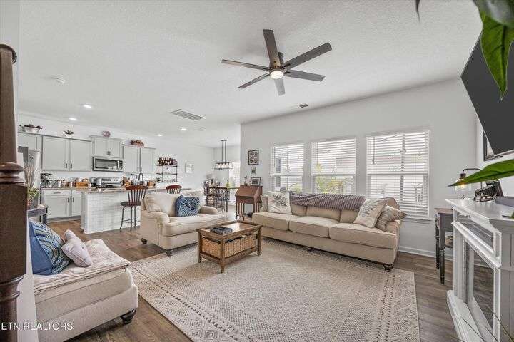 Welcome to 7 Chestnut Court in the sought-after Frank Price Landing community in Clinton, TN! This beautiful Edmon floorplan offers over 1,800 square feet of thoughtfully designed living space, built in 2021 and meticulously maintained to give it a like-new feel. From the moment you arrive, you'll appreciate the home's clean curb appeal and quiet cul-de-sac setting. Step inside to discover a welcoming main level that features an open-concept layout, making everyday living and entertaining a breeze. The spacious living room is complete with an electric fireplace, upgraded ceiling fan and flows seamlessly into the dining area, which showcases an upgraded light fixture. The kitchen features a custom tile-wrapped island, upgraded faucet, automatic pantry lighting, and modern finishes throughout. A stylish powder bath and additional storage complete the main floor. Upstairs, you'll find all four generously sized bedrooms, an upgraded paint palette in the guest rooms and bath, and a laundry room conveniently located on the second level—making chores that much easier. This home is pet-free, smoke-free, and loaded with thoughtful upgrades including motion lighting in the painted garage, dimmer switches, and a modern, neutral color scheme throughout. Step outside to your own private retreat—an expansive 420-square-foot Trex deck patio that feels like a true zen sanctuary. Whether you're enjoying the built-in lighting, relaxing by the firepit, or simply unwinding after a long day, this calming space is perfect for peaceful evenings or casual entertaining. Ideally located near schools, shopping, and everyday amenities, this property offers both comfort and convenience. Zoned for Clinton City Schools and nestled in a community with minimal restrictions, this home is ready to welcome you. Don't miss your chance to tour this one-of-a-kind home—schedule your private showing today!
