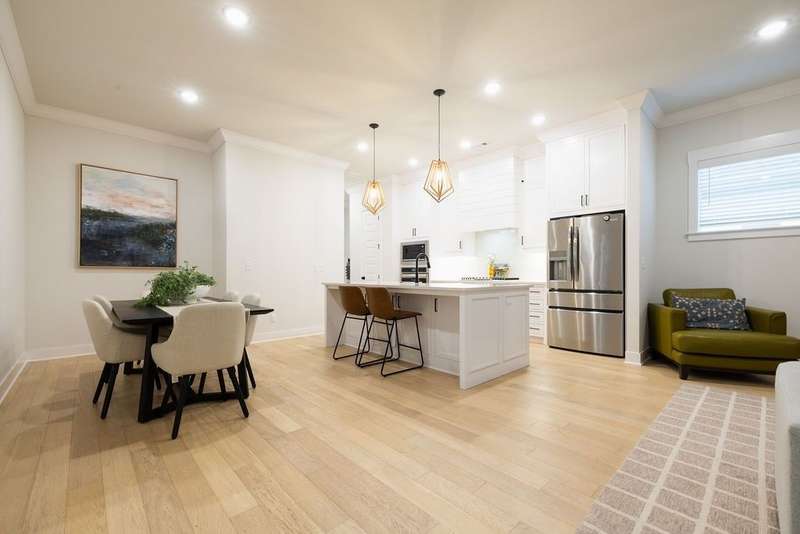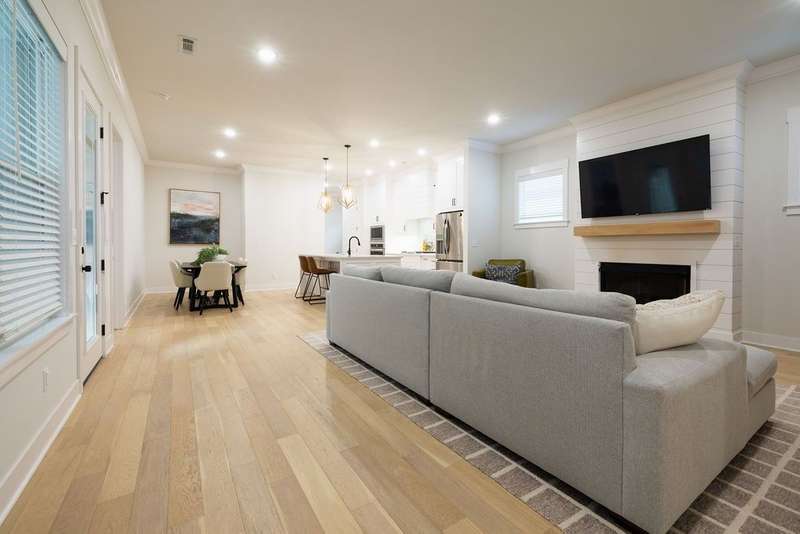 WOW!! This three bedroom two bath home is a gem! Hardwoods throughout. Eight foot interior doors. Split floor plan. Large covered patio with cable and gas hookups, AND covered front porch. Primary bedroom is oversized and flows seamlessly into primary bath which has a large upgraded shower with rainhead faucet, and additional shower head with wand. Separate garden tub in primary bath is perfect for relaxing after a long day. The high end finishes and the open concept floor plan with thoughtfully laid out kitchen makes this Landmarc Custom Home a winner! Lots of closet space, attic storage and OVERSIZED two car rear load garage. POA covers lawn care and sprinklers. Walking distance to the beautiful Shaw Park that has paved walking/running trail, tennis courts, dog park, playground, splash pad, and fishing ponds