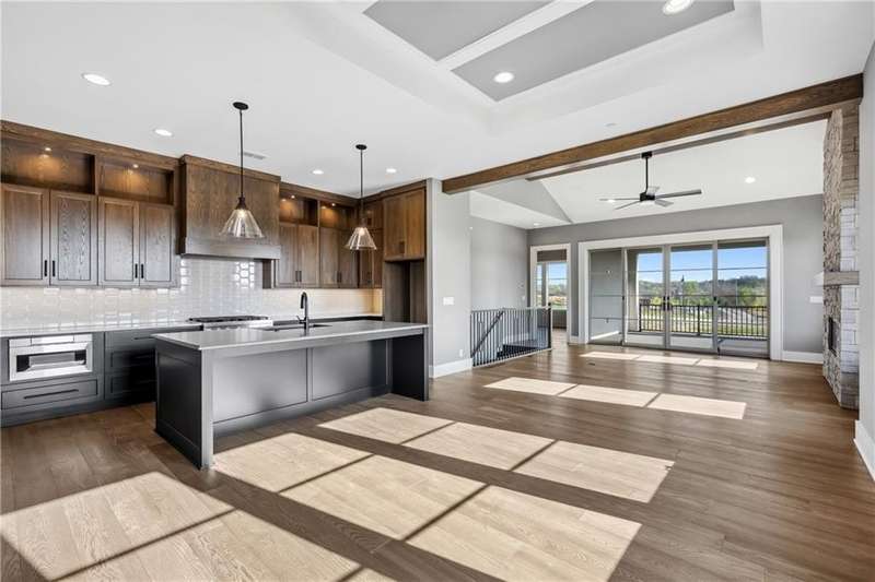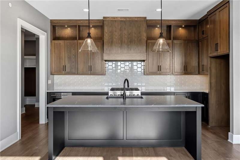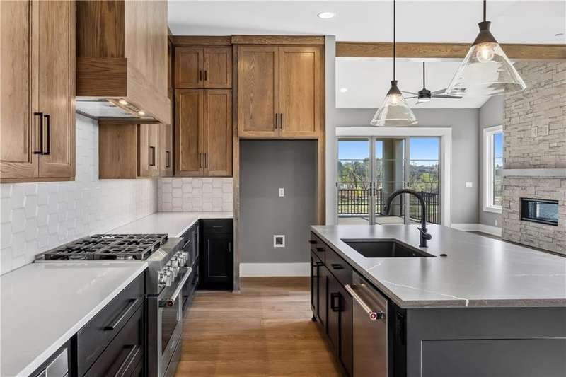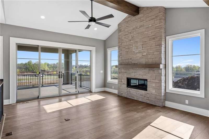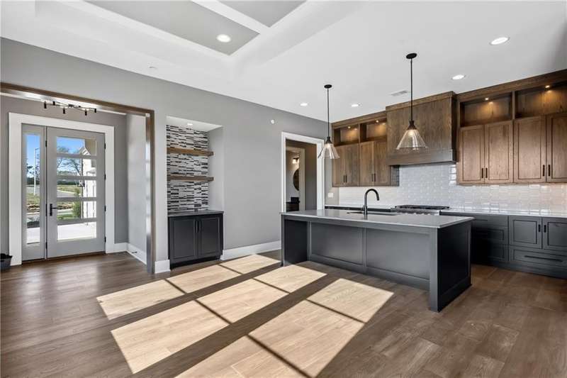 *READY NOW/COMPLETED!* The Kensington by Lambie Homes is a paired-villa plan on daylight lot 2/D4, that offers 4 bedrooms, 4 bathrooms and a 2-car side entry garage WITH ZERO ENTRY FROM GARAGE TO HOME. At over 2,679 sq ft, this home offers thoughtfully edited living and entertaining space in Regents Park--the area's premier luxury maintenance-provided community. This reverse story and a half plan features an open living, dining, and kitchen concept with a walk in pantry and mudroom. The first floor is comprised of the primary bedroom suite, full laundry room, flex room (perfect for a guest room or home office), additional full bathroom and a spacious covered deck. The lower level features 2 bedrooms with walk-in closets and accompanying bathrooms, large family room and a walk-up bar. Lush landscaping creates a picture-perfect setting and required elevated exterior elements include concrete tile roofs, durable acrylic stucco siding and natural stone accents set this neighborhood apart. Regents Park Leawood offers private neighborhood amenities which include a pool and pavilion, pickleball, dog park and a walking trail, located right off of the 135th St. corridor! SPRING PARADE OF HOMES 2025--2ND PLACE/SILVER AWARD FOR DISTINCITVE PLAN & DESIGN!