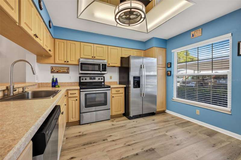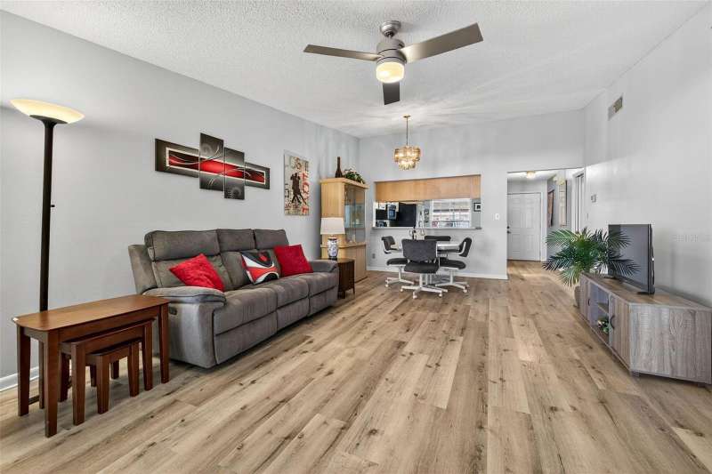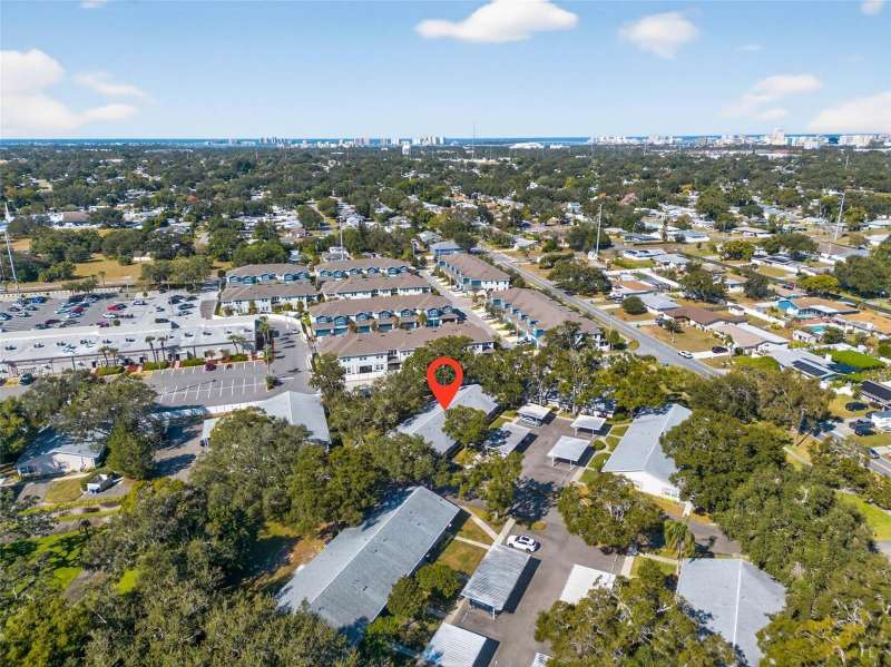 Under contract-accepting backup offers. Welcome Home! Nestled within the quiet, well-kept community of Nelson Place, this beautifully updated 2-bedroom, 2-bath condominium offers a bright and inviting 1,044 square feet of thoughtfully designed living space. With soaring vaulted ceilings, generous natural light, and a flowing open layout, this home feels spacious, warm, and instantly comfortable. Step inside to a welcoming main living area, where seamless luxury vinyl plank flooring and large windows create an airy, effortless sense of space. The heart of the home centers around the updated kitchen (2017), featuring stainless steel appliances, abundant cabinetry, and a comfortable breakfast bar perfect for morning coffee or casual dining. The kitchen connects smoothly to the living and dining areas, making the space ideal for everyday living and easy entertaining. The oversized primary suite provides a peaceful retreat, complete with a large walk-in closet and a private en-suite bath. A second bedroom and full guest bath offer flexibility for a home office, seasonal guests, or a quiet den. Practical upgrades add peace of mind, including a 2024 HVAC, 2023 water heater, and a newer roof. Additional conveniences include in-unit laundry with updated washer and dryer and an assigned covered parking space just steps from your door. Outside, an unexpectedly large landscaped rear patio extends your living space, perfect for reading in the morning sun, unwinding with a glass of wine, or hosting friends on a breezy evening. The heated community pool ensures year-round enjoyment. And with the property sitting high and dry outside any flood zone, there’s no flood insurance requirement. Centrally located just minutes from grocery stores, restaurants, shopping, the beach, and both Tampa and St. Pete–Clearwater airports, this residence offers the best of maintenance-free Florida living in the heart of Clearwater.