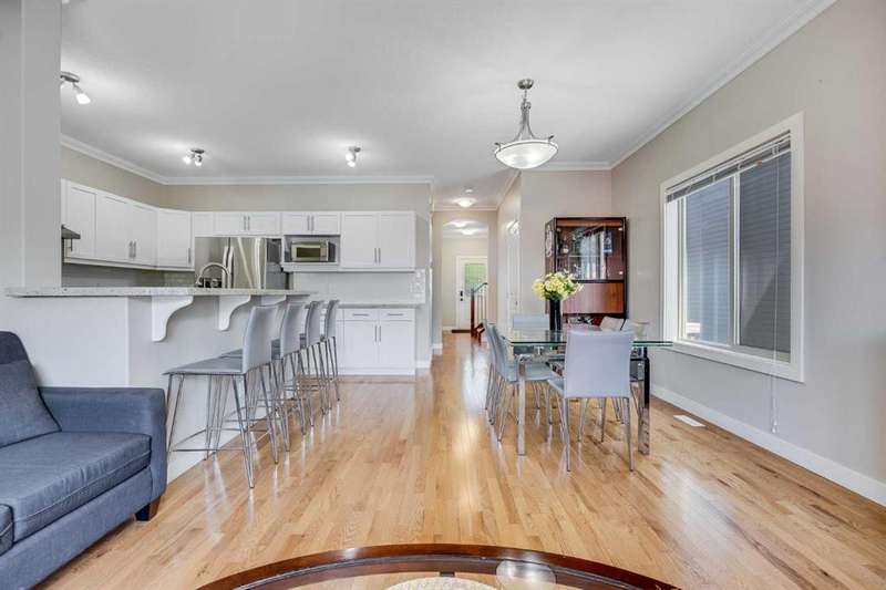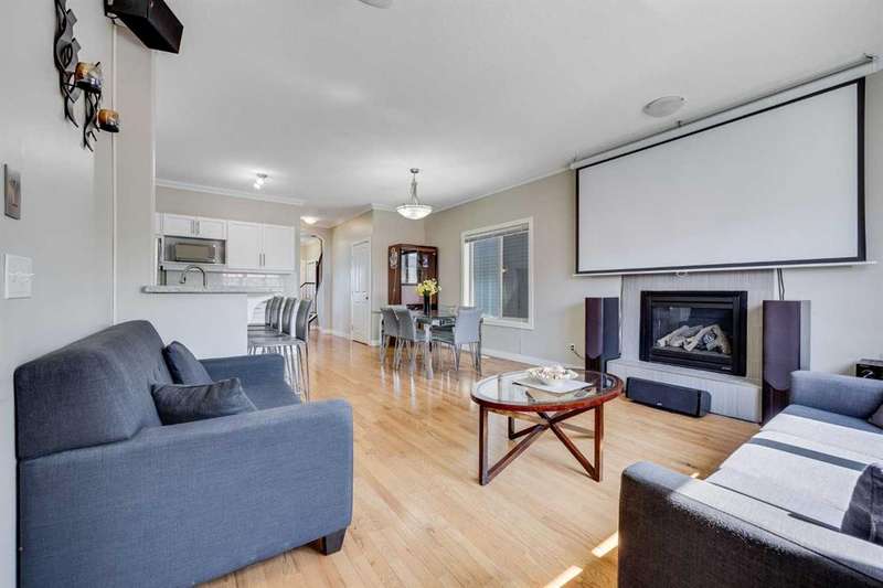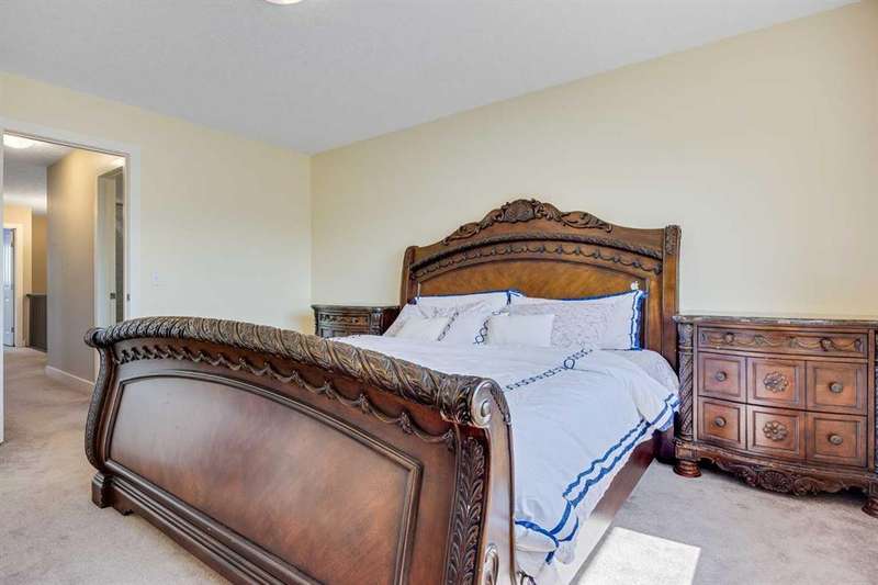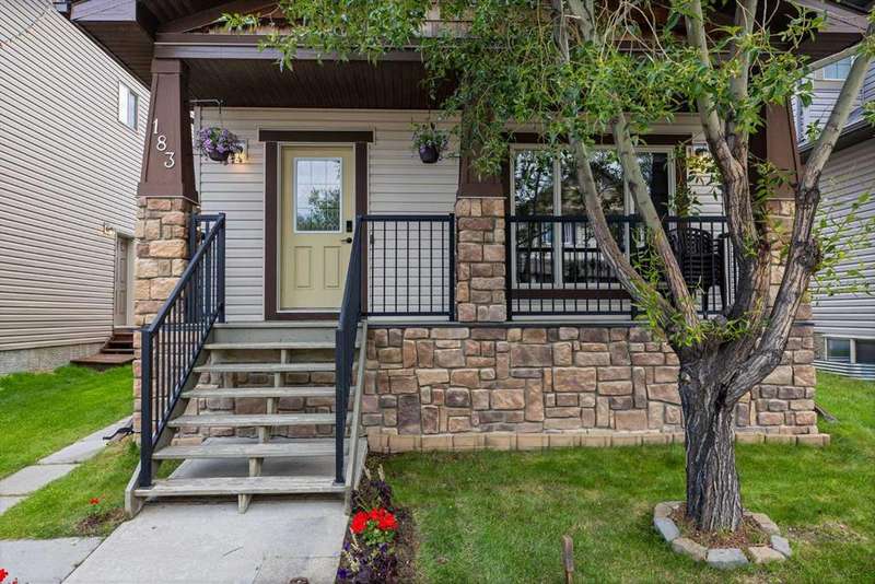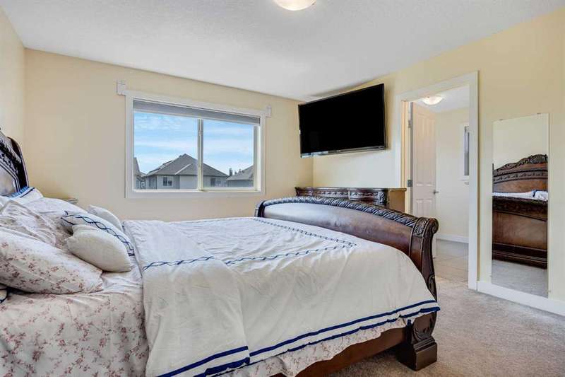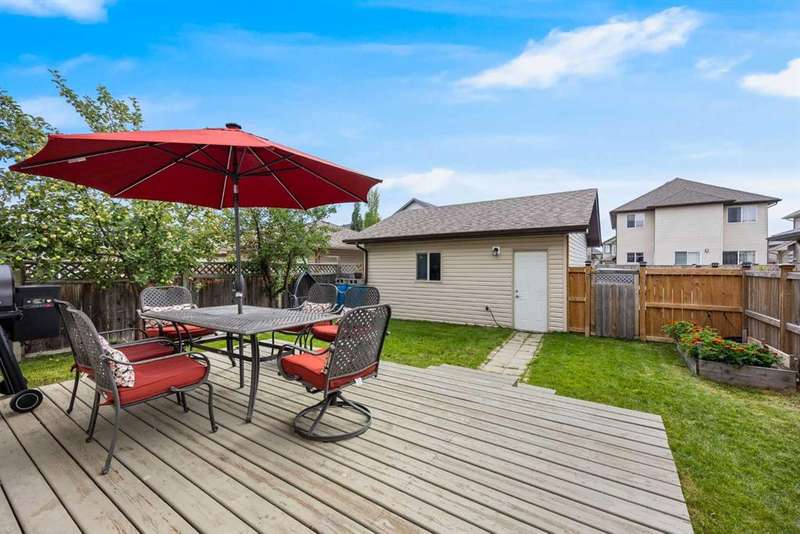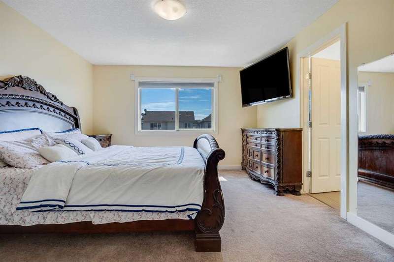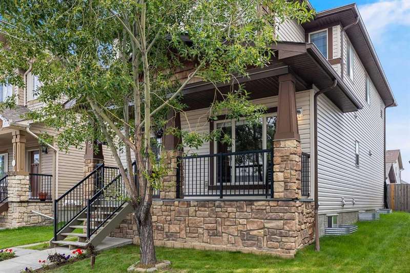 Charming and spacious 2-storey detached home in the desirable community of Bayside, Airdrie. This beautifully maintained 6-bedroom, 3.5-bath property offers a perfect blend of comfort, functionality, and location — just steps from Nose Creek Elementary School, parks, pathways, and the scenic canal. The main floor features a bright and open living room with a cozy fireplace, a generous dining area, and a well-appointed kitchen with ample cabinetry, counter space, and a walk-in pantry. A dedicated office/den, mudroom, and laundry add everyday convenience. Upstairs, the primary suite boasts a private 4-piece ensuite and walk-in closet, complemented by three additional bedrooms and another full bathroom. The fully finished basement adds two more bedrooms, a full bath, a large rec room, and its own laundry area — perfect for guests or extended family. Outside, enjoy a fully fenced backyard with apple and cherry trees, a double detached garage, and RV parking. This home offers space, versatility, and a prime Bayside location your family will love.