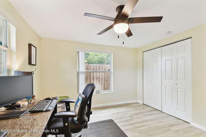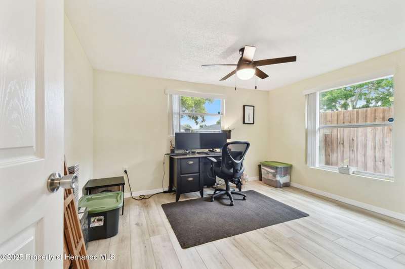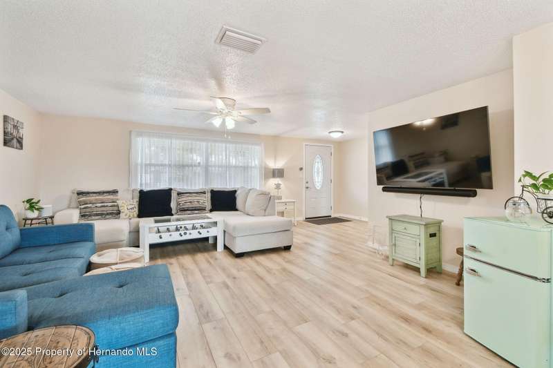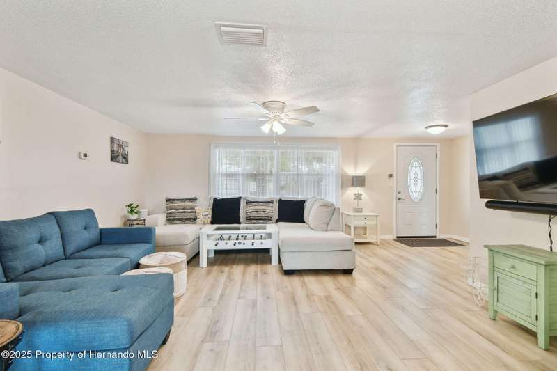 Welcome to your dream home! This charming 2-bedroom, 3-bathroom single-family residence, nestled in the desirable Colonial Hills neighborhood, offers 1,399 sqft of well-maintained living space with brand new LVP flooring. This home features an open and inviting floor plan, ideal for entertaining guests or enjoying cozy evenings at home. Step inside to discover a bright and airy interior with ceiling fans, modern fixtures, and a functional layout. The oversized kitchen flows seamlessly into the living and dining areas, creating a warm and welcoming atmosphere. All Stainless Steel appliances included. Enjoy the Florida lifestyle with a spacious screened-in porch and a fully fenced backyard, perfect for outdoor relaxation, barbecues, or pets. The home also includes a 2-car garage with a full bathroom. Located just minutes from downtown New Port Richey, this property offers easy access to vibrant local restaurants, shopping, Sims Park, and stunning Gulf Coast beaches like Green Key, Howard Park and Honeymoon Island. With no HOA .This home is a fantastic opportunity for homeowners or investors alike. Don't miss out on this move-in-ready gem in a prime location. schedule your showing today.