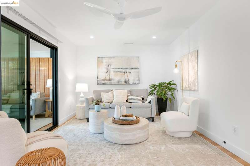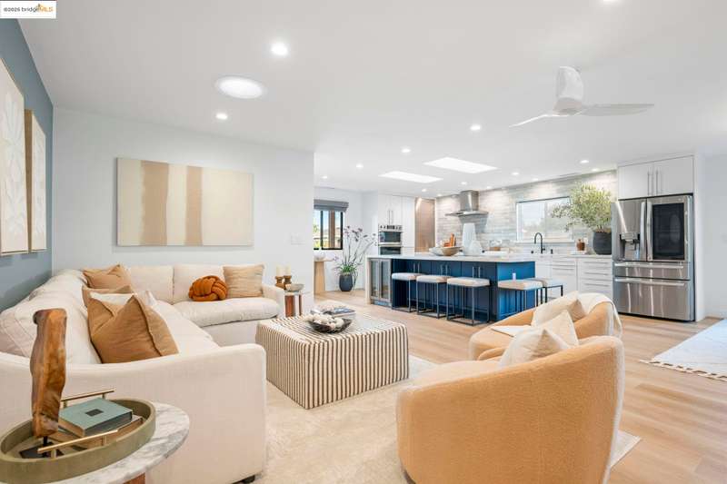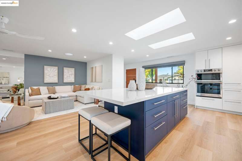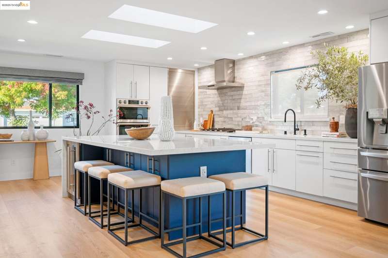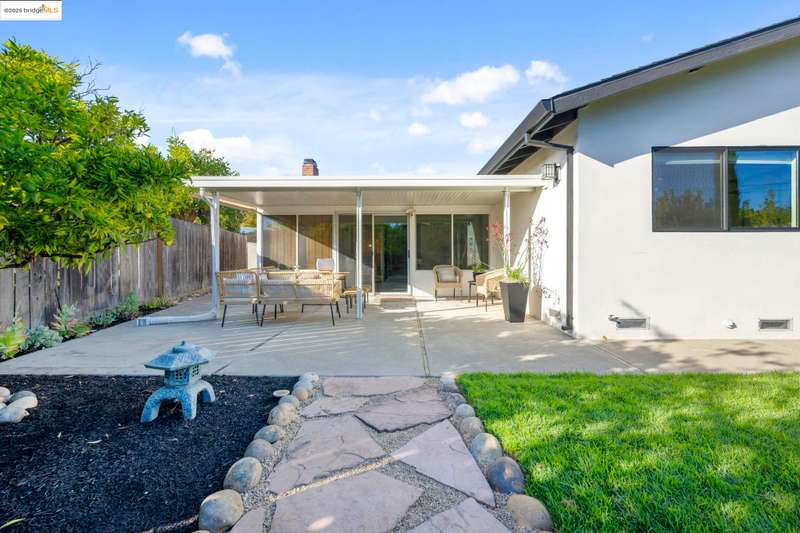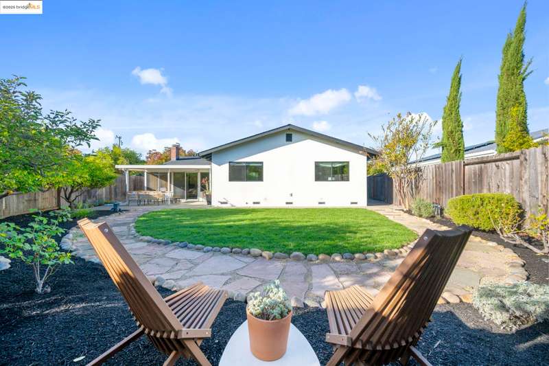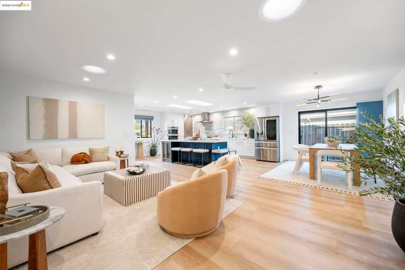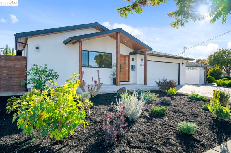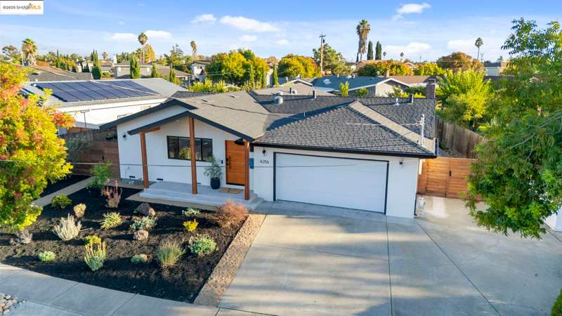 THE ONE! Rebuilt for today's luxe living. Dreamy CA modern style anchors 6256 Rockrose Dr, where sunlight streams into double skylights and moves across an open great room combining kitchen dining and living areas. A chef’s kitchen designed for ease and hosting has an oversized island, quartz counters, custom tile, Bosch dishwasher, LG fridge, and a pro-style Samsung range with pull-out pantry and plenty of storage. Life opens outdoors into 3 zones: a covered patio for slow mornings, a paved side patio for effortless BBQs, and a lawn framed by low-maintenance plantings with mini orchard of apple, lemon, clementine, and grapefruit trees. A flex/home office adds daily versatility for work, workouts, or play. In the en-suite, a wall of organized closet space meets a luxe bath with dual vanity, Hansgrohe fixtures, and finishes that echo the hallway bath. Behind the beauty, the home has brains, too: full renovation with Marvin windows and doors, updated lighting and surfaces, and dependable new internal systems so you can simply move in and exhale. Smart features include Ecobee thermostat, Flair smart vents, Haiku (Big Ass Fans) ceiling fans, Eufy lights/cameras/locks, and MyQ garage. Epoxy-floored, EV-ready garage with ELFA storage. Minutes to 84/880, parks, shops, and Silicon Valley