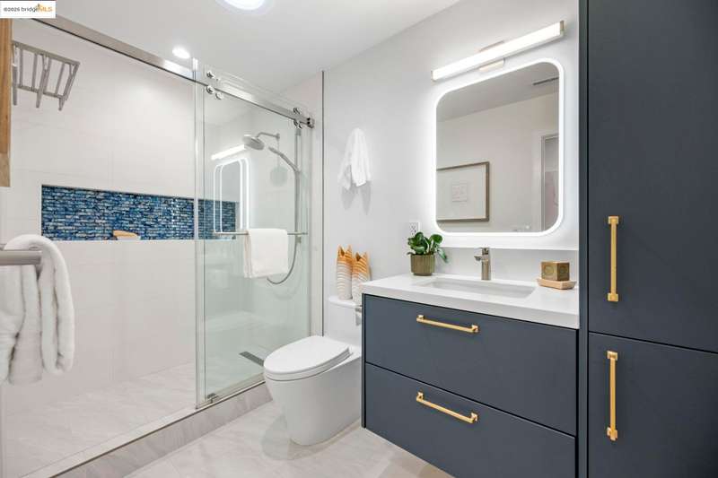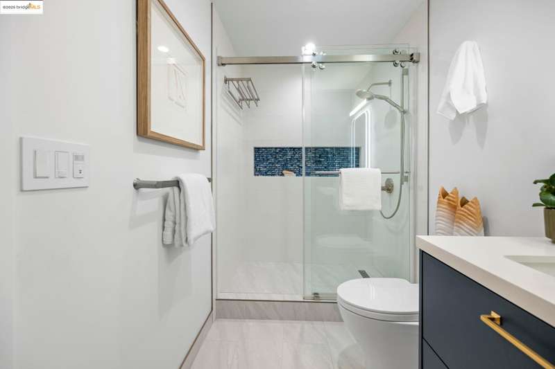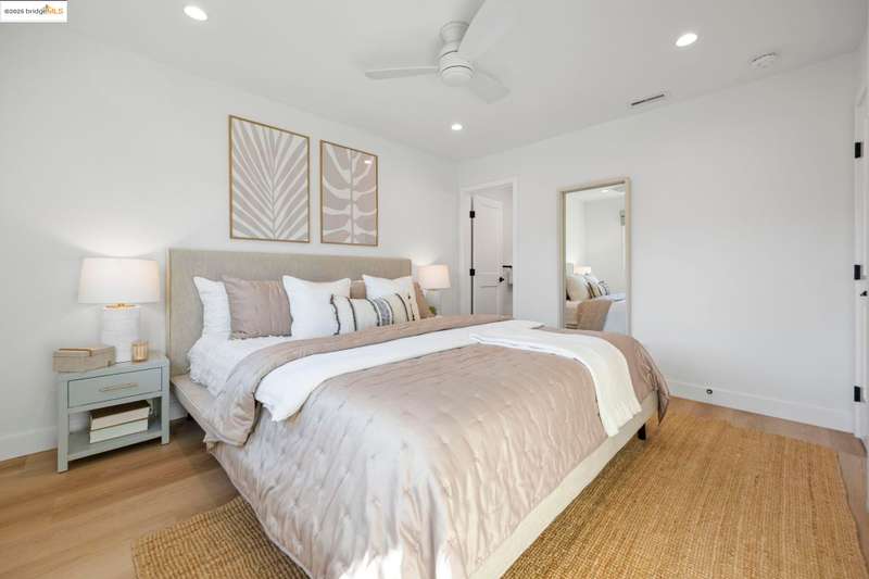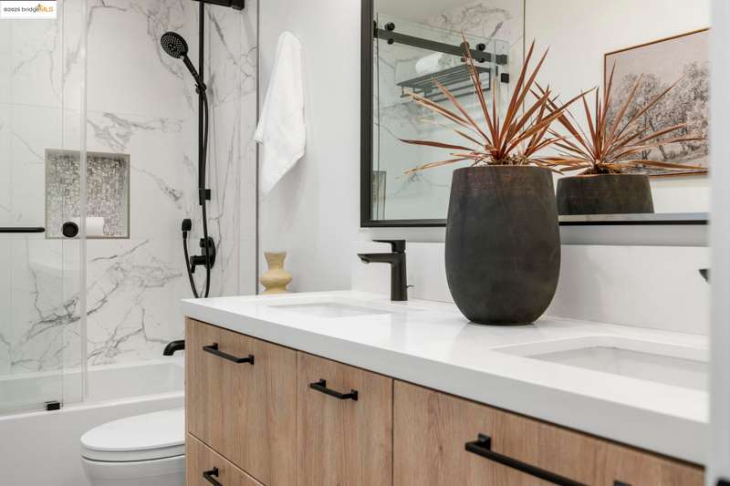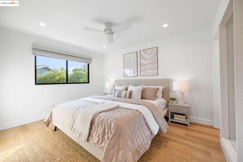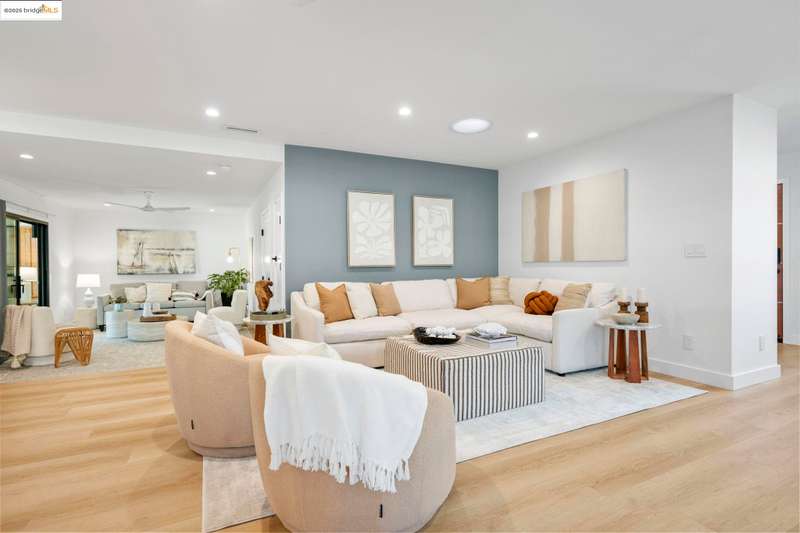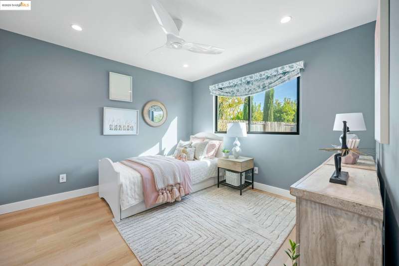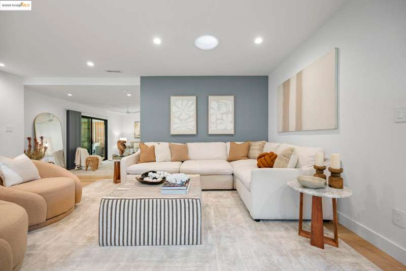 THE ONE! Rebuilt for today's luxe living. Dreamy CA modern style anchors 6256 Rockrose Dr, where sunlight streams into double skylights and moves across an open great room combining kitchen dining and living areas. A chef’s kitchen designed for ease and hosting has an oversized island, quartz counters, custom tile, Bosch dishwasher, LG fridge, and a pro-style Samsung range with pull-out pantry and plenty of storage. Life opens outdoors into 3 zones: a covered patio for slow mornings, a paved side patio for effortless BBQs, and a lawn framed by low-maintenance plantings with mini orchard of apple, lemon, clementine, and grapefruit trees. A flex/home office adds daily versatility for work, workouts, or play. In the en-suite, a wall of organized closet space meets a luxe bath with dual vanity, Hansgrohe fixtures, and finishes that echo the hallway bath. Behind the beauty, the home has brains, too: full renovation with Marvin windows and doors, updated lighting and surfaces, and dependable new internal systems so you can simply move in and exhale. Smart features include Ecobee thermostat, Flair smart vents, Haiku (Big Ass Fans) ceiling fans, Eufy lights/cameras/locks, and MyQ garage. Epoxy-floored, EV-ready garage with ELFA storage. Minutes to 84/880, parks, shops, and Silicon Valley