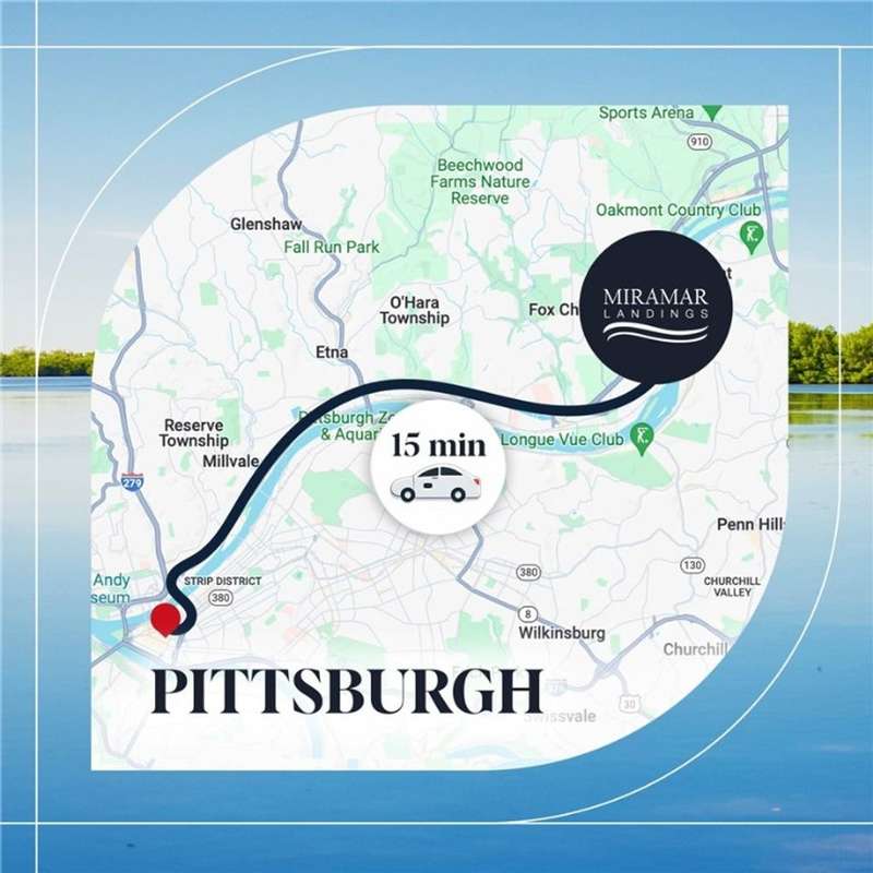 Welcome to Miramar Landings, where luxury meets convenience nestled along the Allegheny River. ELEVATOR OPTION!! TOURS AVAILABLE! Photos are of a model home. Our upscale residences offer maintenance-free living with exclusive river access and optional dockage. Enjoy contemporary design featuring exterior stone accents, a cozy fireplace, and a covered deck and lanai. Customize your home with options like an extra bedroo, study, game room, or even an elevator. Each residence boasts 3 bedrooms, 3 ? bathrooms, and a 2-car garage, embodying modern comfort and riverfront elegance. Crafted by award-winning Ricciuti Enterprise, our community in O'hara Township, within the Fox Chapel School District, offers proximity to amenities like shopping, parks, country clubs, and dining. With easy access to the Turnpike and Route 28, commuting is a breeze. Welcome home to Miramar Landings, where luxury living meets unparalleled convenience.