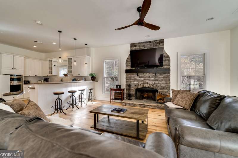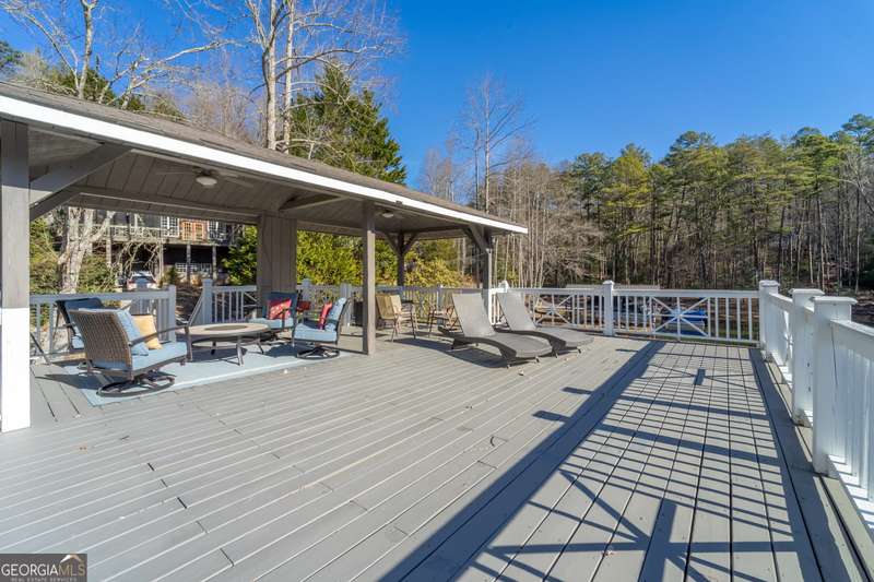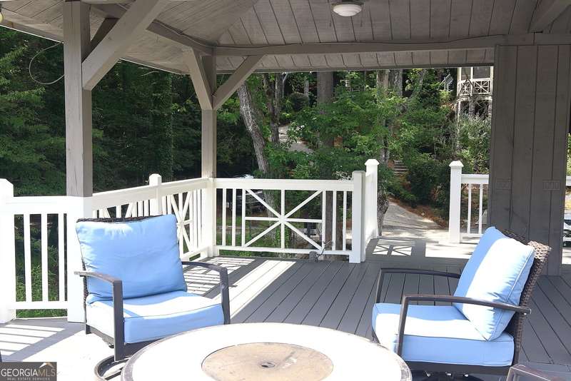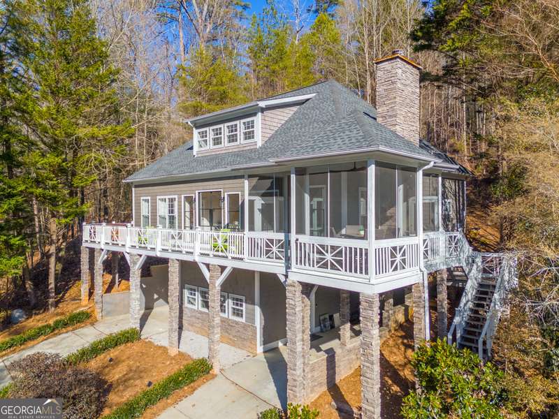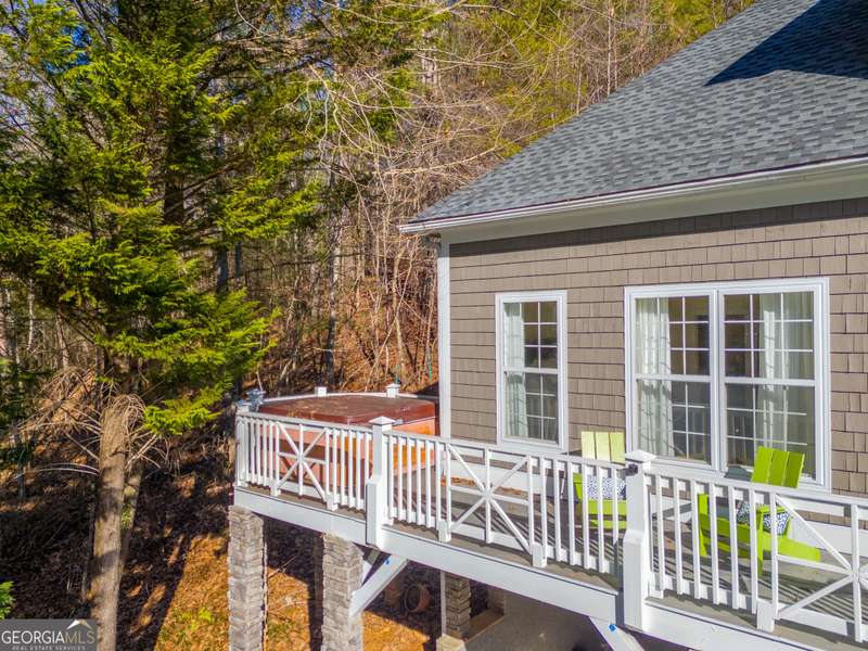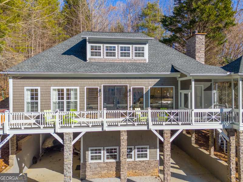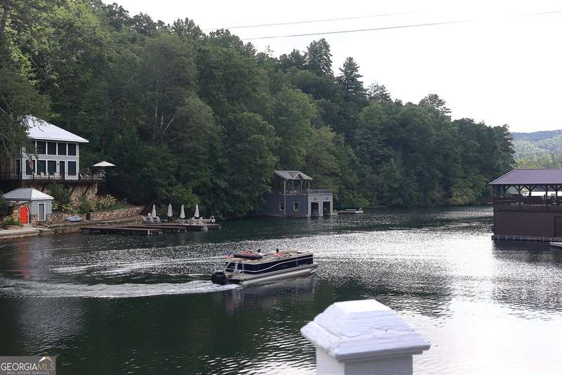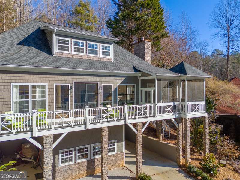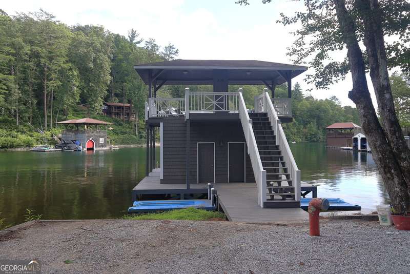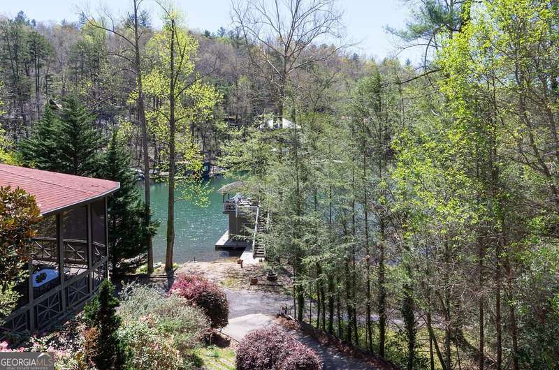 Fee Simple, 3br,3b cedar shake cottage in Perrin Cove at Lake Burton. This open floor plan with tasteful urban design reflecting an upscale mountain retreat atmosphere has a great room boasting wide plank flooring, a stacked stone fireplace and sliding metal doors that open to a full-length deck with screened eating porch and grilling area overlooking lake views. The kitchen features Corian countertops, tile backsplash, breakfast bar and dining for 12. The main floor master includes a private bath with jetted tub, separate shower, double vanities and water closet. The main floor offers an additional guest bedroom and full bath. An upstairs guest suite provides 2 queen beds, a media area, laundry closet and full bath. Additional features include all new appliances, remodeled bathrooms, a terrace level media room, hot tub, 2 carports, and a two-stall boathouse.
