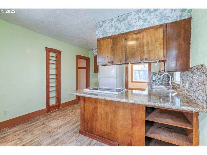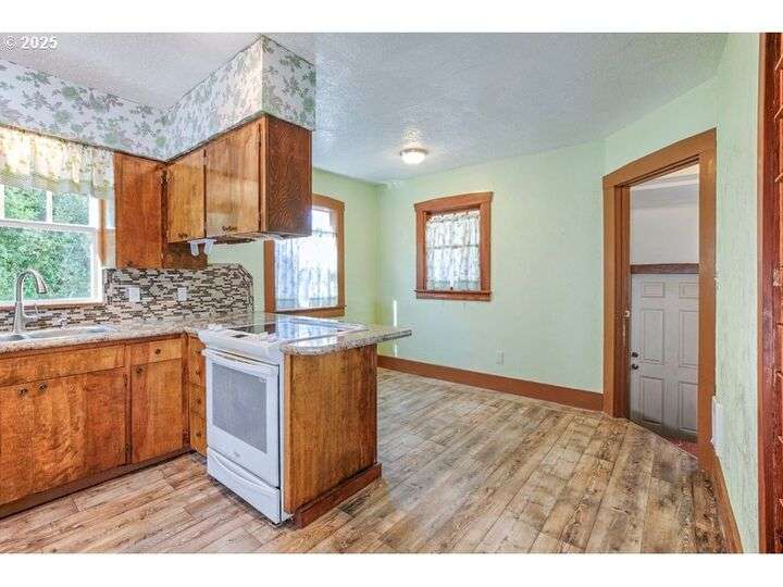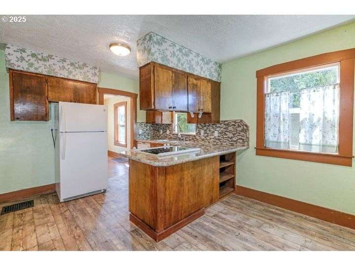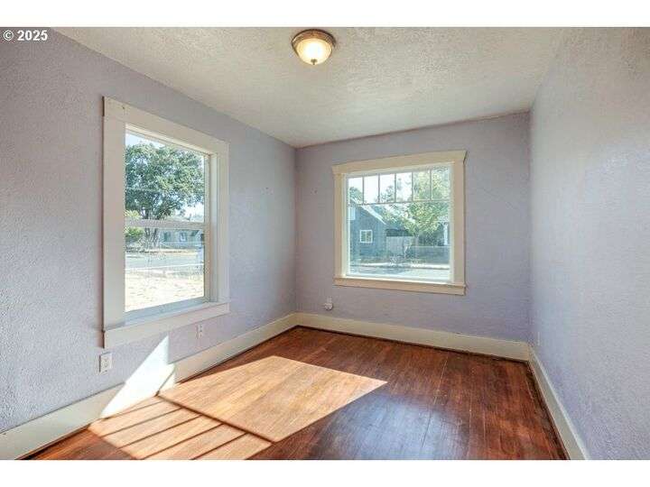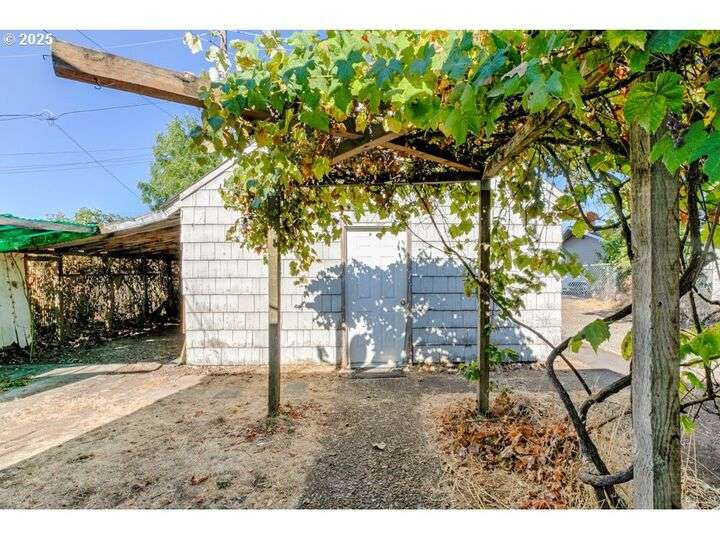 Adorable bungalow with all new vinyl windows & trim, wood burning fireplace. Some original hardwood floors & charm. Roof is three years old & water heater, gutters, & updated electrical panel are all newer. Backyard has separate shop/garage which would make a great ADU with alley access. Washer & dryer are included with property.