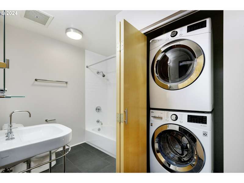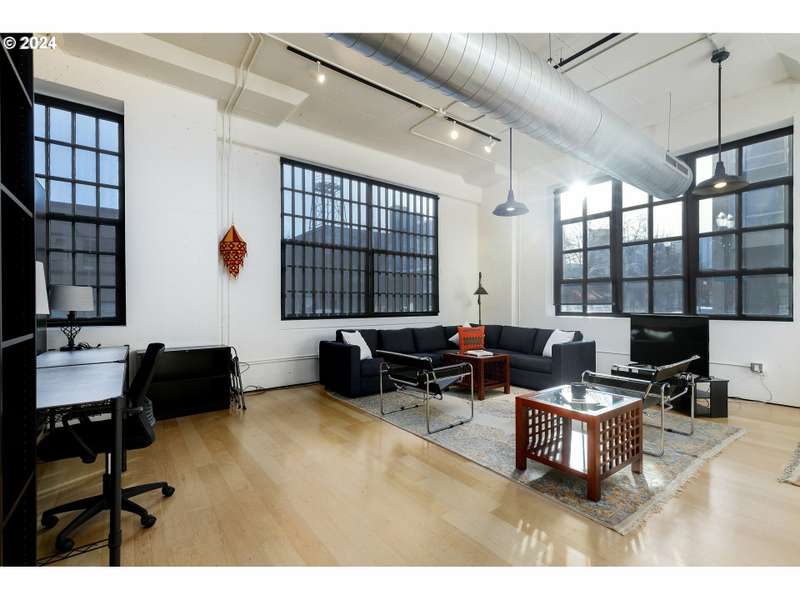 Enjoy all the natural light in this stunning corner unit condo in the heart of Portland's vibrant Pearl District! With perfectly blended residential and commercial zoning, this space is ideal for those seeking a live/work environment with occasional client interaction or a seamless work-from-home setup. Featuring high vaulted ceilings and contemporary finishes, the L-shaped layout offers versatility. Movable room dividers allow for space customization. Just a few blocks from restaurants, bars, and public transportation. Deeded parking and a storage unit with the option to purchase furnishings. Amenities include a tranquil third-floor atrium, bike storage, and a gym. With its prime location and flexible design, this condo is a must-see for anyone seeking a dynamic urban living experience.