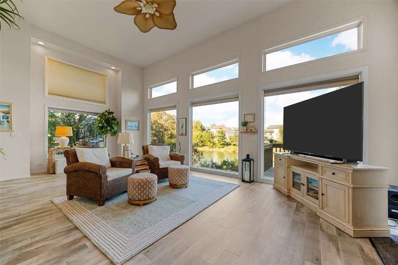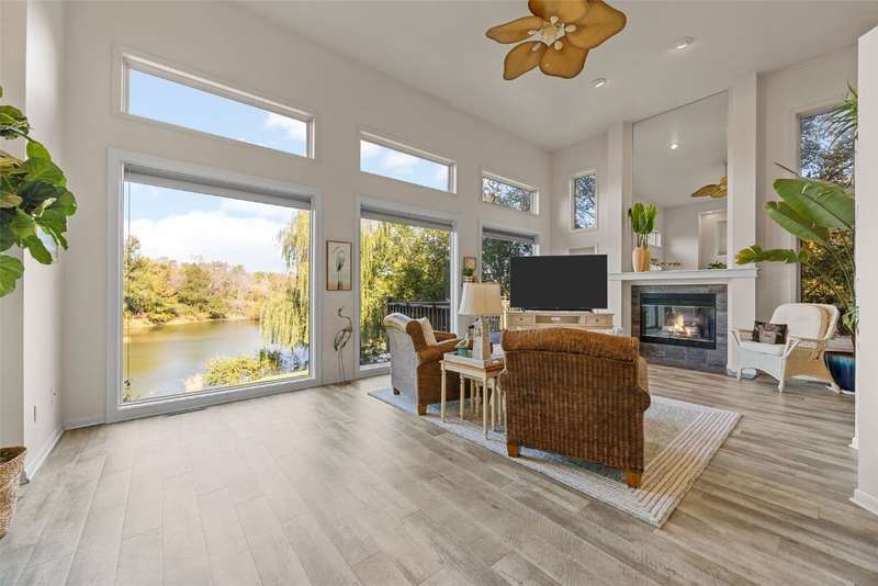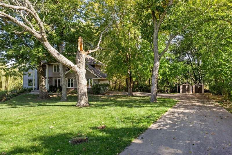 Discover this one-of-a-kind Coralville retreat offering peace, privacy, and nature just minutes from UIHC Hospitals & Clinics. Set on nearly an acre overlooking a serene pond, this home features a 2-story foyer, spacious living room with 14-foot windows, LVP flooring, and a gas fireplace. The kitchen offers cherry cabinetry, quartz countertops, tile backsplash, and stainless steel appliances, with a dining area that opens to a screened porch and wraparound deck. Upstairs includes a vaulted primary suite with a renovated bath, plus two bedrooms and an updated main bath. The walkout lower level adds a family room, full bath, and patio with hot tub. Includes NewAge garage storage and two sheds (as-is), with recent updates including new living room windows.