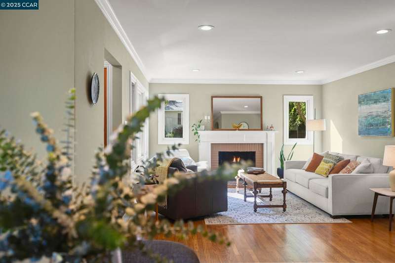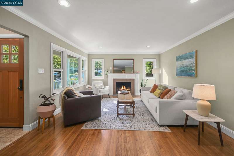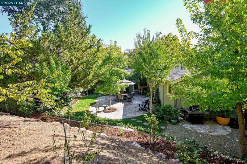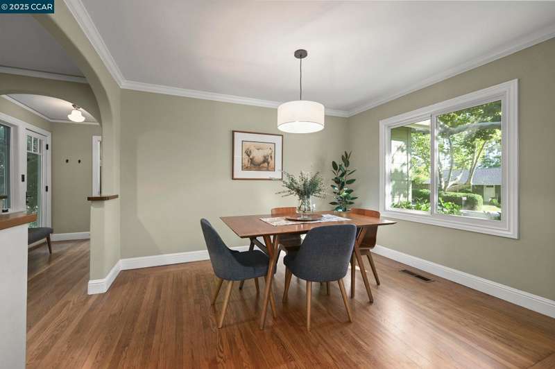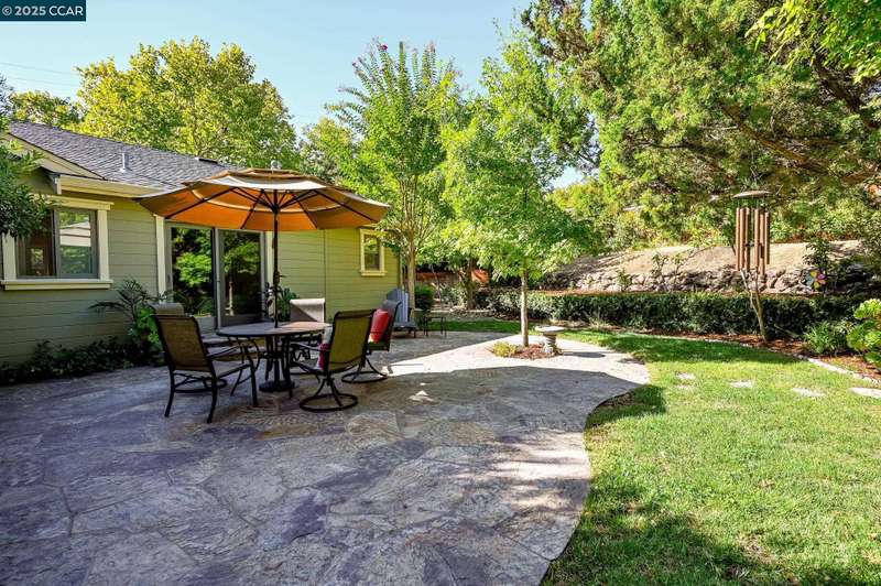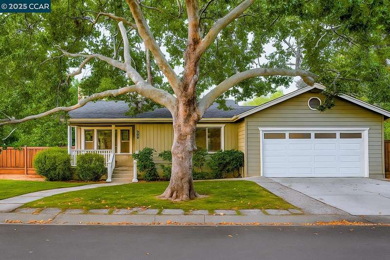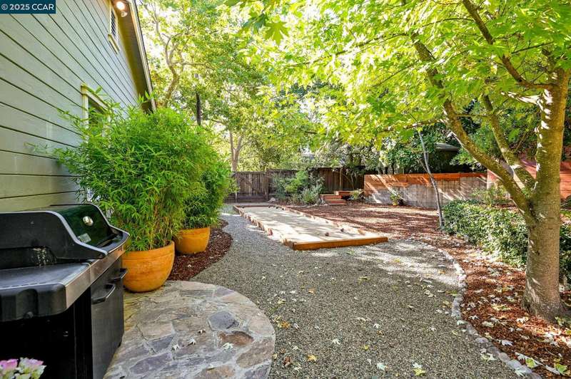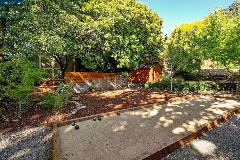 Discover the charm of one of Pleasant Hill's most desirable neighborhoods. This single-level home blends timeless character with modern updates and sits proudly on a spacious corner lot lined with stately sycamore trees. Inside, you'll find 3 bedrooms, 2 updated bathrooms, a light-filled living room, dining room, updated kitchen, owned solar, laundry area, attached garage, and expansive outdoor space. Original oak floors and a cozy fireplace pair beautifully with modern upgrades, including a chef's kitchen featuring a luxurious Dacor range, premium appliances, soapstone counters, custom cabinetry, farmhouse sink, and handmade ceramic tile backsplash. The primary suite features an updated ensuite bathroom with elegant, high-end finishes. The backyard offers a private retreat, perfect for entertaining or relaxing. The backyard includes a stone patio, bocce court, generous side yard for play, garden planters, storage shed, chicken coop, and a variety of fruit trees including pomegranate, olive, peach, lemon, apple and more. All just minutes from downtown Pleasant Hill, top-rated Strandwood Elementary, BART, Lafayette and Walnut Creek shopping, plus regional parks and trails. A rare gem offering the perfect blend of charm, comfort, and convenience.
