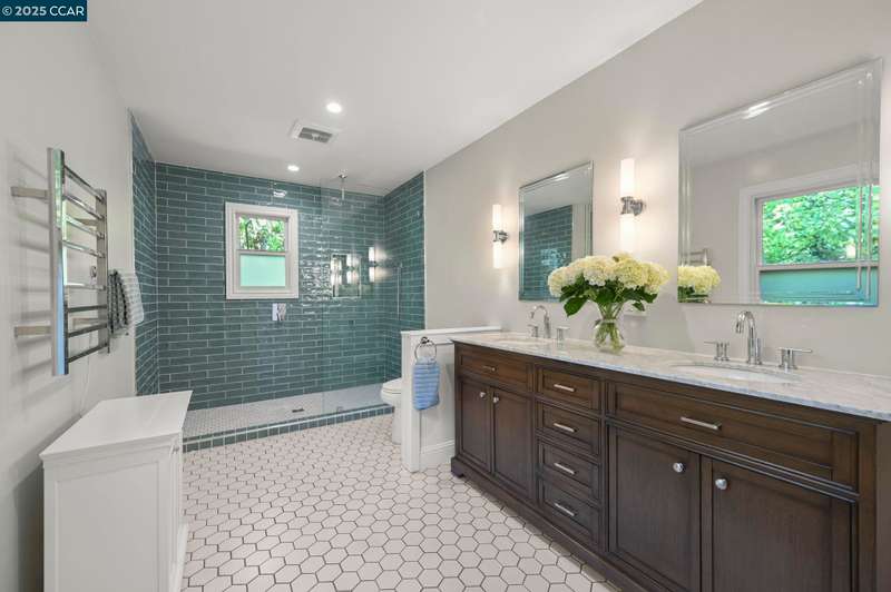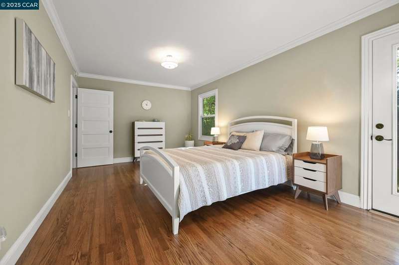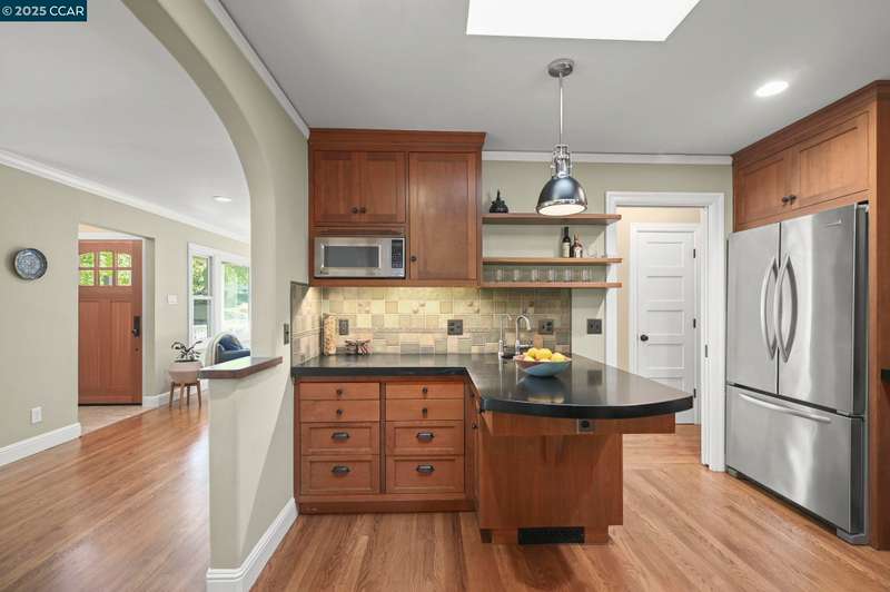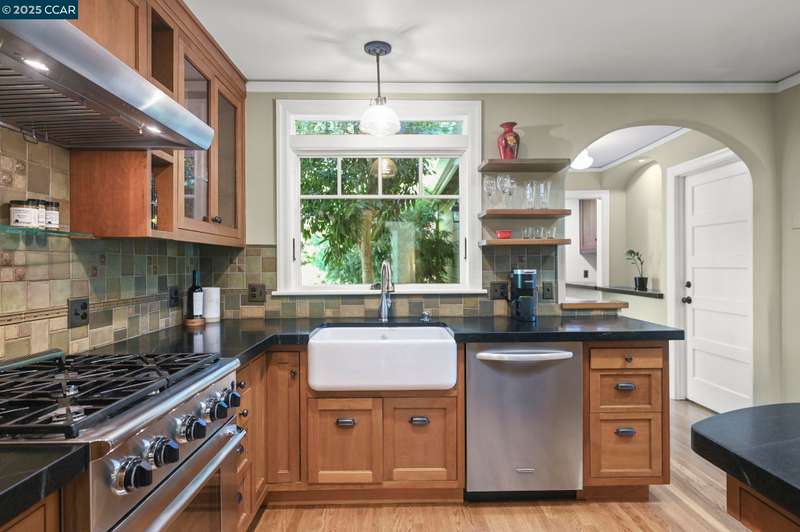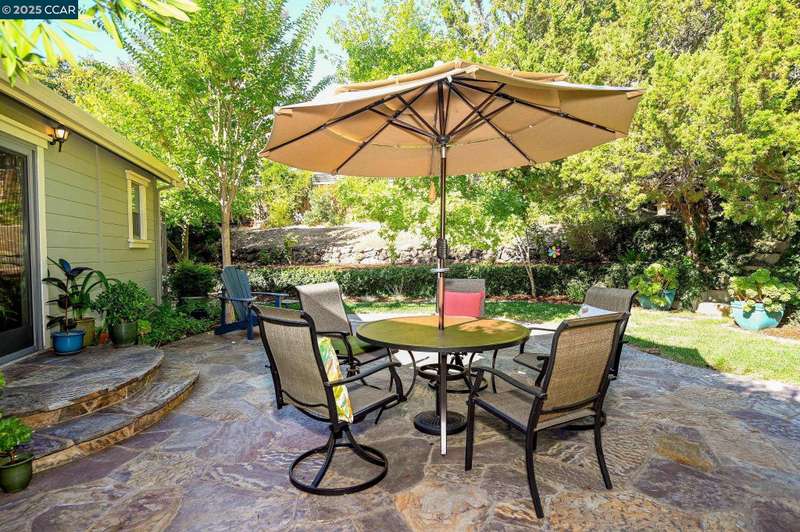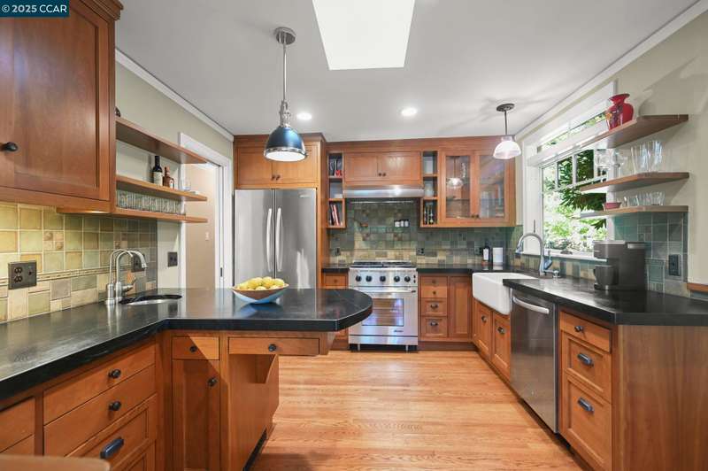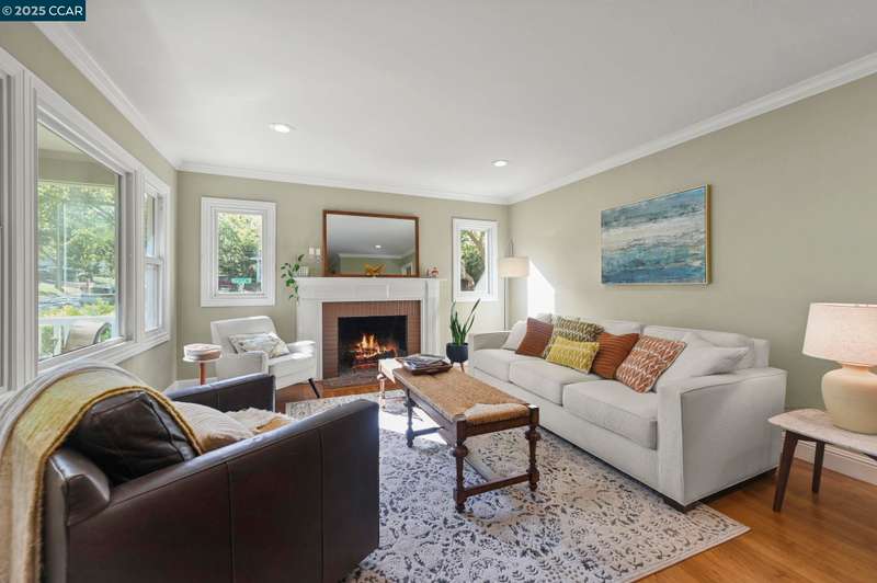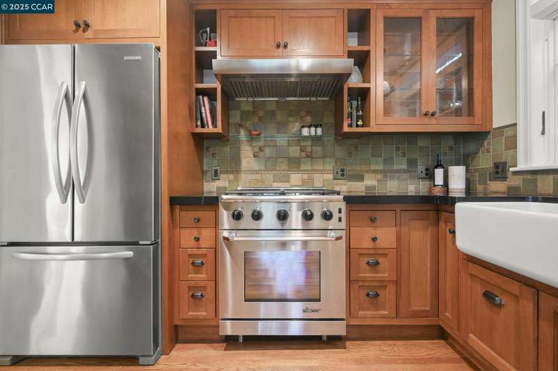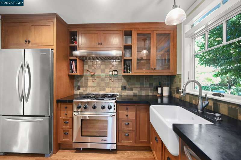 Discover the charm of one of Pleasant Hill's most desirable neighborhoods. This single-level home blends timeless character with modern updates and sits proudly on a spacious corner lot lined with stately sycamore trees. Inside, you'll find 3 bedrooms, 2 updated bathrooms, a light-filled living room, dining room, updated kitchen, owned solar, laundry area, attached garage, and expansive outdoor space. Original oak floors and a cozy fireplace pair beautifully with modern upgrades, including a chef's kitchen featuring a luxurious Dacor range, premium appliances, soapstone counters, custom cabinetry, farmhouse sink, and handmade ceramic tile backsplash. The primary suite features an updated ensuite bathroom with elegant, high-end finishes. The backyard offers a private retreat, perfect for entertaining or relaxing. The backyard includes a stone patio, bocce court, generous side yard for play, garden planters, storage shed, chicken coop, and a variety of fruit trees including pomegranate, olive, peach, lemon, apple and more. All just minutes from downtown Pleasant Hill, top-rated Strandwood Elementary, BART, Lafayette and Walnut Creek shopping, plus regional parks and trails. A rare gem offering the perfect blend of charm, comfort, and convenience.