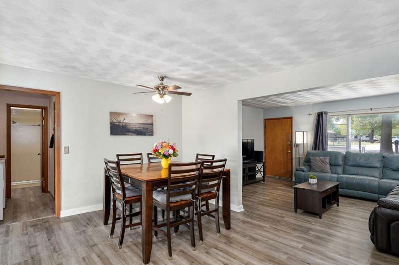 Welcome to 2613 W. Woodlawn St, situated on a large lot at the end of a quiet cul-de-sac. This 3-bedroom, 2-bath, 2 car garage home offers a combination of privacy, convenience, and outdoor space. The open-concept living and dining area features large windows with natural light, creating a welcoming atmosphere. The kitchen boasts modern appliances (fridge stays) and plenty of counter and cabinet space, perfect for cooking and entertaining. Just off the kitchen you will find the laundry room and the second bathroom. Step outside into the large fenced backyard, relaxation or entertaining. The backyard also features a spacious patio--ideal for outdoor dining or enjoying a peaceful evening. Need extra storage or a space for your projects? The storage shed with electricity offers an excellent solution.Recent updates over the last 3 years include new flooring throughout with exception of bedrooms, new appliances, and water heater.