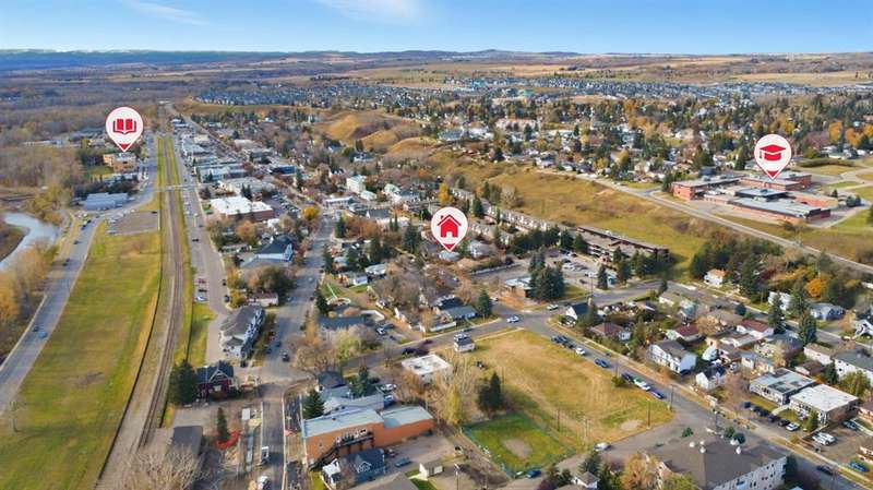 Welcome to 74 McRae Street in the heart of downtown Okotoks! This rare property offers exceptional flexibility with Downtown District zoning and a fully legal suite above the detached garage. The main home features on main floor, 2 bedrooms and 1 bath with a bright open-concept layout, a functional kitchen, and plenty of natural light throughout. The fully finished basement adds 2 more bedrooms and full bath plus a cozy wood stove to keep you toasty all winter, with potential for a separate entrance allowing for a future suite (subject to approvals). Enjoy the covered rear deck overlooking a spacious yard with room for an RV or extra parking. Above the heated oversized detached garage sits a fully legal secondary suite, complete with its own private entrance, full kitchen, and living area, laundry and a lovely balcony overlooking to the South to enjoy the sunshine year round. Perfect for extended family, guests, or as a reliable mortgage helper, this suite adds exceptional versatility to the property. The Downtown District zoning offers even more opportunity, giving homeowners the flexibility to live, rent, or operate a small home-based business. Enjoy the walkable lifestyle that comes with being steps away from Okotoks’ vibrant shops, restaurants, and local amenities. This is THE street to be buying on as we are seeing more and more businesses popping up along here!