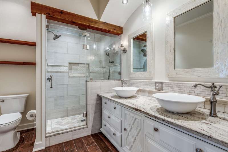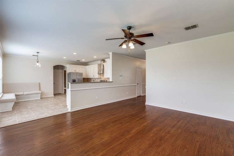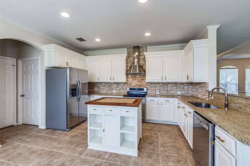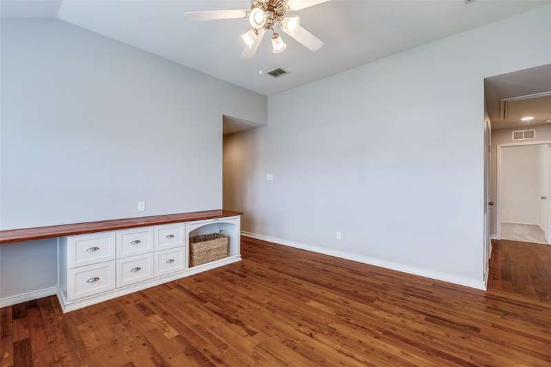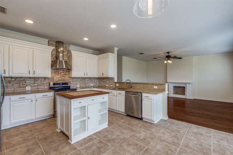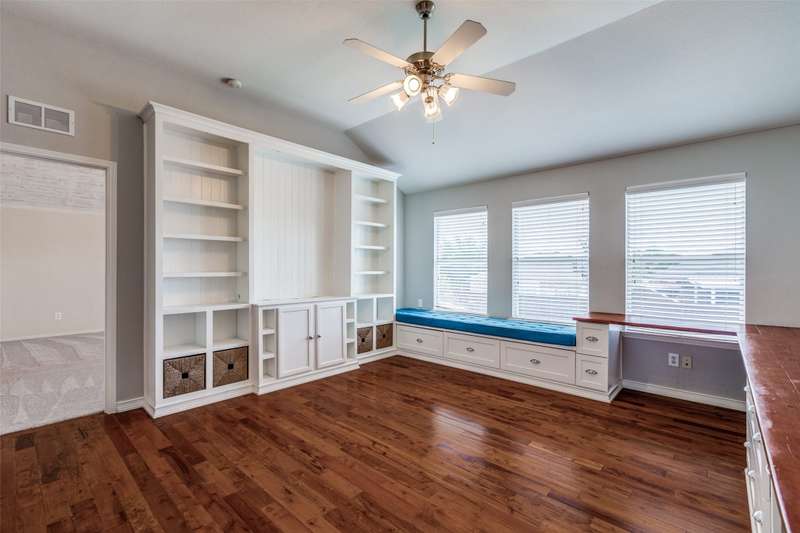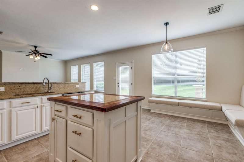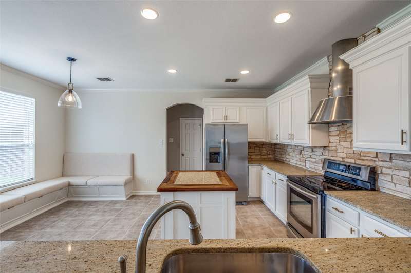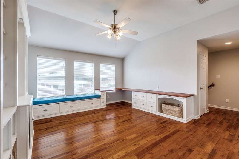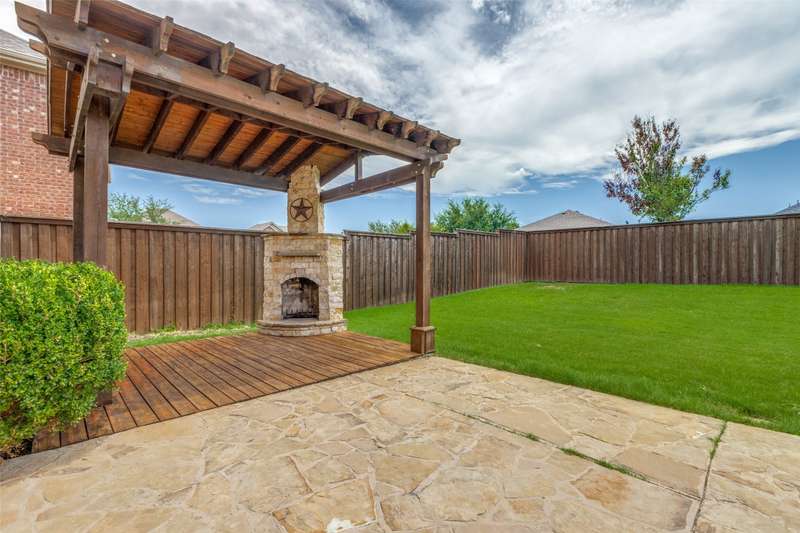 Beautifully updated 3BR, 2.5BA home in Northwest Frisco filled with natural light and refreshed with updated bathrooms, new carpet, fixtures, hardware and paint. The welcoming open-concept main level flows through the dining, living and breakfast areas to an upgraded kitchen with granite counters, SS appliances, central island, and built-in bench seating with storage. Hardwood and travertine floors add style and durability. Upstairs offers three bedrooms, two full baths, and a spacious second living area with hardwood floors, built-in shelves, desk and window seat. The primary suite features a vaulted ceiling, updated en suite bathroom, and walk-in closet. Enjoy lakeside living on your pergola-covered deck with stone fireplace, built-in grill and smoker, granite bar, sprinkler system, and tall privacy fence. Hidden Cove strikes the perfect balance with a vibrant community and one of Frisco's most reasonable HOA's-just moments from Lake Lewisville, with pool, splash pad and playground.