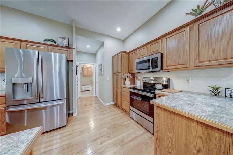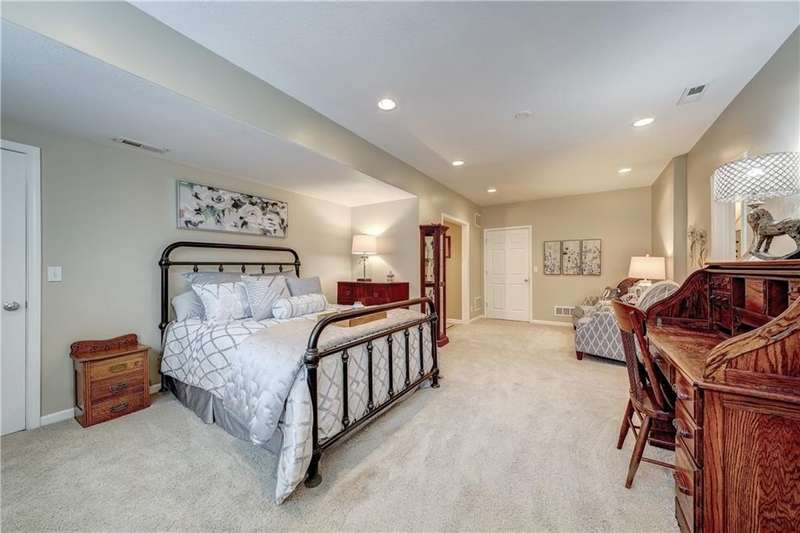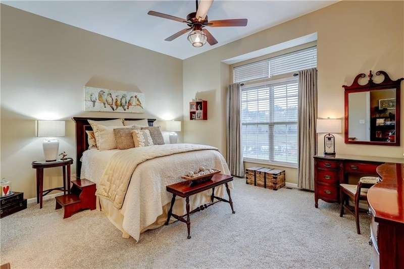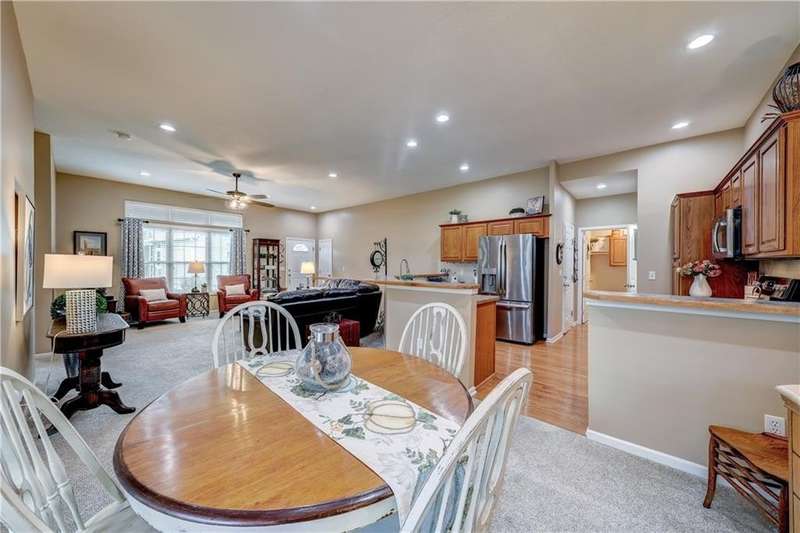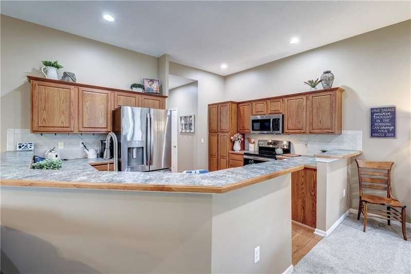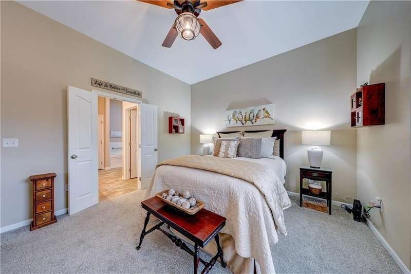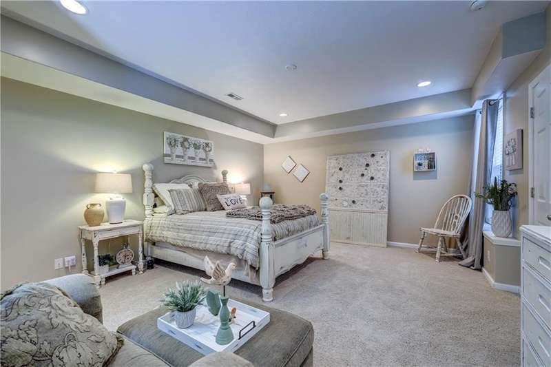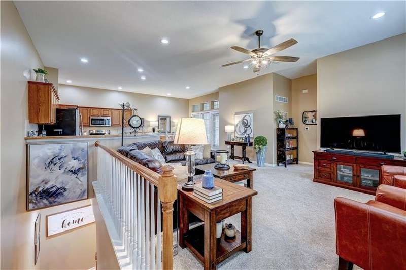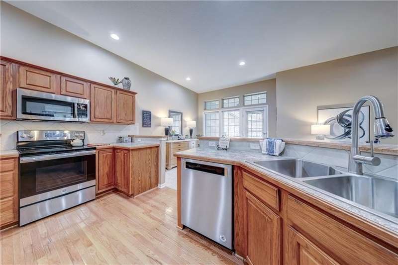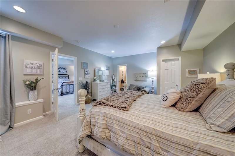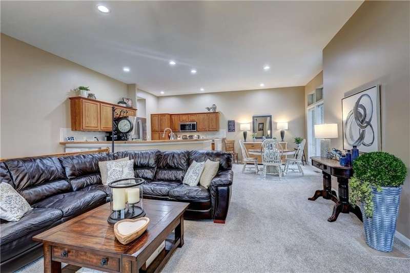 RARE FIND IN ASBURY VILLAS! One of the bigger floor plans on a prime lot overlooking the neighborhood lake. The 10-foot ceilings and an open layout keep the kitchen, dining, and family room connected and bright. The main-floor primary suite is generous, with a walk-in plus additional closet and a bath with separate tub and shower. Convenient main-floor laundry, too. Downstairs, the finished lower level adds a comfortable family room and an enormous secondary bedroom—perfect for guests, hobbies, or a quiet retreat. Two bedrooms, 2.5 baths total. The extra-deep 27' garage handles trucks, storage, or a workbench with room to spare. Thoughtful upgrades include knockdown textured ceilings and hardwoods in the kitchen and mudroom. And the HOA value here is hard to beat: clubhouse, indoor/outdoor pool, lawn care, snow removal, trash, exterior paint, roof, and water are all covered—lock-and-leave easy. A rare combination of space, setting, and low-maintenance living in highly sought-after Asbury Villas.