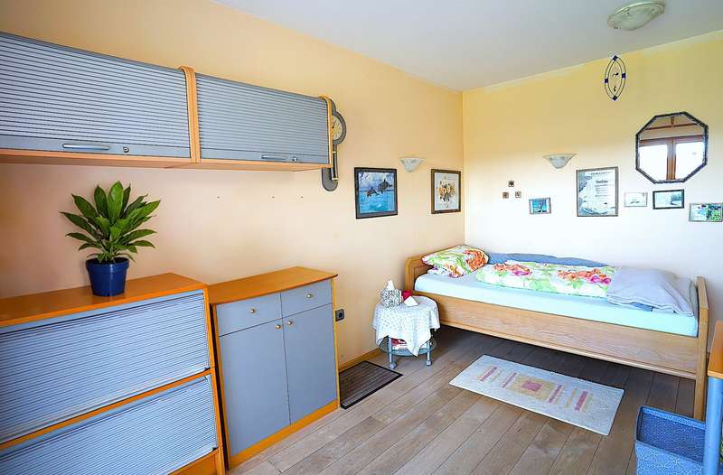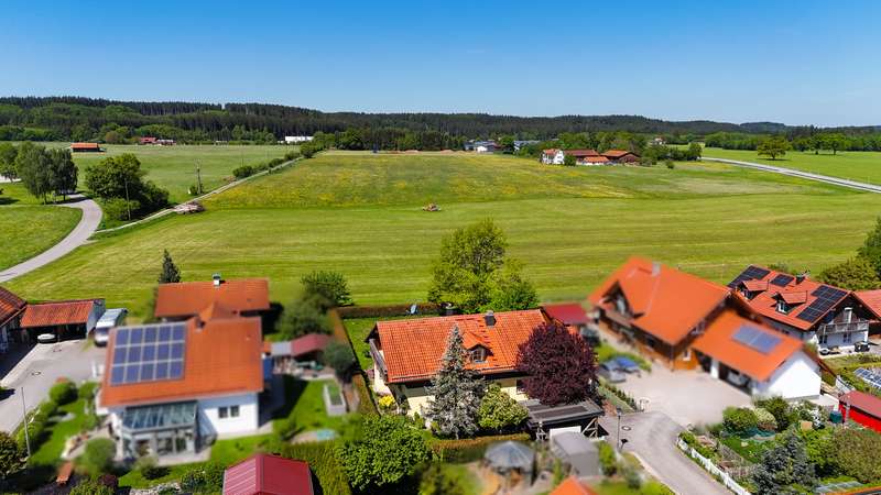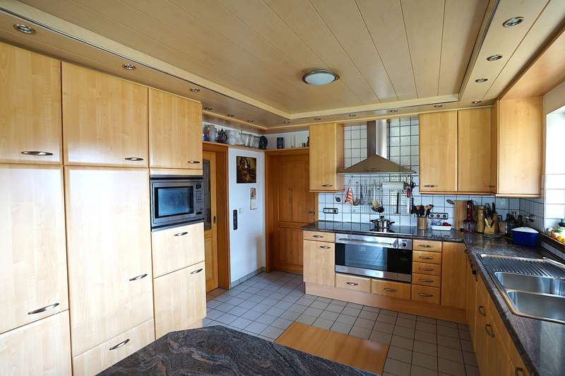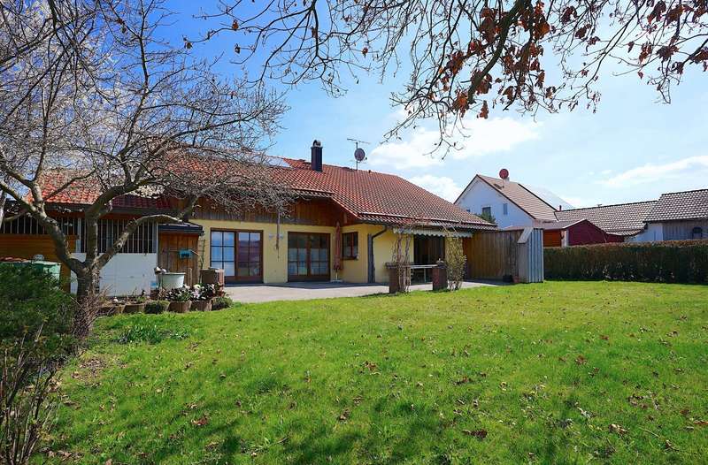 This stylish and energy-efficient, sustainably built detached house is located in a very quiet residential area of Kinsau. With 4.5 rooms, this house offers enough space for your family. The generous expansion reserve of approx. 95 sqm in the attic means that a further 3 living or work rooms can be created. On the ground floor there are two bedrooms, one with a dressing room, the spacious living/dining room, a hallway, a chic bathroom, two toilets, a pantry and the elegant kitchen with high-quality electrical appliances. The great lighting, the cozy dining area and the tiled/ground stove immediately create a feel-good atmosphere. From the living and dining room you have direct access to the west-facing terrace and the spacious garden. The garden faces east, south and west, so you can enjoy the sun at any time of day. As mentioned at the beginning, the upper floor is ready for conversion. Thanks to the direct access to the upper floor in the entrance area, the house is ideal for "multi-generational living", a separate guest area or additional office space. In the basement, in addition to the usual storage and utility rooms, there is also a further, well-lit living/work room, a hobby room and a shower room. The paved double garage and the additional carport offer space for 3 vehicles. Further vehicles can be parked in front of the garage. The garage has an electric door, electricity and light as well as a mezzanine floor to create additional storage space. Through the garage you enter directly into the spacious garden house, which is equipped with a solid floor and also electricity/light. The house is in very good condition and is furnished with high-quality additional fittings and fixtures. The double garage, the carport, the tiled stove, the high-quality kitchen, the garden house, the garden pump, the bathroom furniture, the dining room with high-quality fixtures, the awning, with a total new value of approx. 95 T€ are already included in the purchase price. The village is being extended to the west of the plot, exact information on this is available on request or on the website of the Reichling administrative community. The house is available from the 4th quarter of 2025. If you are interested, we look forward to hearing from you.
