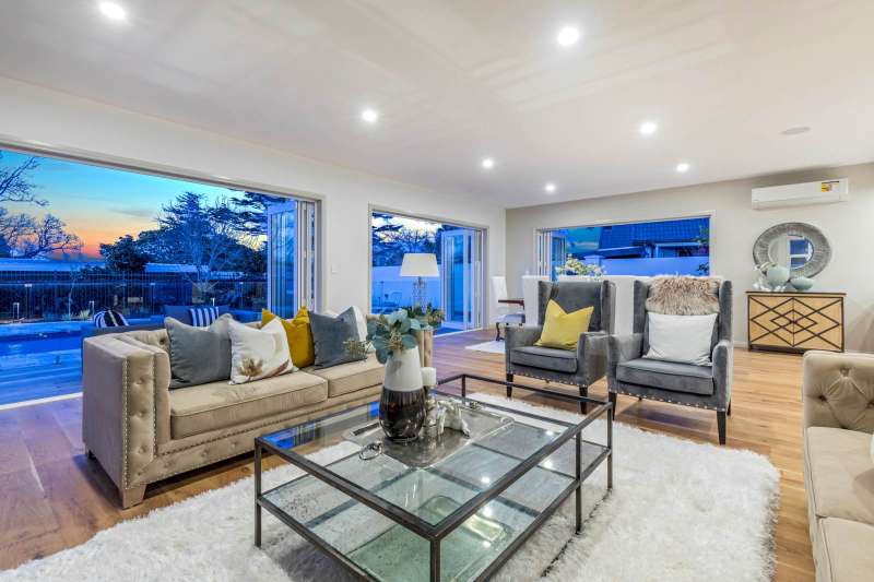 This exceptional residence is perfectly positioned in a quiet cul-de-sac on one of Albany’s most prestigious streets. Conveniently located next to Kristin School—with back gate access to the school—and the golf course, this elegant luxury home sits on a generous 1,138sqm of flat, gated land, offering beautiful, tranquil garden views. From the moment you step inside, you'll notice the meticulous attention to detail. No expense has been spared—from the luxurious swimming pool, spa pool, and outdoor BBQ kitchen to the cozy fireplace and high-end European appliances. Features include Franke kitchen accessories, bar fridges, a built-in coffee machine and microwave, an integrated fridge and freezer, a central vacuum system, and an intercom system. The list goes on—you’ll love every detail. Designed with family and entertaining in mind, the open-plan layout provides an abundance of space. This beautifully proportioned home boasts 6 generous bedrooms, 5 designer bathrooms (including 3 ensuites), and 3 spacious living areas—all filled with natural light and perfectly suited for a growing family. The expansive main living area features a striking fireplace and two stunning kitchens, including a full butler’s pantry. Located next to Kristin School and a short walk to Albany Junior High School. Close to Albany Primary, Albany Senior High, and Massey University. Minutes from Westfield Shopping Centre, North Harbour Stadium, Park ‘n’ Ride, and local beaches. Easy motorway access. The thoughtfully landscaped, low-maintenance gardens feature lighting and mature trees, enhancing the home’s elegant and high-end appeal. This is a rare opportunity to secure a luxurious family home in one of Albany’s most sought-after locations.