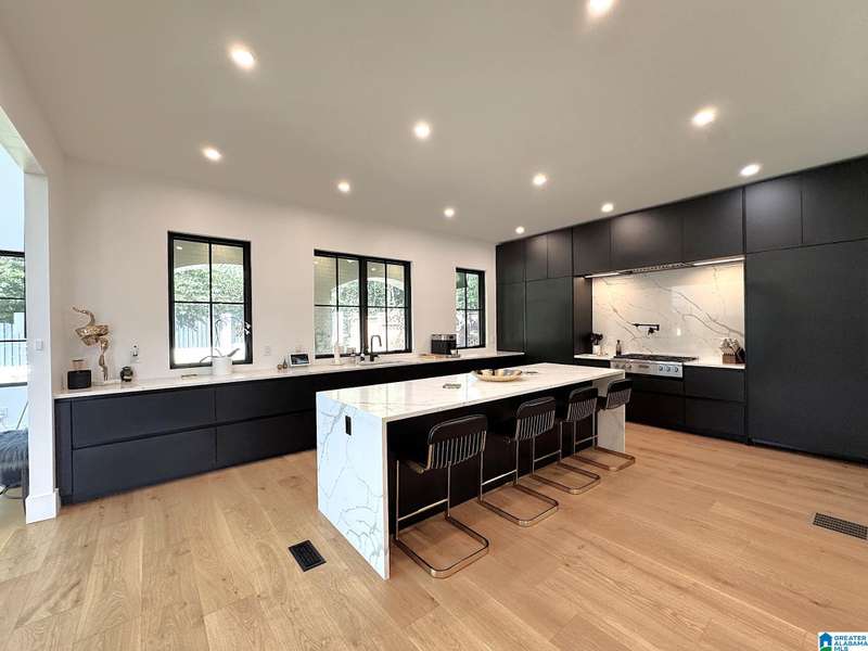 Mountain Brook Luxury at its BEST! Unique opportunity to buy in the sought-after Sterlingwood neighborhood. This expertly designed home offers a rare chance to live in one of Mountain Brook's most convenient locations. With craftsmanship in every detail, this 4-sides brick home features soaring 12'+ ceilings in Great Room & foyer, creating dramatic volume & light. Exceptional features include 2-car main level garage, outdoor covered patio, aluminum casement windows/doors, extra wide hardwood flooring, double-sided arched door, & open floor concept blending the great room, dining room & kitchen. The designer kitchen boasts custom cabinetry, commercial-grade Miele appliances, hidden butler’s pantry, & separate scullery. Main level also includes flexible bedrooms/office, stylish powder room, & wine room. Upstairs offers primary & luxurious spa bath, custom closet, additional bedrooms, laundry/mudroom, & more. Full unfinished basement ready for expansion. Premier location near downtown.