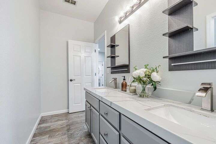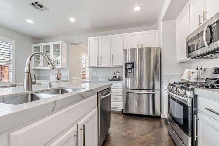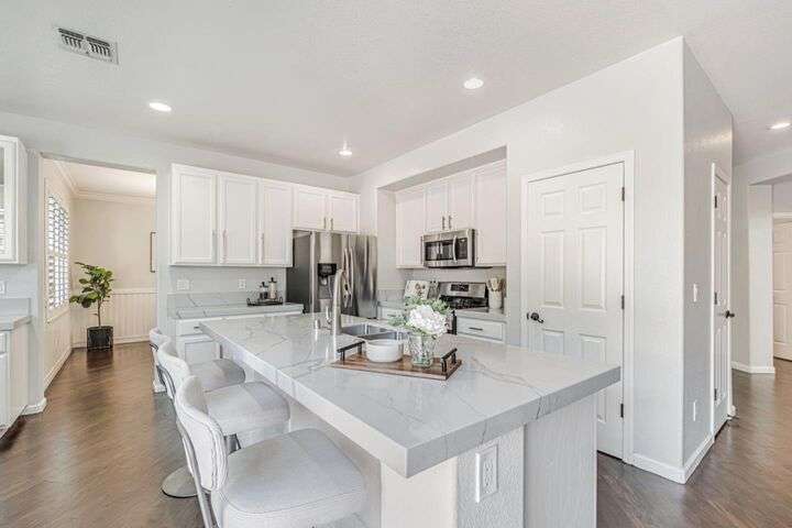 Welcome to 1586 Arrigotti Lane, a beautifully maintained 5-bedroom, 3-bathroom home in Tracys desirable Meadowood neighborhood. This spacious residence features two generous living areas and a full bedroom and bathroom on the main level, ideal for guests or multi-gen living. Upstairs, you'll find four additional bedrooms, including a spacious primary suite with a large walk-in closet and an expansive en-suite bathroom featuring a soaking tub, separate shower, and dual vanities; your private retreat at the end of the day. A second oversized bedroom lives like a junior suite, while the two additional bedrooms are perfect for kids, guests, or a home office. A small seating area upstairs adds extra flexibility. The well-appointed kitchen boasts a large island with breakfast bar, an eat-in dining area, and ample cabinet space; perfect for daily living and entertaining. The home is in excellent condition with a functional layout, abundant natural light, and thoughtful details throughout. Located within walking distance to parks and close to schools, shopping, dining, and daily conveniences; this is the one youve been waiting for!