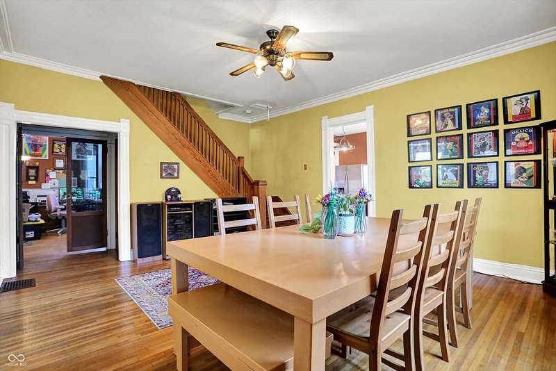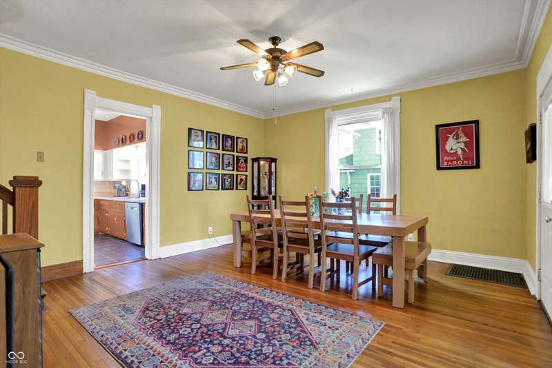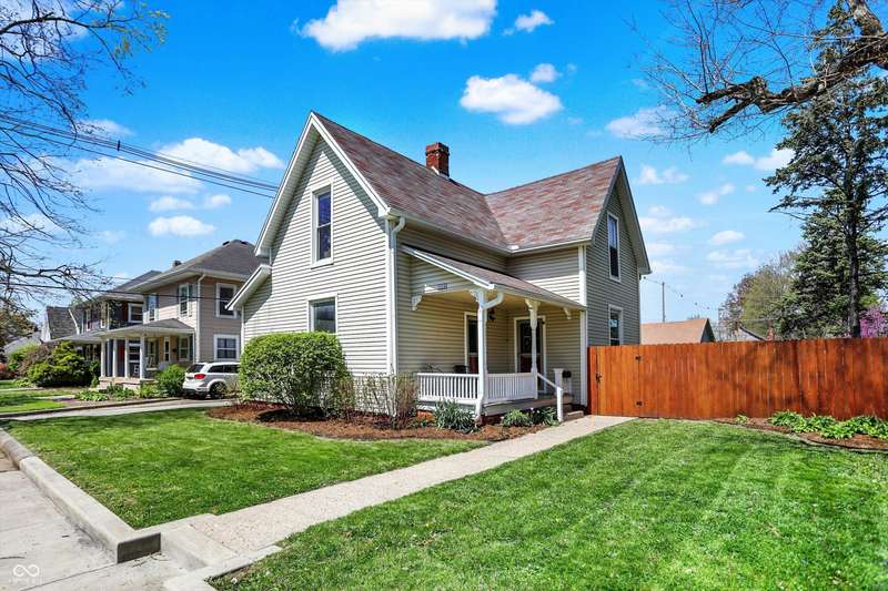Welcome to this spacious 4-bedroom, 3-bath home located on W. Main St., a sought-after area in town. 1900's home featuring hardwood floors, built-ins, most of the original woodwork, and a functional layout. The residence includes a large living and dining room for gatherings and an updated eat-in kitchen with ample storage. There is a bedroom suite and laundry are on the main level, while two other bedrooms, two full baths and the primary suite are upstairs. The property has a barn-style garage (sold as-is), New fence '23 for backyard, and a large brick patio ideal for entertaining. Numerous windows have been replaced. Newer gutters, dishwasher, and updated landscaping. Enjoy great walkability, close to shopping and downtown.