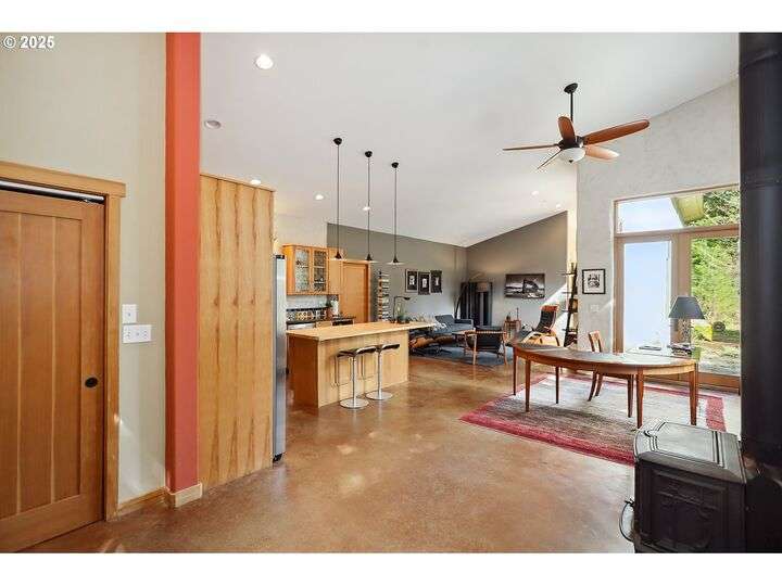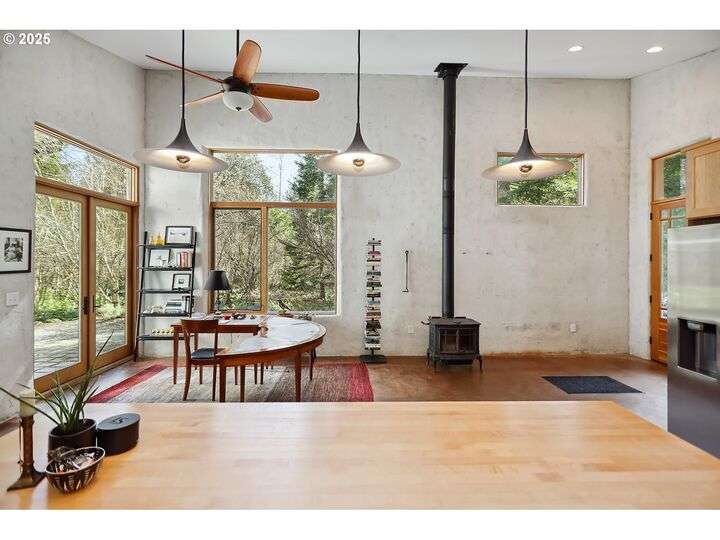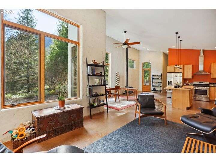 Tucked among the towering trees and serene beauty of the forest, this modern woodland home offers the ultimate in peace, privacy, and natural elegance. Set on 10 lush acres with the tranquil sounds of the Wind River in the distance, the property is a haven for wildlife and outdoor enthusiasts alike, featuring meandering trails throughout the forest.Crafted with insulated concrete block construction, this home is quiet, fire resistant, and energy efficient. The bright, open floor plan is designed for modern living, highlighted by radiant heat concrete floors and passive solar gain through expansive south-facing windows. Whether you're basking in the warmth of the sunlit living spaces or enjoying the forest views, every corner of this home feels connected to nature.This property is also dividable into 2-acre minimums, offering investment potential or room to expand. Whether you're seeking a peaceful escape, a homestead, or a legacy property, this rare offering blends sustainability, modern comfort, and natural splendor. Absolutely no drive-bys**Ask about buyer credit through our preferred lender**