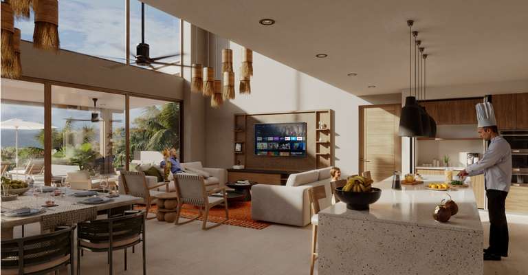 With over 715 square meters (7,705 square feet) of air-conditioned interior space, this 4-bedroom home offers an exceptional layout centered on light, flow, and elevated living. Each bedroom is a sanctuary, with panoramic forest or ocean views, premium finishes, and an effortless indoor-outdoor connection. The open living and dining areas are spacious and bright, centered around a designer kitchen perfect for entertaining or quiet nights in.