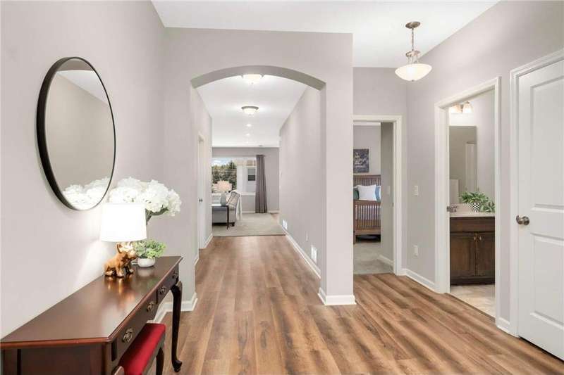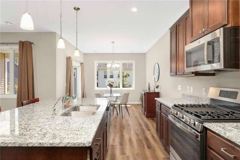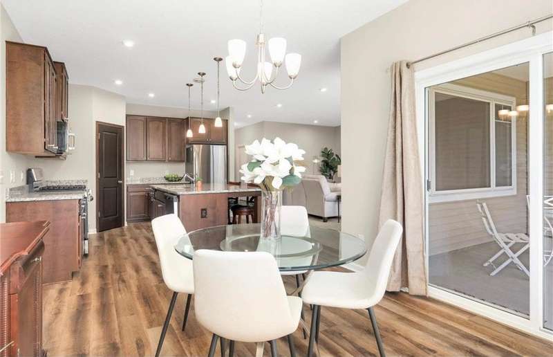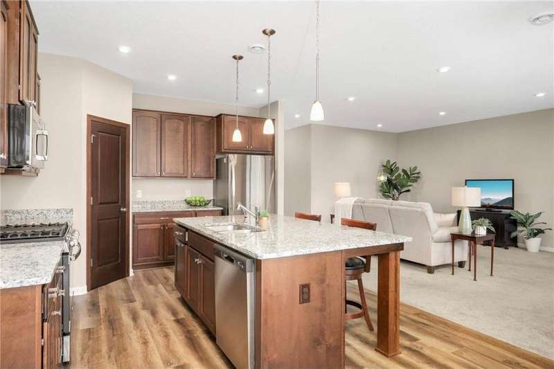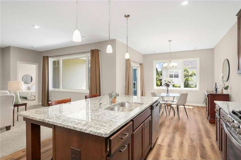 Stylish One-Level Villa with Private Patio & Premium Upgrades Welcome to effortless living in this meticulously cared-for 3-bedroom, 2-bath detached villa, offering the perfect blend of comfort, style, and functionality — all on a single level with no stairs inside or out. The heart of the home is the open-concept living space, seamlessly flowing into the modern kitchen. Designed for both entertaining and everyday ease, the kitchen features stainless steel appliances, an upgraded tile backsplash, soft-close cabinetry, pull-out shelving, and a spacious corner pantry. Unwind on the covered patio - ideal for outdoor dining or quiet mornings with coffee. The primary suite is a serene retreat, complete with a walk-in closet, a large walk-in shower, and a double sinks. 2 extra bedrooms provide plenty of space for guests, a home office, or hobbies. Thoughtful touches include luxury vinyl flooring, solid wood doors. The mudroom/laundry area comes equipped with more shelving for added organization. There's even a spacious garage for 3 cars or extra storage. Enjoy peace of mind with low-maintenance living in an association-managed community, where Lawn and Snow are taken care of — allowing you more time to enjoy the comfort and convenience of this beautiful home