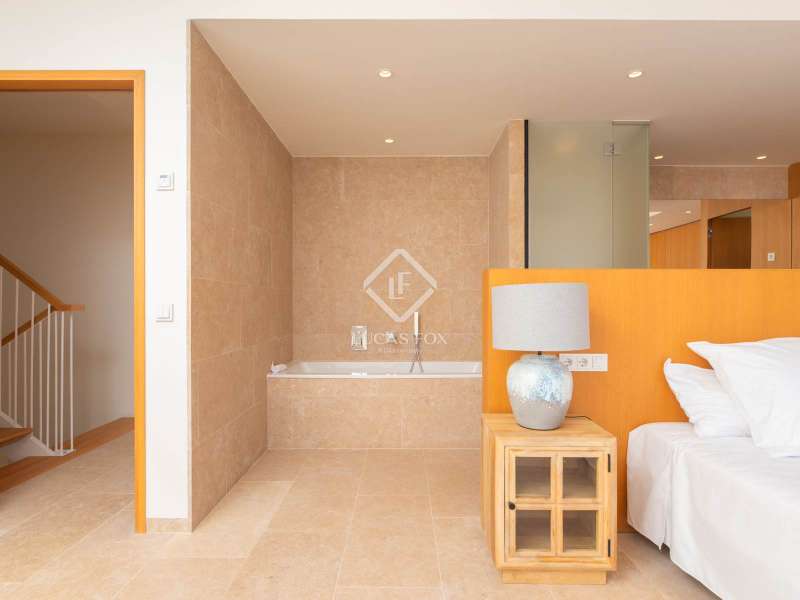 Nestled in one of Ibiza’s most sought-after locations, this beautifully designed villa combines contemporary architecture with Mediterranean elegance. This stunning property boasts a rooftop terrace with a jacuzzi and panoramic sea views, offering the perfect spot to relax and unwind. It features a private swimming pool surrounded by a beautifully landscaped garden, creating an oasis of tranquility. The floor-to-ceiling windows allow for maximum natural light, enhancing the modern and spacious feel of the home. Inside, the contemporary open-plan kitchen seamlessly connects to the living areas, ideal for both everyday living and entertaining. The property also includes a private underground garage and multiple terraces, including an exclusive main suite terrace, for added privacy and comfort. Located in a gated residential community with 24/7 concierge services, this property offers both exclusivity and comfort in equal measure. Please contact us for further information.