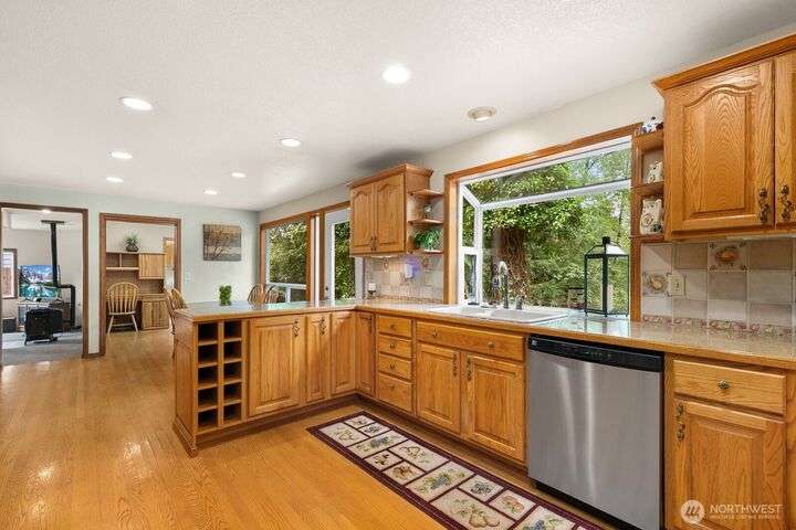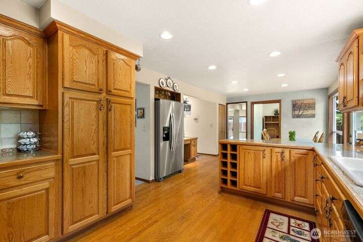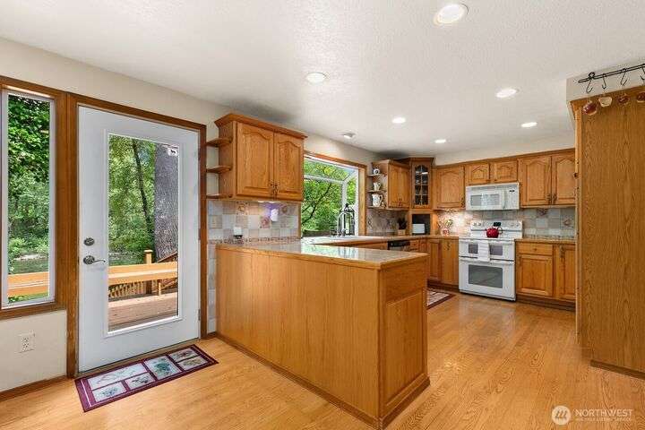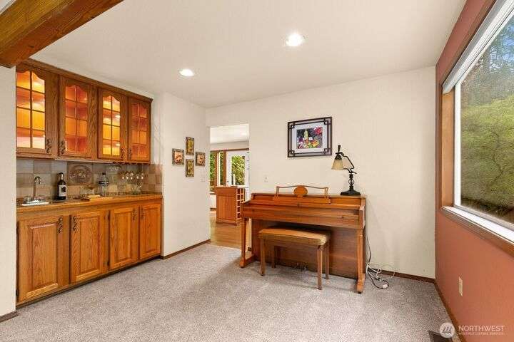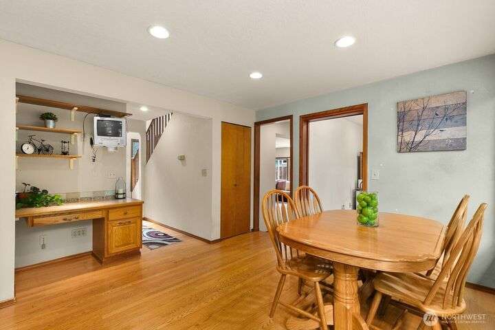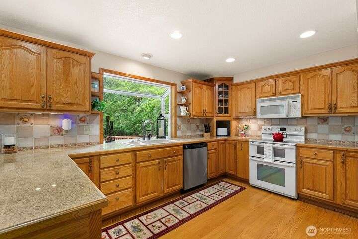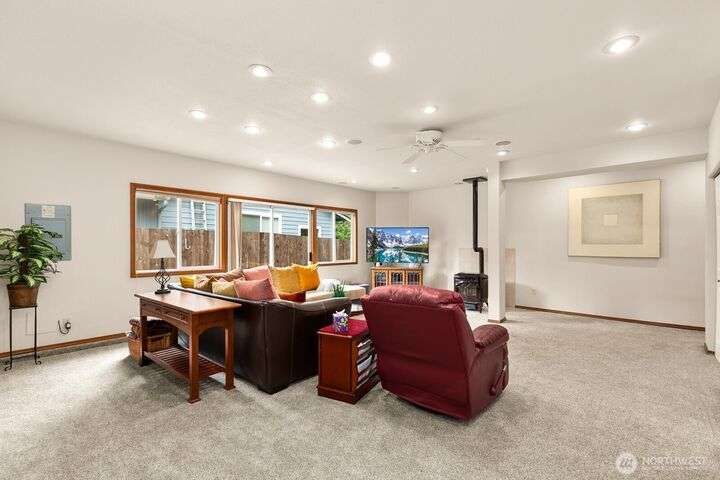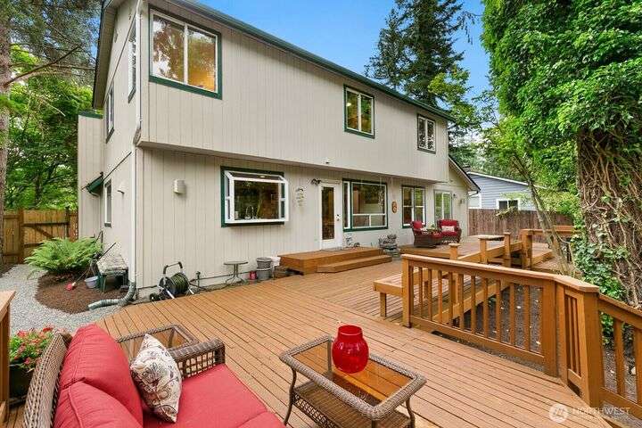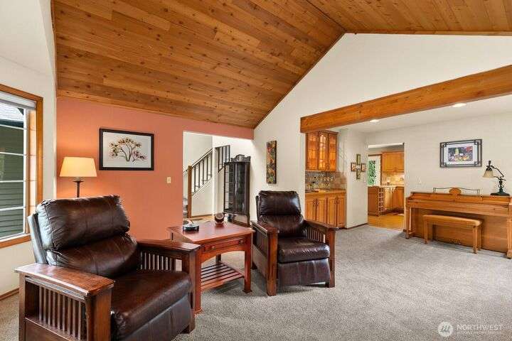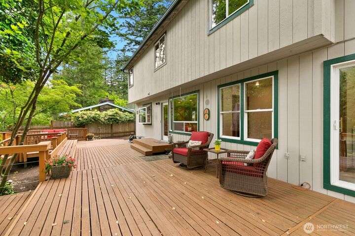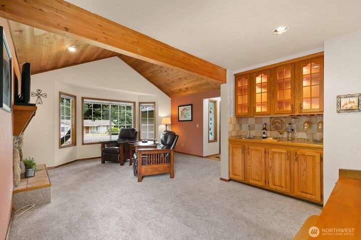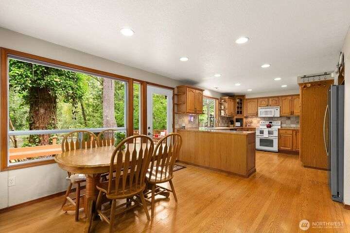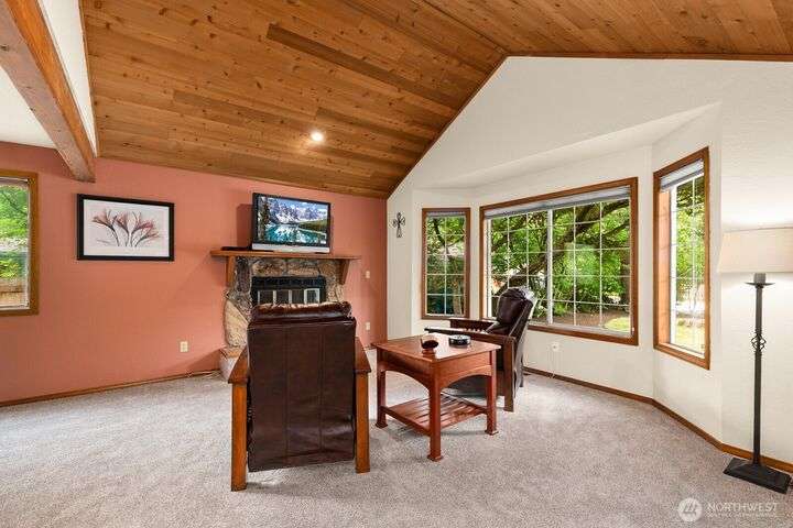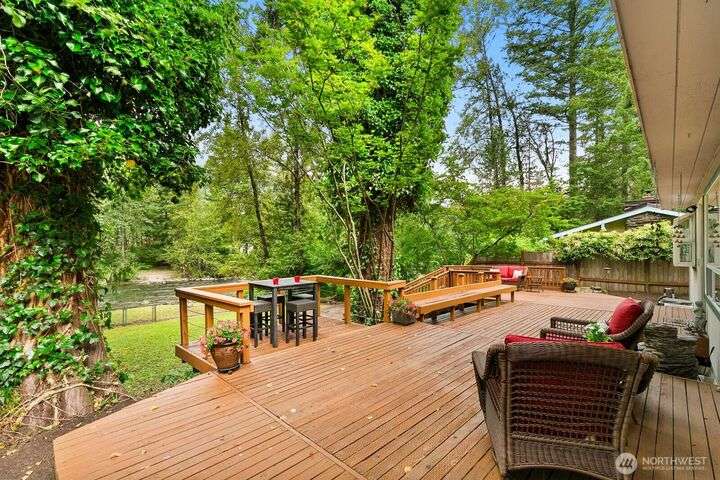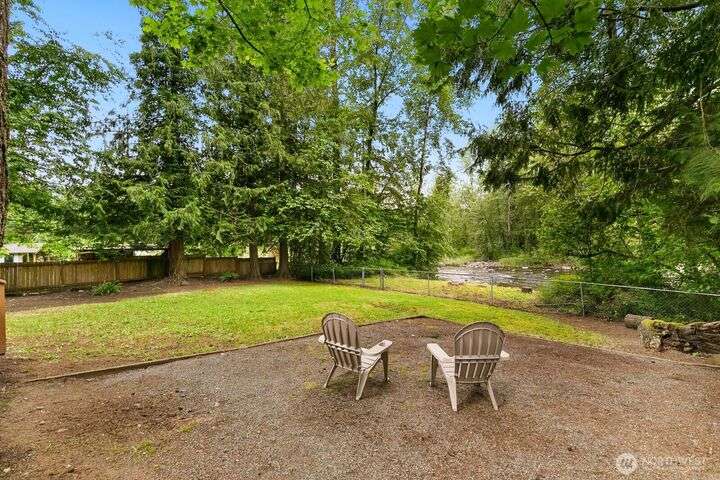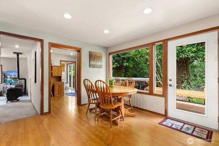Looking for a peaceful home w/82' of low bank access to the Snoqualmie River from your backyard? OUTSIDE 100yr FLOODPLAIN! Your new 2 story, 2,360 sq ft Home on shy 1/3 acre is what you have been waiting for! Main floor boasts hardwood floors & new carpeting. Cedar plank vaulted ceilings line your new entry & LR, wet bar in your DR. Enormous sunken FR w/pellet stove. Eat-in Kitchen w/ample cabinetry. 3 bedrooms & office are upstairs. Spacious Primary boasts a WIC & 5-piece bath, corner soaking tub w/great views. Peaceful river views from your newer 750 sf deck. Perfect home for entertaining! Extra-large 750 SF garage, RV parking. Roof & WH are 2 years old. Slab wired for hot tub. Snoqualmie Schools. Convenient to Bellevue/Seattle via I-90