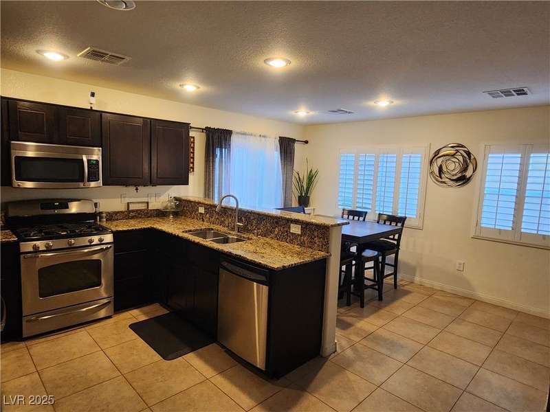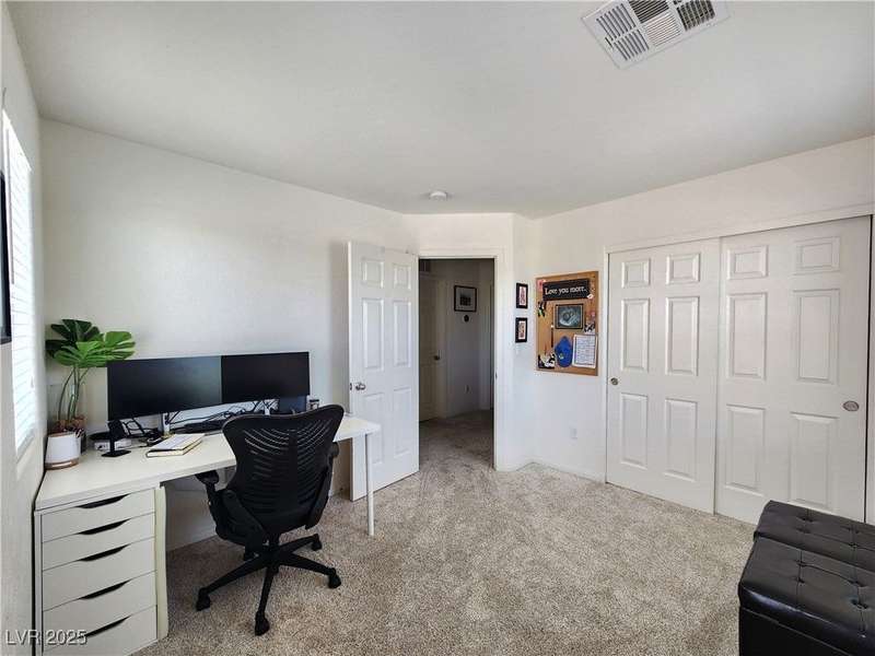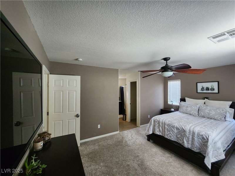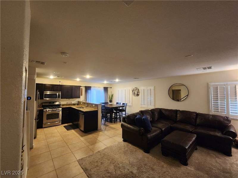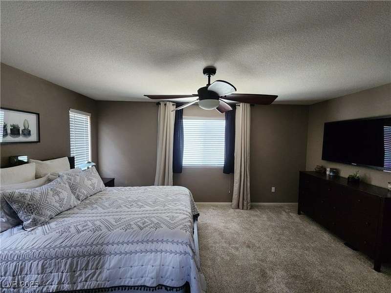 Beautiful 2-story, 3-bedroom home in the Positano neighborhood in Southwest Las Vegas with stunning mountain and city views. Meticulously cared for by the original owner, this property offers an intimate private backyard, oversized garage, a spacious primary suite and two additional bedrooms. The kitchen is warm and inviting, with laundry conveniently located upstairs. Throughout touches include plantation shutters, ceiling fans, easy to care for desert landscaping, and more. Enjoy low monthly HOA fees, ample on-street parking and quick access to nearby shopping, dining and amenities.