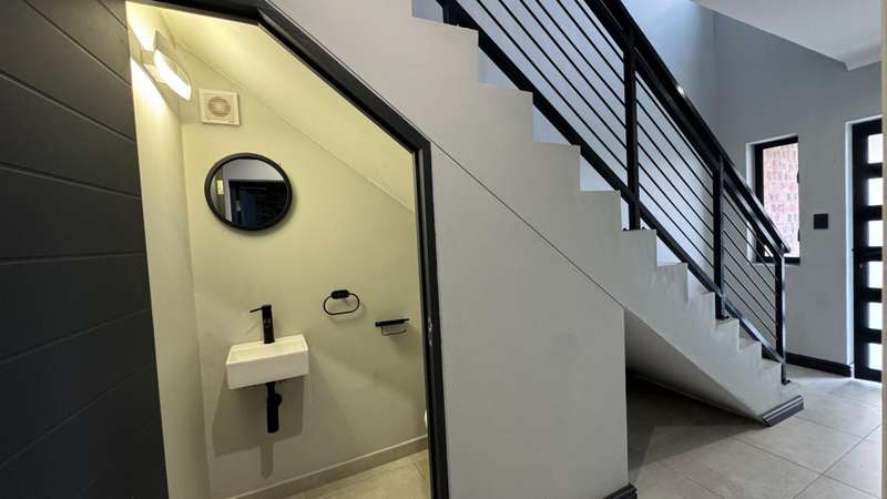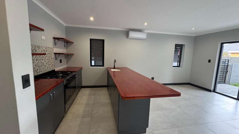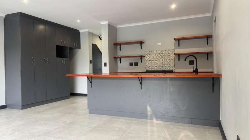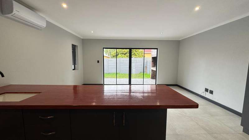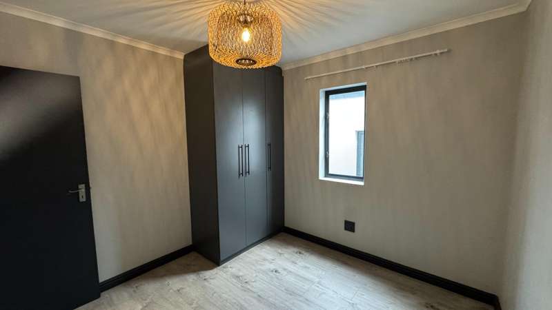Positioned in an established neighbourhood in the southern part of Paarl, this stylish double-storey townhouse offers a perfect blend of comfort, convenience, and contemporary living. Ideally located close to the N1 highway, the Franschhoek off-ramp, and surrounded by renowned wine estates, this property promises both lifestyle and investment value. The townhouse features three well-sized bedrooms are all located upstairs, along with two modern bathrooms and an additional guest toilet downstairs. The main bedroom opens onto a balcony with lovely views of the surrounding mountains. The open plan living and kitchen area is thoughtfully designed with modern finishes, including a gas stove, sleek black bathroom fittings, and a tasteful combination of tiled and laminated flooring. Large sliding doors open onto a private patio and a quaint, pet-friendly garden, ideal for stepping outside just to breathe. Additional features of the property include a second shower, 2 air conditioners, a single garage with an extra open parking space, offering convenience for multiple vehicles. It is equipped with pre-paid electricity, fibre and a solar geyser for energy efficiency. A 100-litre water tank provides added water storage. Modern lighting throughout the home enhances its contemporary feel, and the overall layout offers excellent lock-and-go appeal, perfect for those seeking low-maintenance living. This home is a fantastic investment opportunity in a prime location, whether you're buying for yourself or as a rental income generator. Stylish, secure, and move-in ready. Kindly contact me so I can introduce you to this space